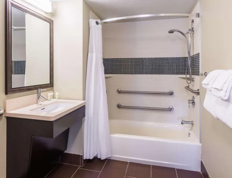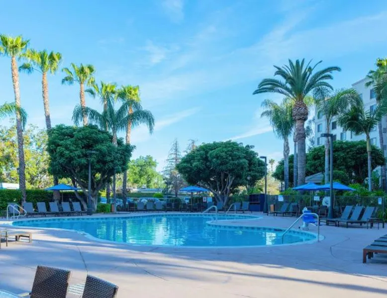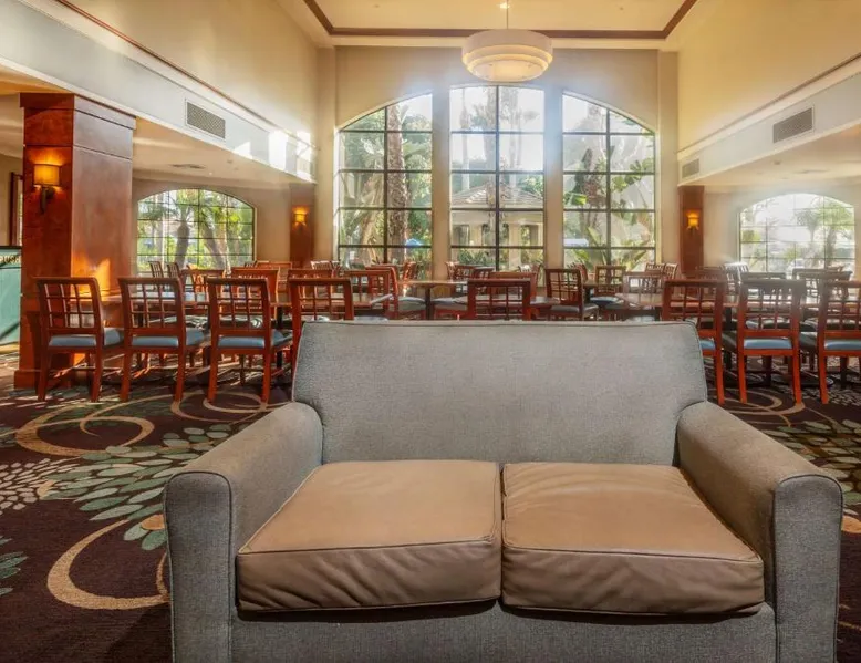 This all-suite property in Anaheim, California is next to an Anaheim Resort Transit stop with service to Disneyland, the Anaheim Convention Center and more for a small fee. Sonesta ES Suites Anaheim serves a free, breakfast buffet every morning. After breakfast, guests can go for a swim in the outdoor pool or purchase Disneyland tickets at the front desk. Additional amenities at the Sonesta ES Suites Anaheim include outdoor barbecue grills and on-site laundry facilities. Guests can workout in the fitness center or be productive in the on-site business center with high-speed internet access. The suite's kitchen, which has a refrigerator and a tea and coffee maker, is available for cooking and storing food. The unit has 2 beds.
