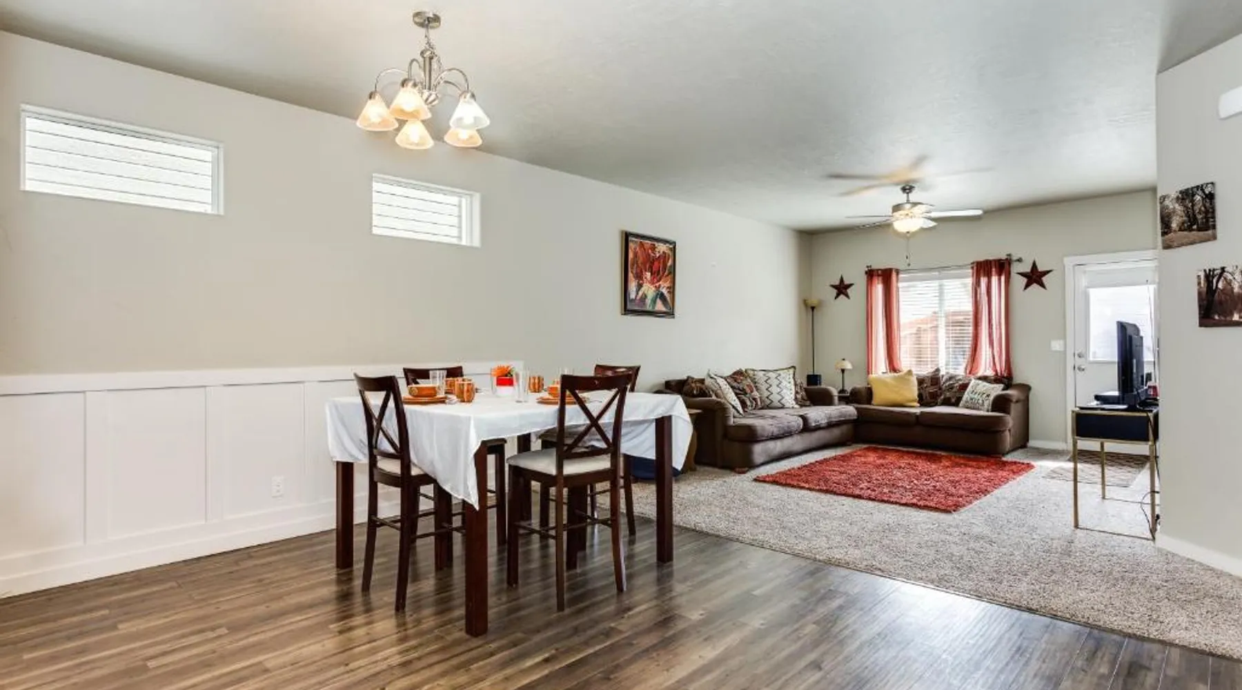 Spacious Holiday Home in Boise: 11259 Arch offers a spacious holiday home in Boise, United States. The property features three bedrooms and two bathrooms, ensuring ample space for guests. Modern Amenities: Guests enjoy a fully equipped kitchen with a dishwasher, microwave, and oven. The home includes air-conditioning, streaming services, and a washing machine. Free WiFi is available throughout the property. Outdoor Spaces: A beautiful garden provides a relaxing outdoor area. The patio offers a perfect spot to unwind, while the seating area offers additional comfort. Convenient Location: Located 8.1 mi from Boise Airport, the property is close to attractions such as Extramile Arena (8.7 mi) and Roaring Springs Water Park (6.8 mi). Free on-site private parking is provided. Featuring a private entrance, this air-conditioned holiday home consists of 1 living room, 3 separate bedrooms and 2 bathrooms with a bath and a shower. Meals can be prepared in the well-fitted kitchen, which comes with a stovetop, a refrigerator, a dishwasher and kitchenware. The spacious holiday home provides a flat-screen TV with streaming services, a washing machine, a tea and coffee maker, a seating area as well as a quiet street view. The unit offers 3 beds.