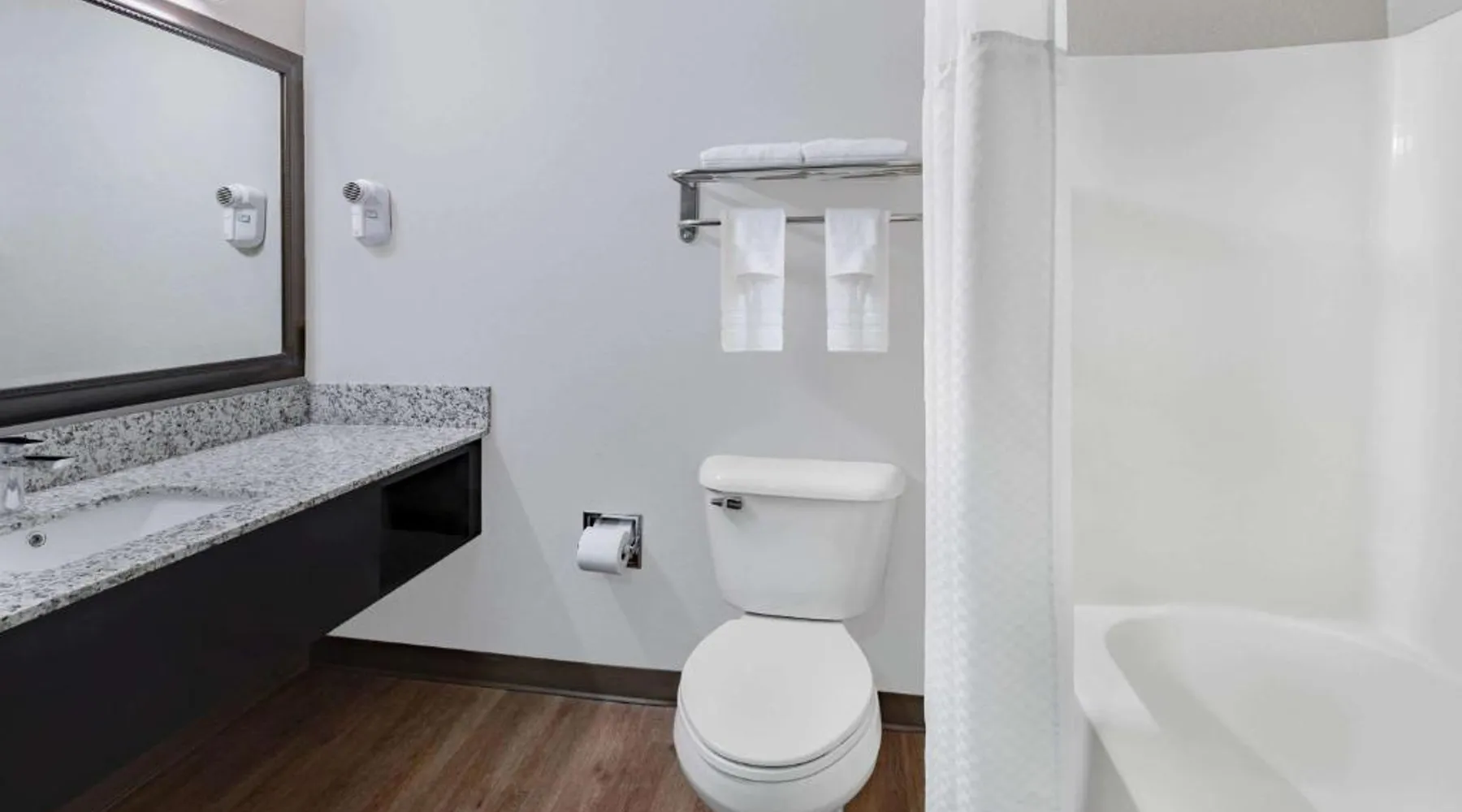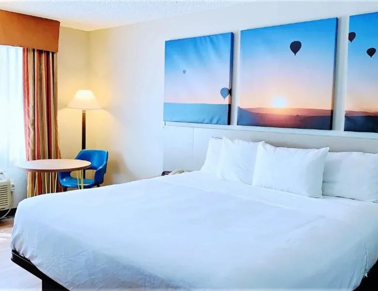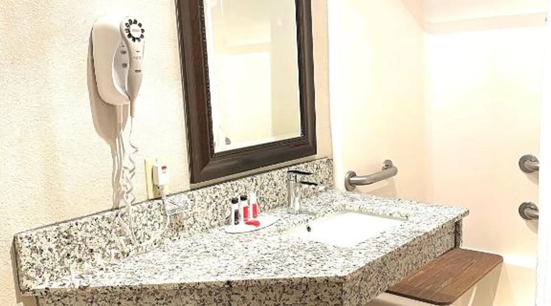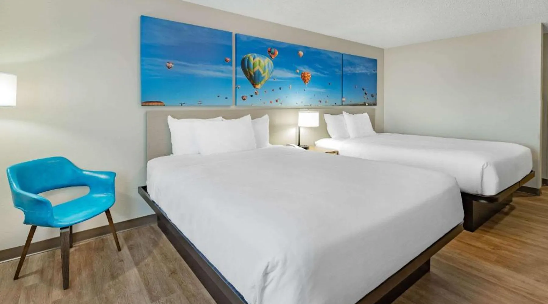 Comfortable Accommodations: Days Inn by Wyndham Bernalillo in Bernalillo offers family rooms with air-conditioning, private bathrooms, and free WiFi. Each room includes a TV, work desk, and free toiletries. Leisure Facilities: Guests can enjoy an indoor swimming pool, hot tub, and casino. Additional amenities include a elevator, 24-hour front desk, and free on-site private parking. Breakfast and Dining: A continental breakfast is served with juice, fresh pastries, and fruits. The hotel also provides a kitchenette with a refrigerator, microwave, and stovetop. Location and Attractions: Located 19 mi from Albuquerque International Sunport, the hotel is near Cliff's Amusement Park (14 mi) and the New Mexico Museum of Natural History and Science (20 mi). Guests appreciate the attentive staff and comfortable beds. Offering free toiletries, this family room includes a private bathroom with a bath, a shower and a hairdryer. The family room features carpeted floors, a seating area with a flat-screen TV with cable channels, air conditioning, a tea and coffee maker, as well as a safe deposit box. The unit offers 2 beds.