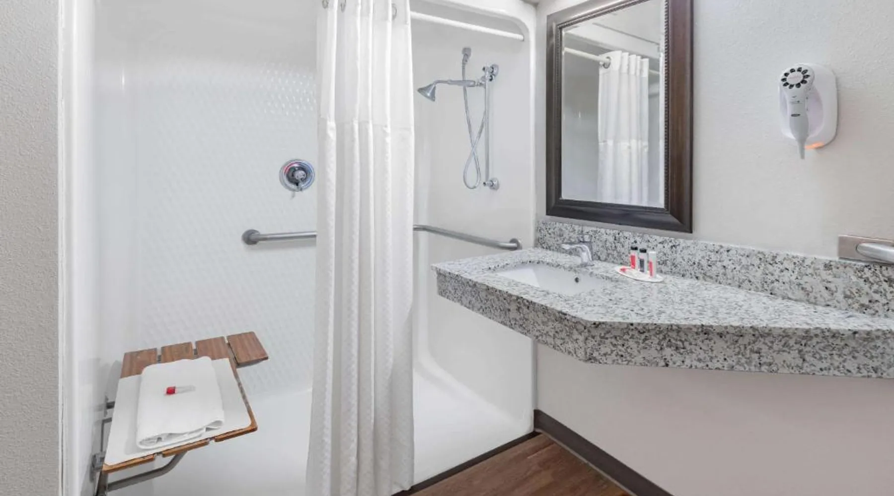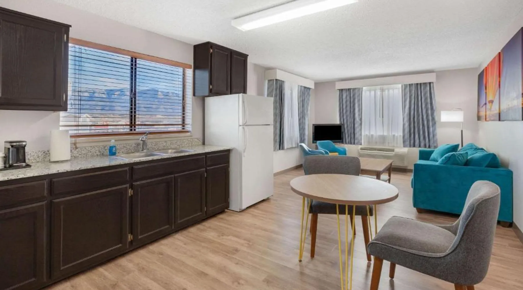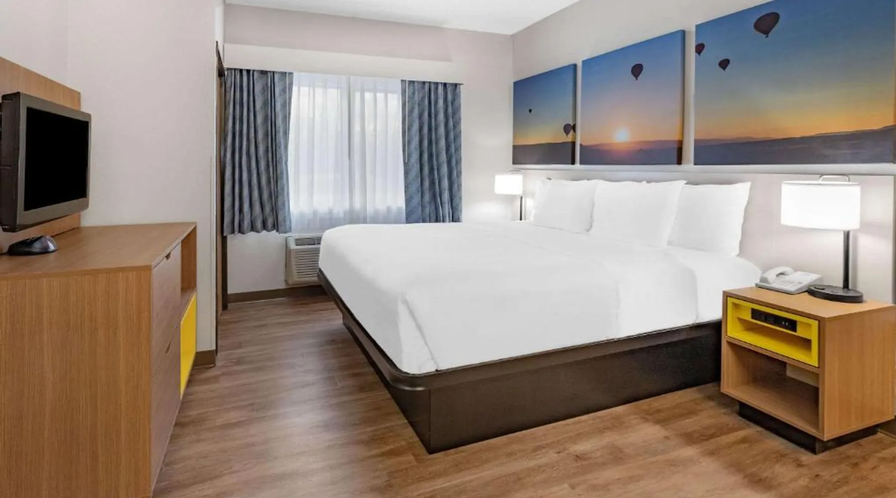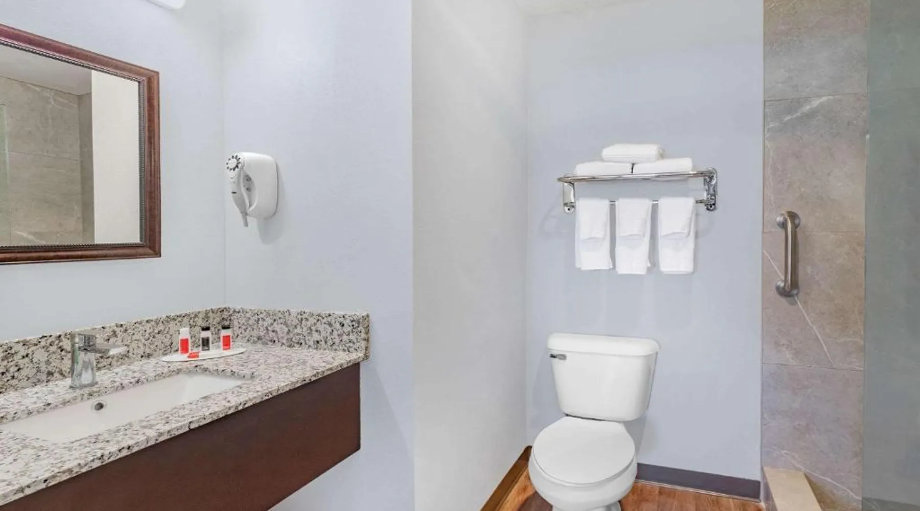 Comfortable Accommodations: Days Inn by Wyndham Bernalillo in Bernalillo offers family rooms with air-conditioning, private bathrooms, and free WiFi. Each room includes a TV, work desk, and free toiletries. Leisure Facilities: Guests can enjoy an indoor swimming pool, hot tub, and casino. Additional amenities include a elevator, 24-hour front desk, and free on-site private parking. Breakfast and Dining: A continental breakfast is served with juice, fresh pastries, and fruits. The hotel also provides a kitchenette with a refrigerator, microwave, and stovetop. Location and Attractions: Located 19 mi from Albuquerque International Sunport, the hotel is near Cliff's Amusement Park (14 mi) and the New Mexico Museum of Natural History and Science (20 mi). Guests appreciate the attentive staff and comfortable beds. Offering free toiletries, this family room includes a private bathroom with a bath, a shower and a hairdryer. The family room features carpeted floors, a seating area with a flat-screen TV with cable channels, air conditioning, a tea and coffee maker, as well as a safe deposit box. The unit offers 2 beds.