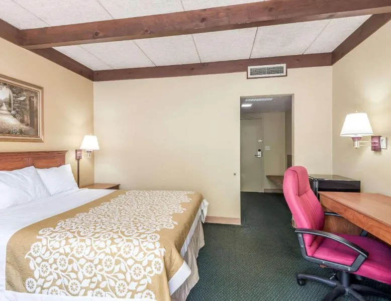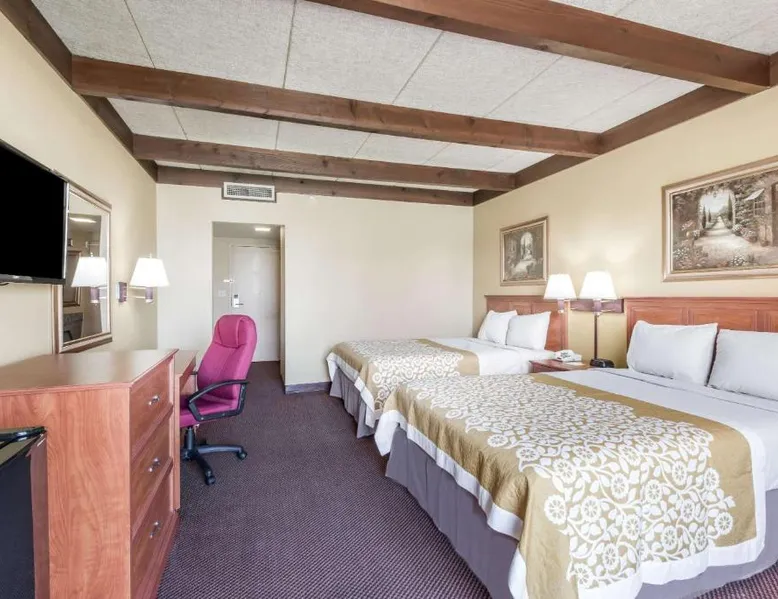 Comfortable Accommodations: Days Inn by Wyndham Niles in Niles offers family rooms with air-conditioning, private bathrooms, and balconies. Each room includes a tea and coffee maker, bath, bidet, hairdryer, work desk, free toiletries, shower, interconnected rooms, and TV. Essential Facilities: Guests enjoy free WiFi, a 24-hour front desk, and free on-site parking. Additional amenities include a balcony, bath, tea and coffee maker, bidet, hairdryer, work desk, free toiletries, shower, interconnected rooms, and TV. Prime Location: Located 1.2 mi from Eastwood Mall, the hotel is near attractions such as Mckinley Birthplace Memorial (2.5 mi), Trumbull Art Gallery and La Williams Art (5 mi), and First Flight Lunar Module (7.5 mi). Guests appreciate the property staff and service support, bed comfort, and room cleanliness. This room has a balcony, cable TV and air conditioning.