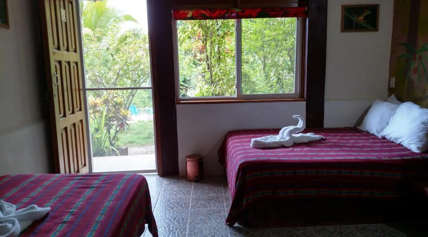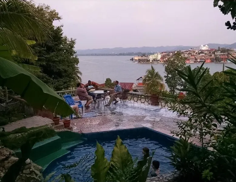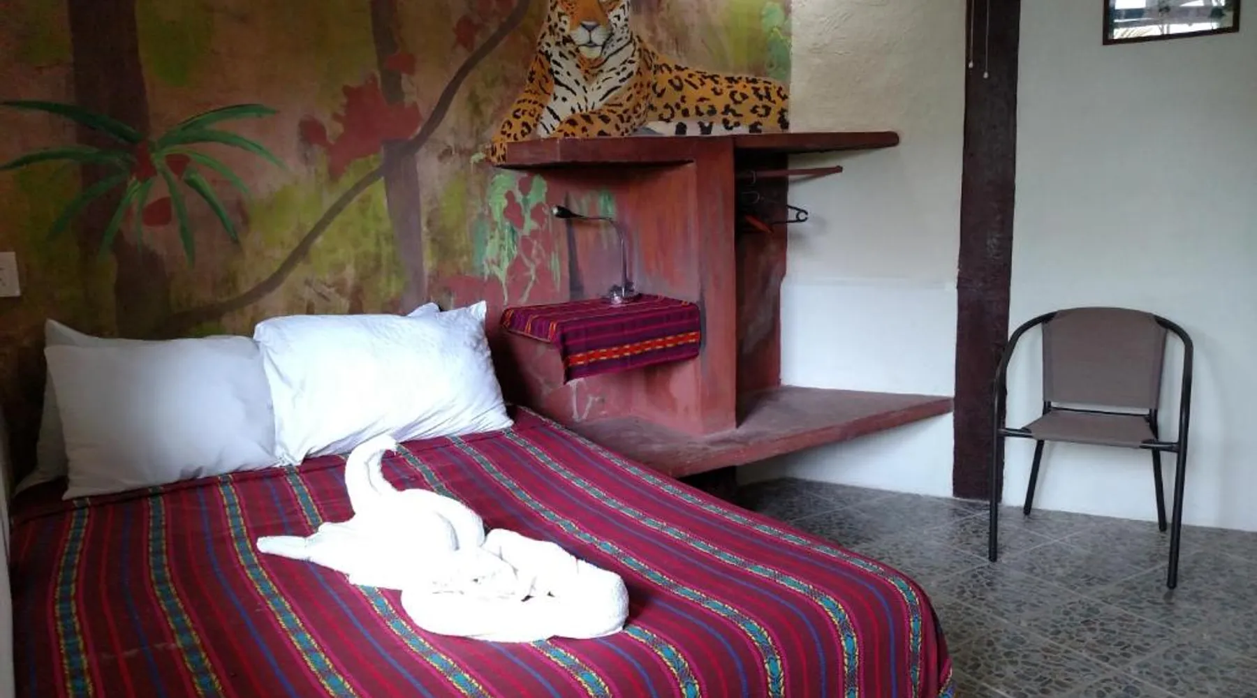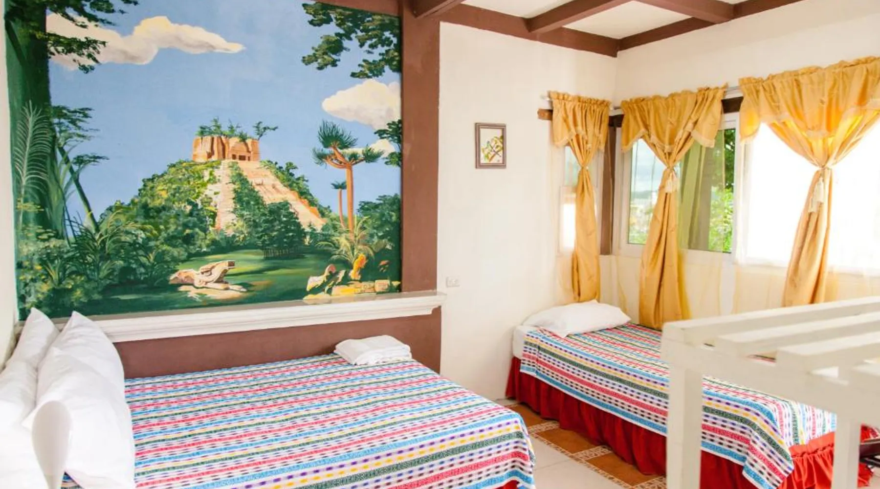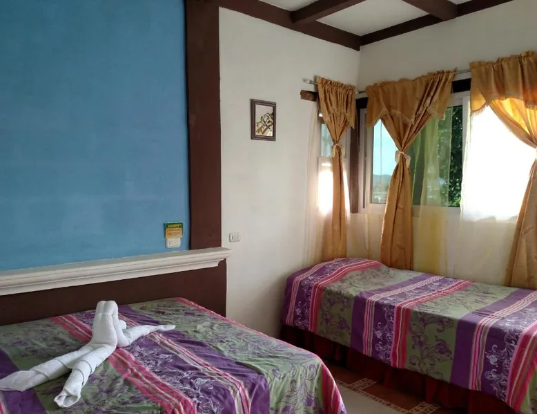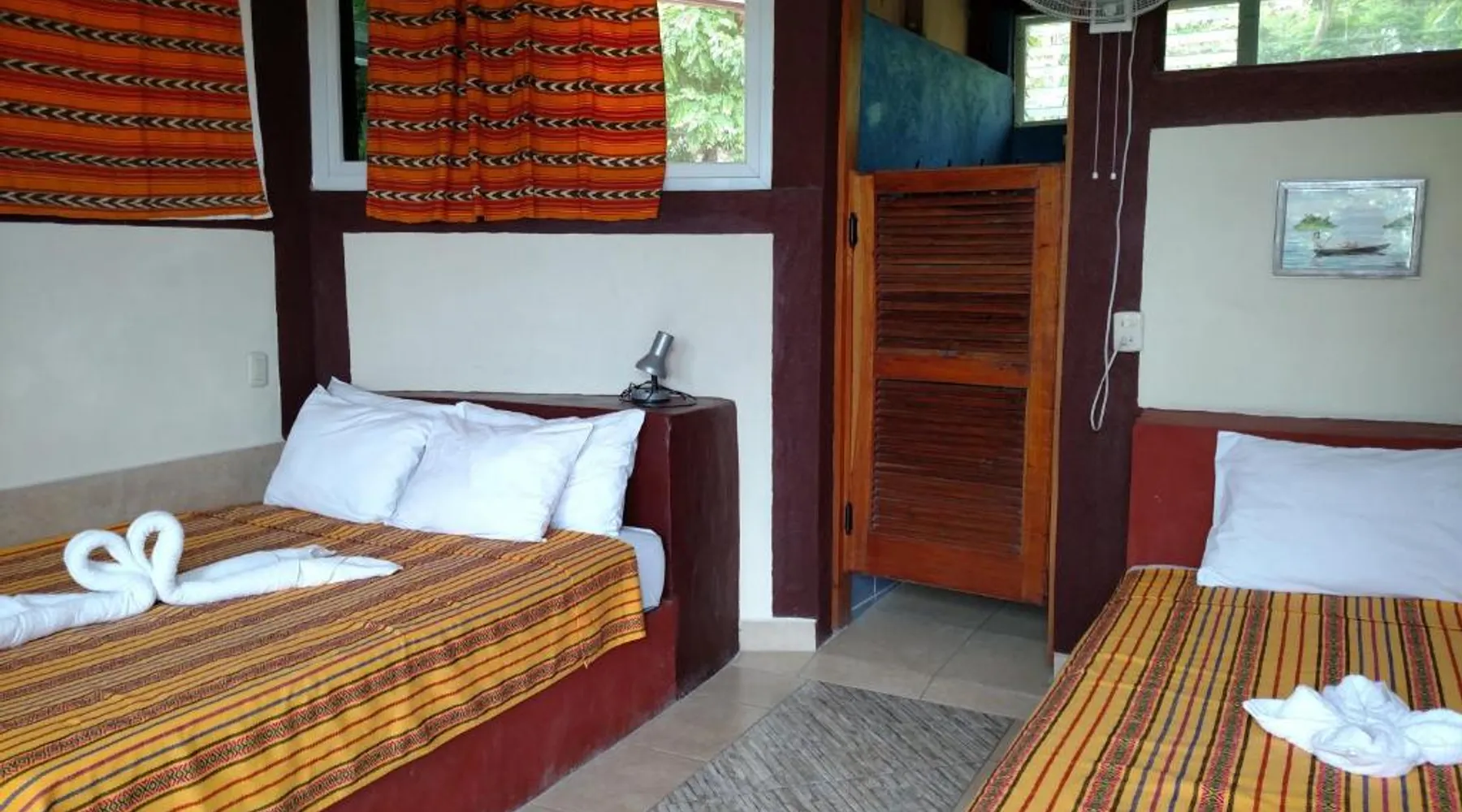 Zapote Tree Inn is located less than 16 minutes from Flores' airport and 4 minutes away from Flores island by boat, located at a privileged point to appreciate sunsets and sunrises overlooking the island and the lake. All our rooms have mosquito screens on the windows and doors. We are at the edge of the jungle with birds, iguanas, squirrels, hummingbirds, etc., and our trees provide fresh breezes and fruits. We are within 8 minutes walking distance of the archaeological excavations of Tayasal and 15 minutes walking on shady trails to the beach El Chechenal. Welcome to our home! This triple room offers a pool with a view. The triple room provides air conditioning, a private entrance, a terrace with lake views as well as a private bathroom featuring a walk-in shower. The unit offers 2 beds.