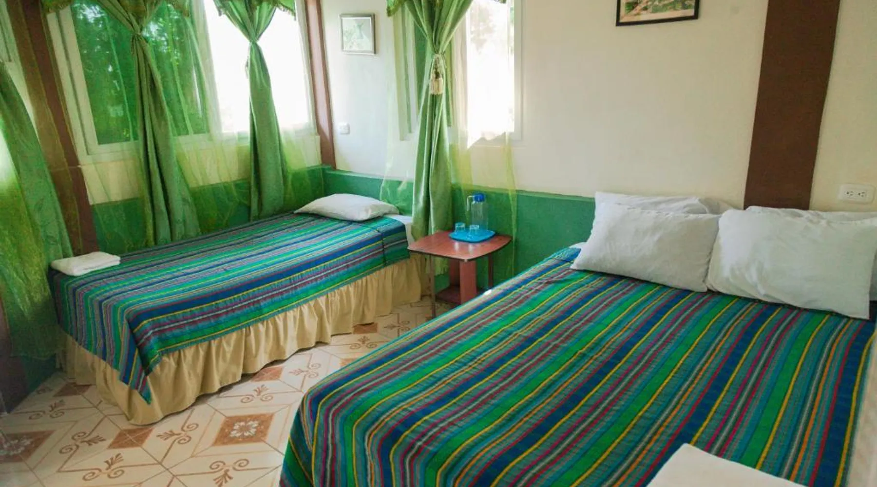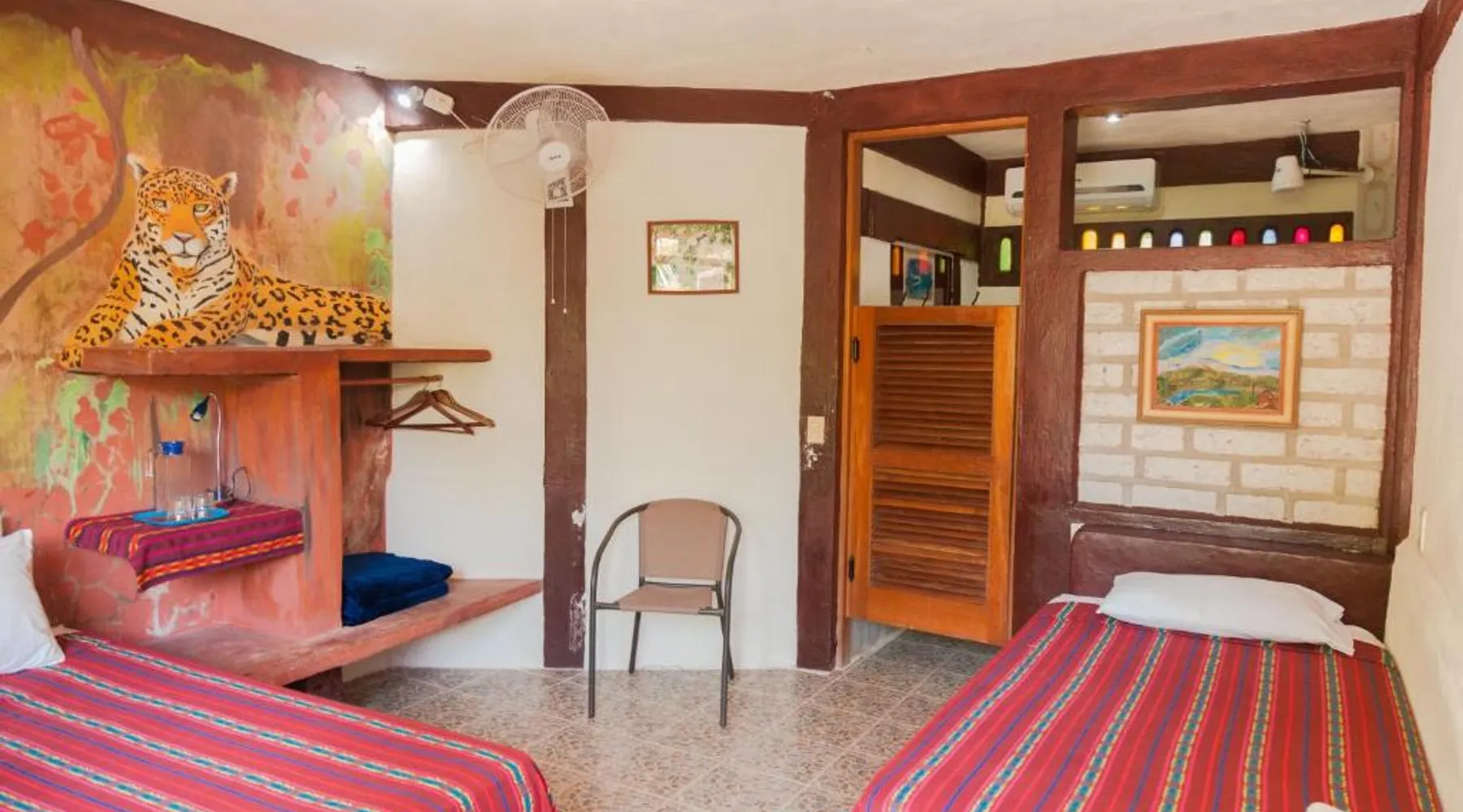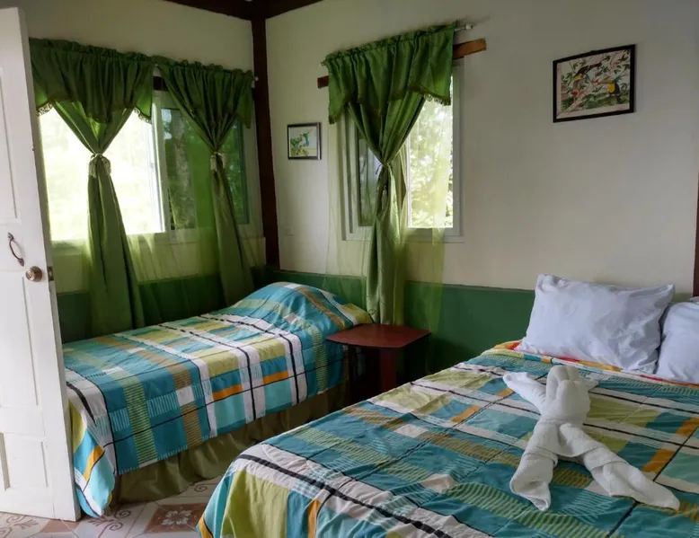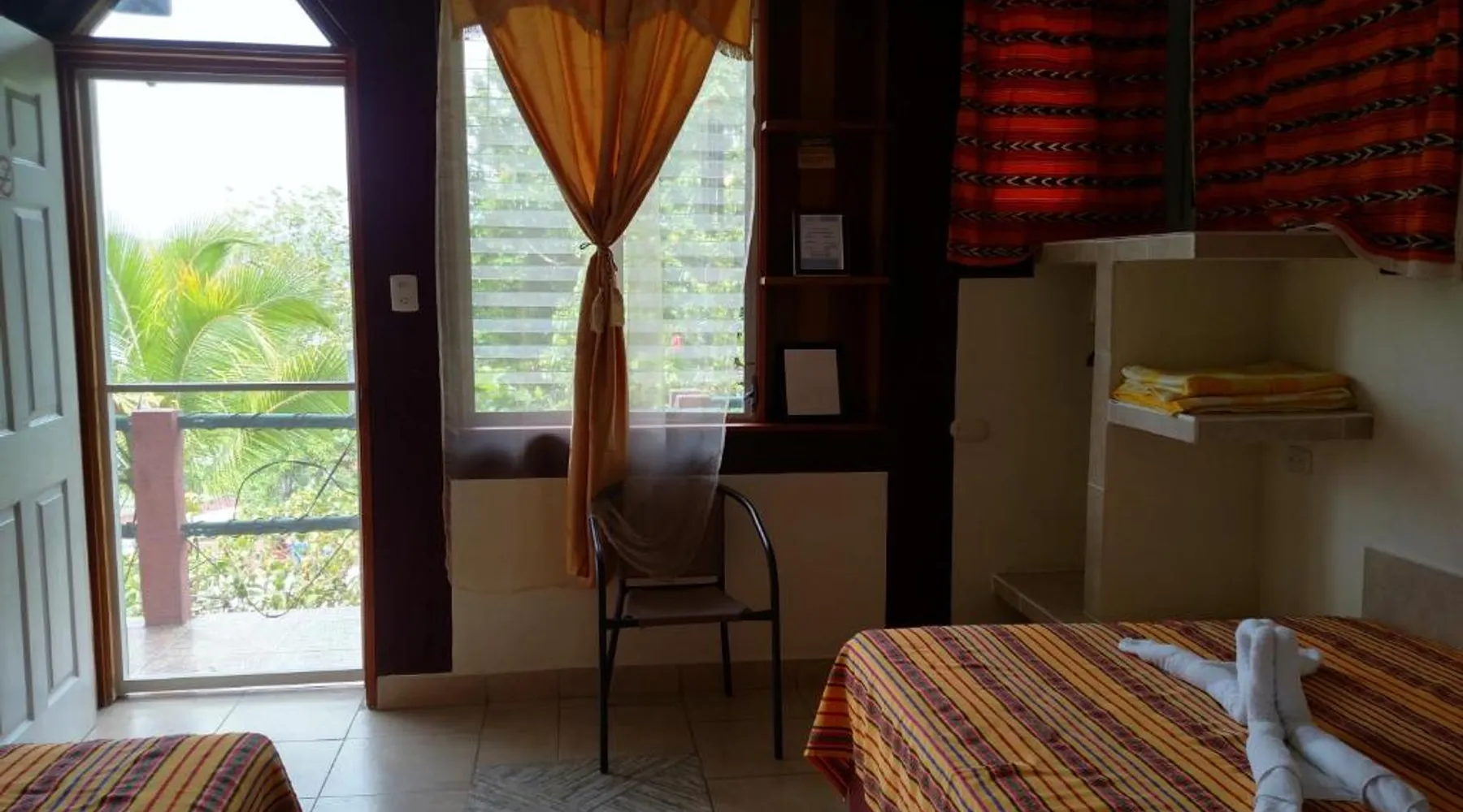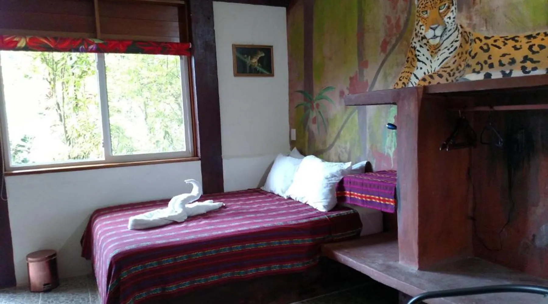Zapote Tree Inn is located less than 16 minutes from Flores' airport and 4 minutes away from Flores island by boat, located at a privileged point to appreciate sunsets and sunrises overlooking the island and the lake. All our rooms have mosquito screens on the windows and doors. We are at the edge of the jungle with birds, iguanas, squirrels, hummingbirds, etc., and our trees provide fresh breezes and fruits. We are within 8 minutes walking distance of the archaeological excavations of Tayasal and 15 minutes walking on shady trails to the beach El Chechenal. Welcome to our home! This triple room offers a pool with a view. The triple room provides air conditioning, a private entrance, a terrace with lake views as well as a private bathroom featuring a walk-in shower. The unit offers 2 beds.
