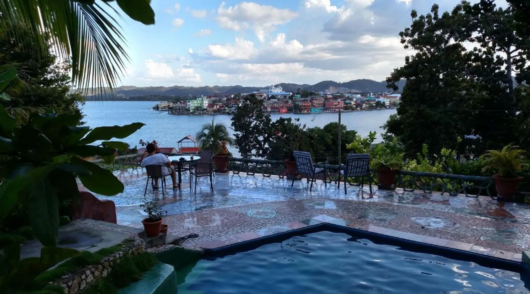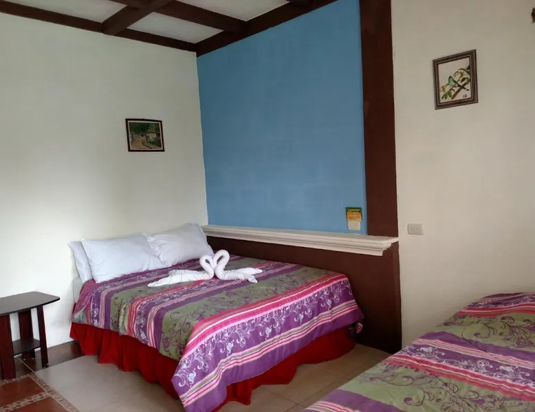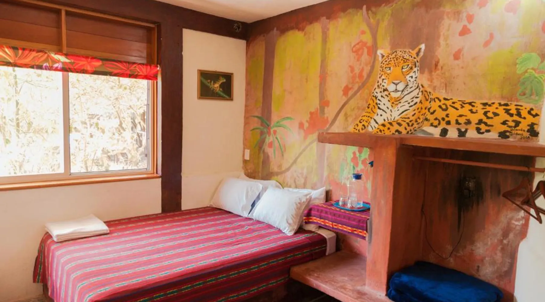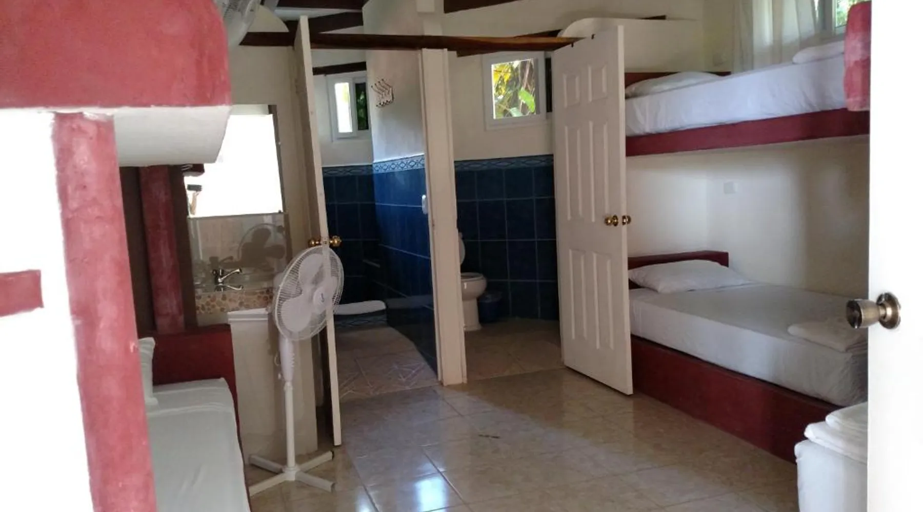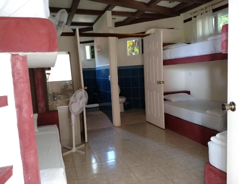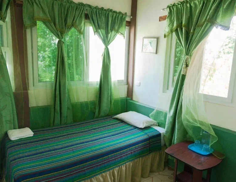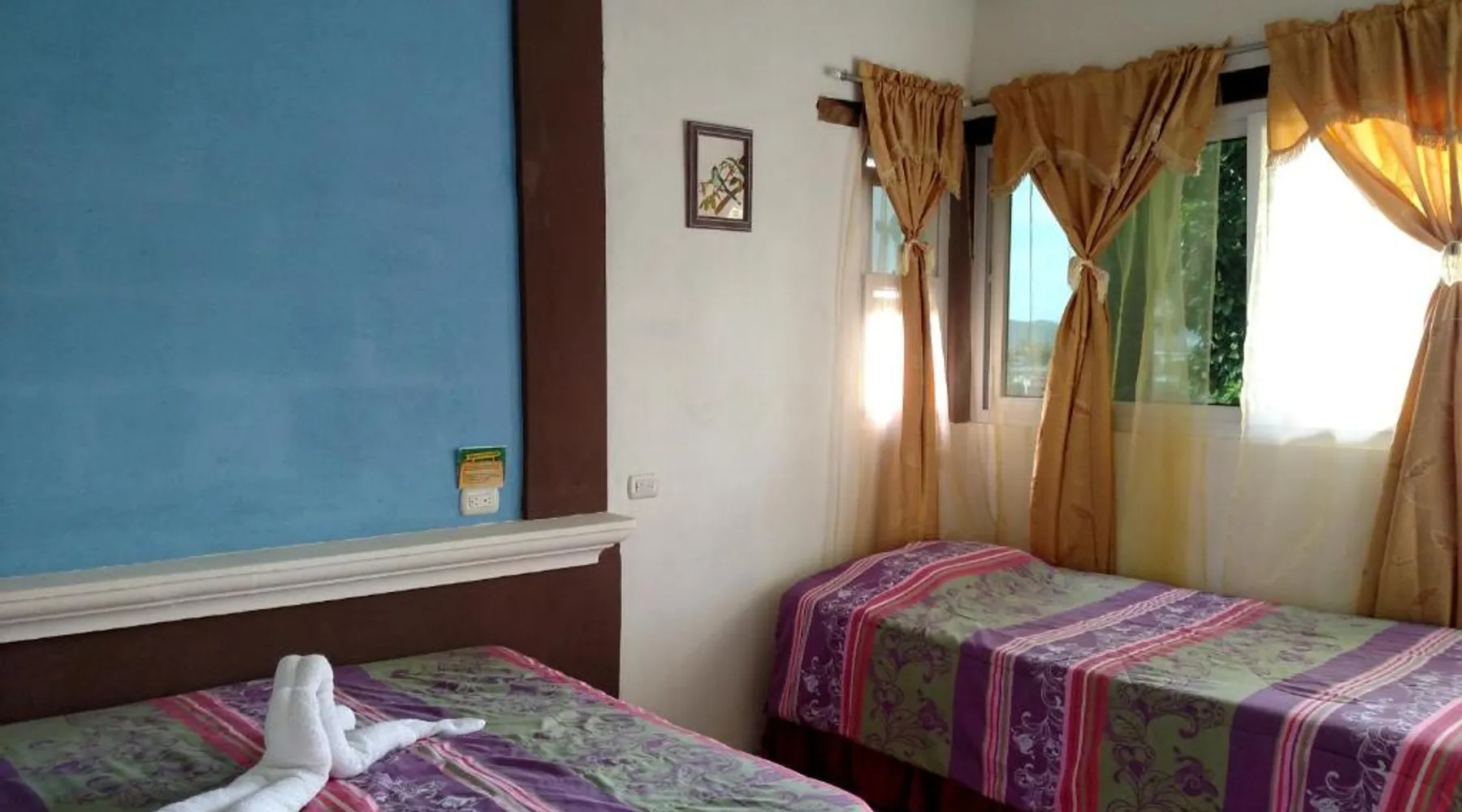 Zapote Tree Inn is located less than 16 minutes from Flores' airport and 4 minutes away from Flores island by boat, located at a privileged point to appreciate sunsets and sunrises overlooking the island and the lake. All our rooms have mosquito screens on the windows and doors. We are at the edge of the jungle with birds, iguanas, squirrels, hummingbirds, etc., and our trees provide fresh breezes and fruits. We are within 8 minutes walking distance of the archaeological excavations of Tayasal and 15 minutes walking on shady trails to the beach El Chechenal. Welcome to our home! This triple room offers a pool with a view. The triple room provides air conditioning, a private entrance, a terrace with lake views as well as a private bathroom featuring a walk-in shower. The unit offers 2 beds.