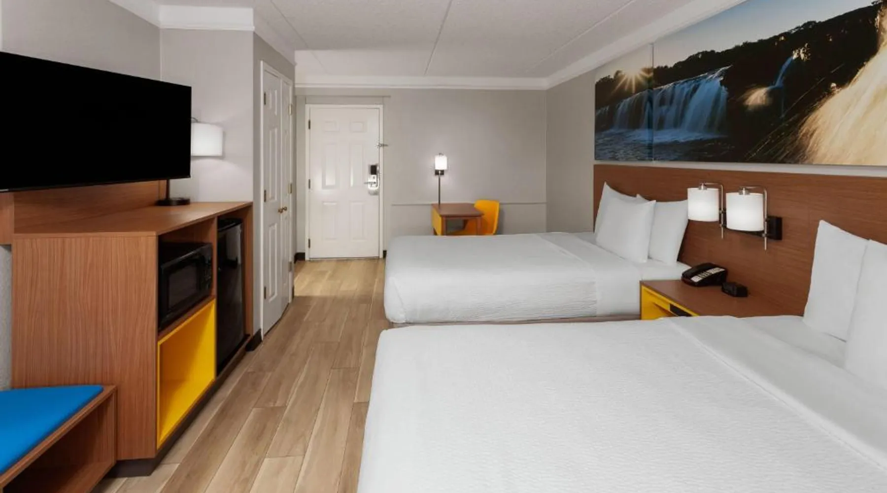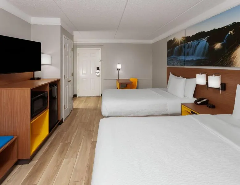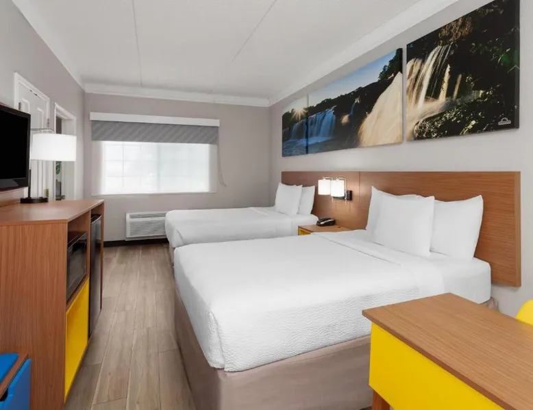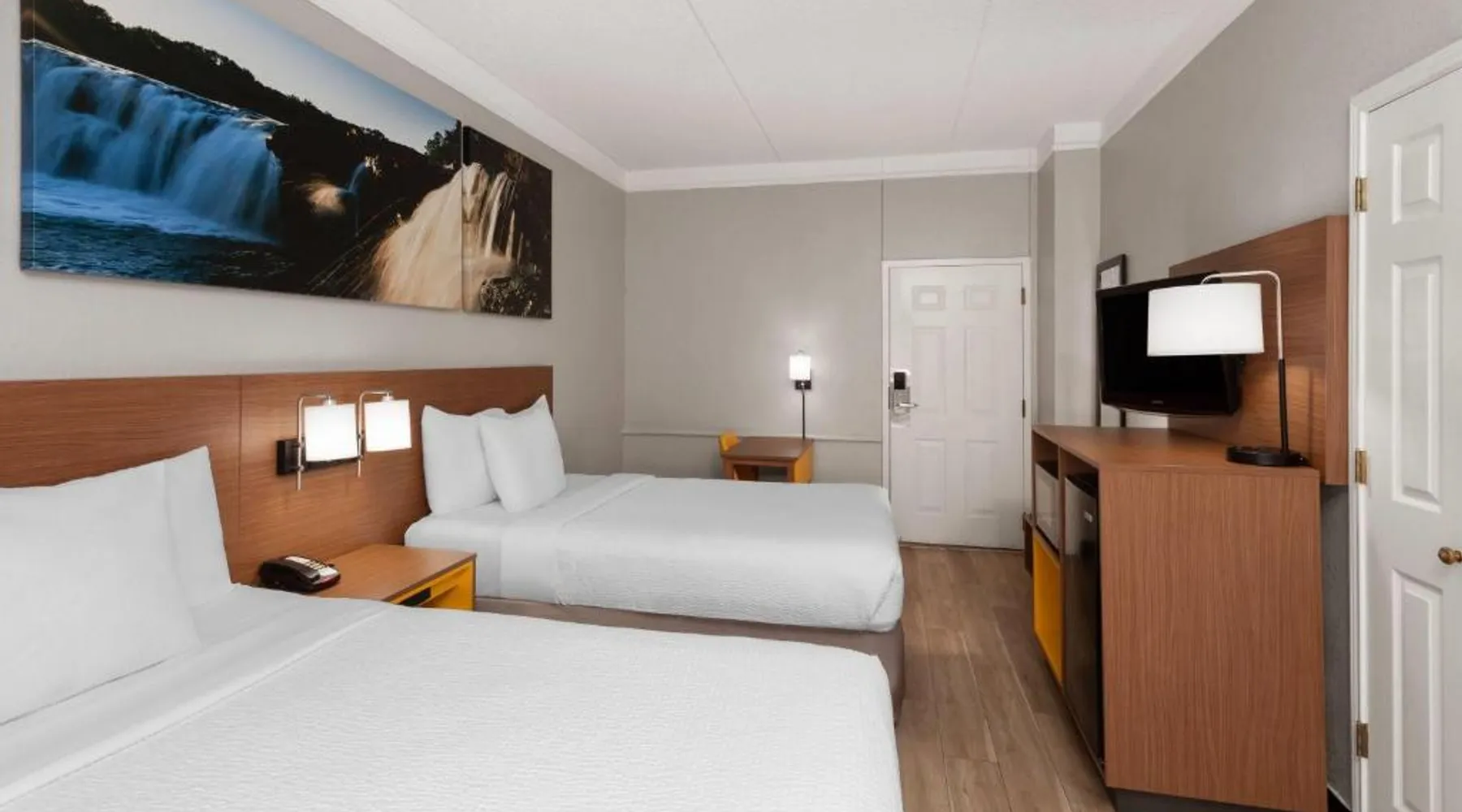 This Arlington Heights, Illinois hotel is 30 miles away from downtown Chicago. Free WiFi is provided in all rooms. A free daily breakfast is offered as well. Styled in cherry wood furnishings, rooms are styled in subtle colored linens at Days Inn Chicago Arlington Heights. Cable TV, coffee-making facilities and private bathroom are provided as well. American Breakfast to go. A fitness center is also onsite. Historic Village of Long Grove is 5 minutes’ drive away. Medieval Times Dinner & Tournament is 15 minutes’ drive away from Days Inn Chicago Arlington Heights. The quadruple room provides air conditioning, as well as a private bathroom featuring a bath or a shower. The unit offers 2 beds.