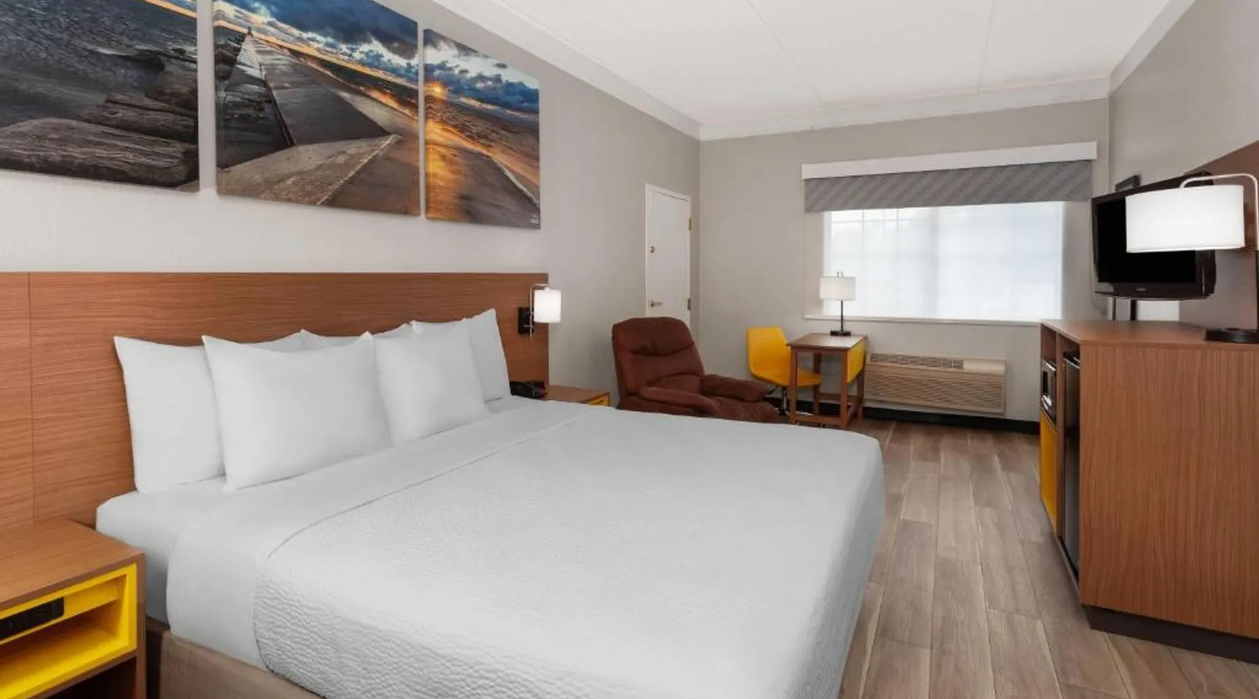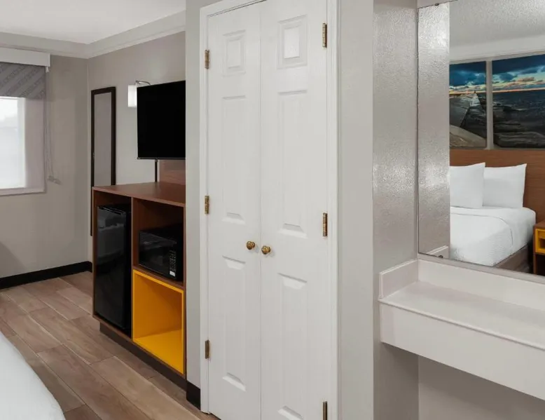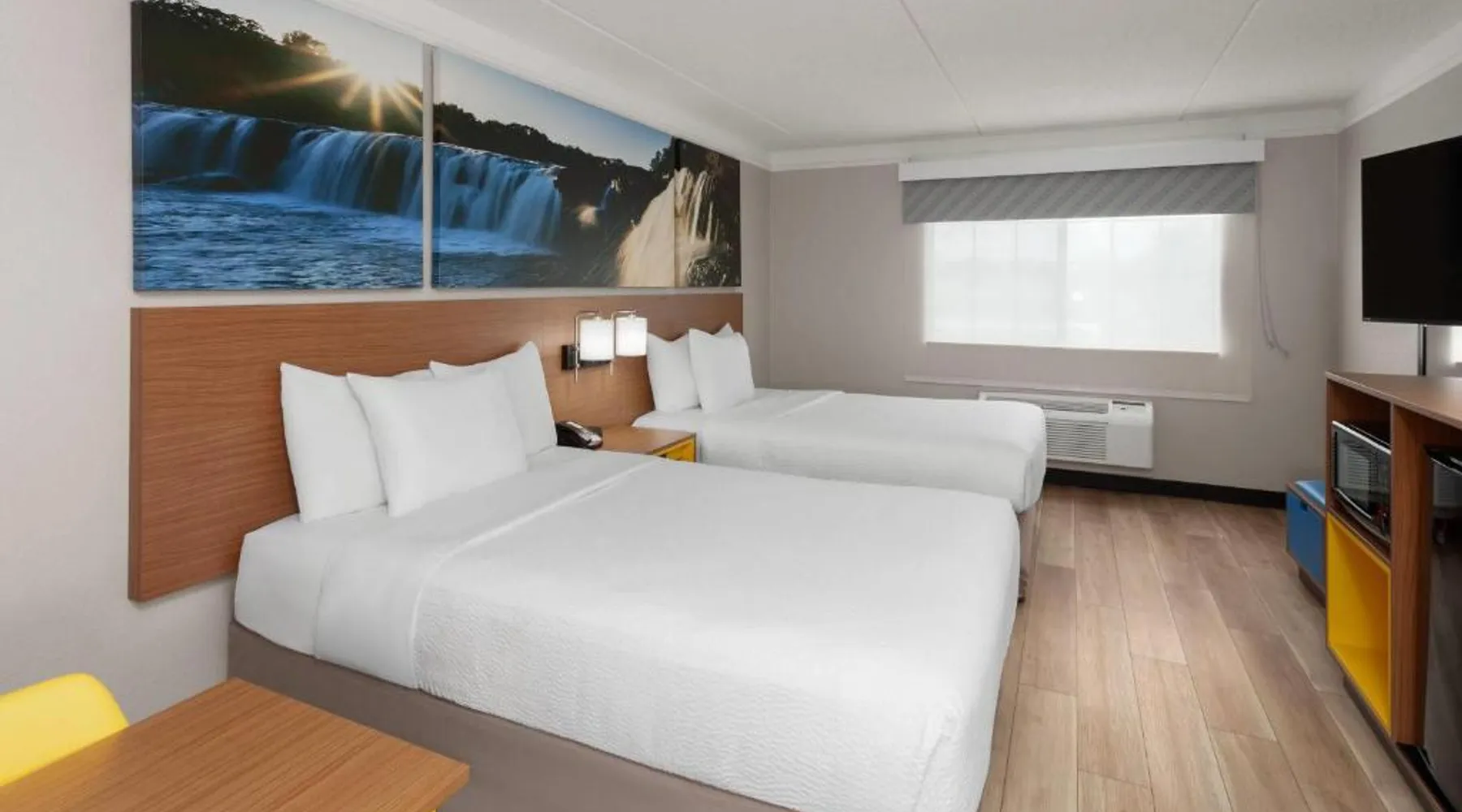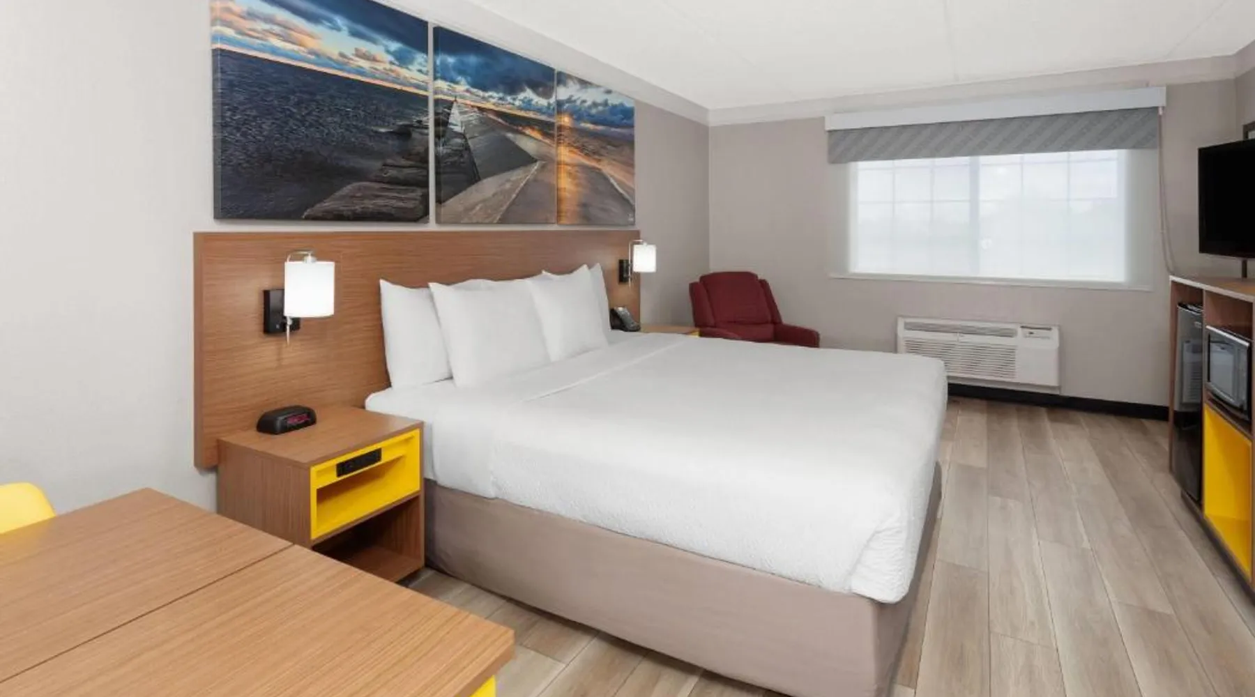 This Arlington Heights, Illinois hotel is 30 miles away from downtown Chicago. Free WiFi is provided in all rooms. A free daily breakfast is offered as well. Styled in cherry wood furnishings, rooms are styled in subtle colored linens at Days Inn Chicago Arlington Heights. Cable TV, coffee-making facilities and private bathroom are provided as well. American Breakfast to go. A fitness center is also onsite. Historic Village of Long Grove is 5 minutes’ drive away. Medieval Times Dinner & Tournament is 15 minutes’ drive away from Days Inn Chicago Arlington Heights. The quadruple room provides air conditioning, as well as a private bathroom featuring a bath or a shower. The unit offers 2 beds.