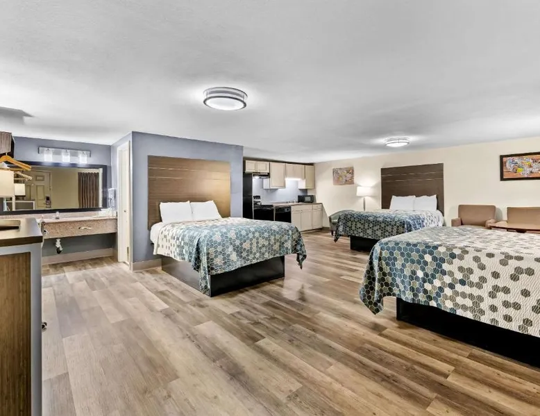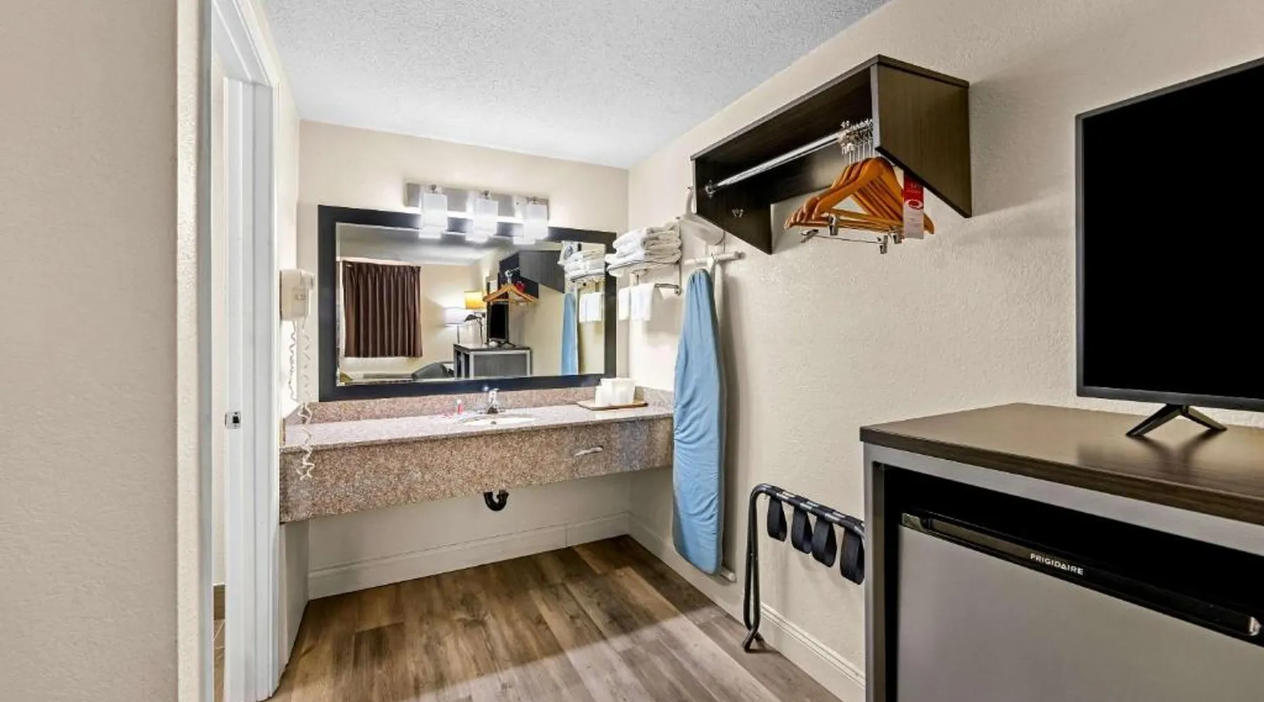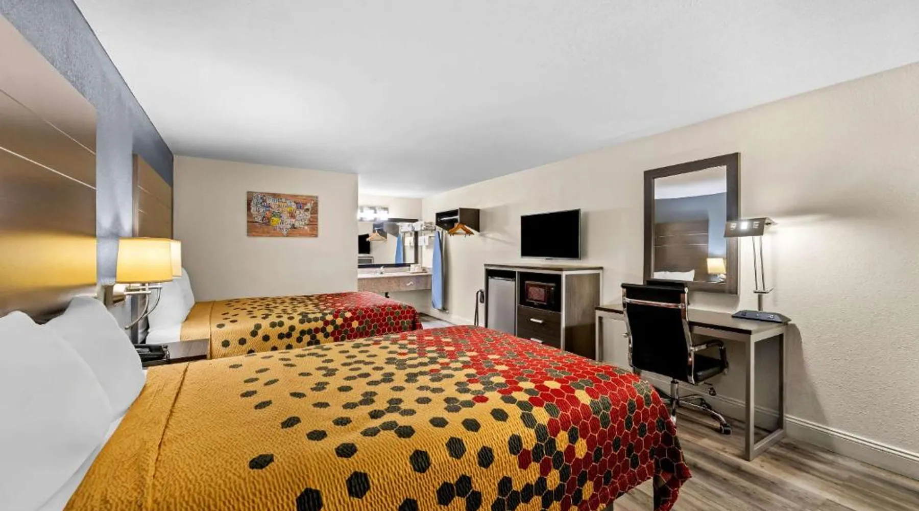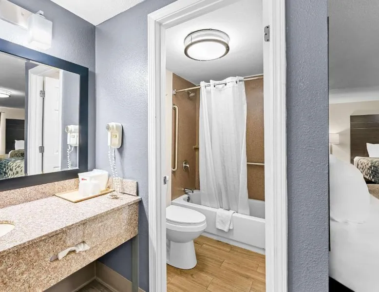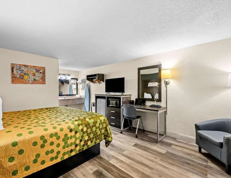 Comfortable Accommodations: Econo Lodge Kingsport East in Kingsport offers clean rooms with air-conditioning, free WiFi, and essential amenities including a work desk, microwave, and TV. Convenient Facilities: Guests benefit from free on-site parking, a paid shuttle service, and a 24-hour front desk. Additional features include a mini-bar, refrigerator, and free toiletries. Prime Location: Located 3.1 mi from Tri-Cities Regional Airport, the lodge is near attractions such as Bristol Motor Speedway (12 mi), Hands On! Discovery Center (13 mi), and Tweetsie Trail (22 mi). Guest Satisfaction: Guests appreciate the room cleanliness, attentive staff, and excellent value for money. This room features a microwave, small refrigerator, and cable TV.