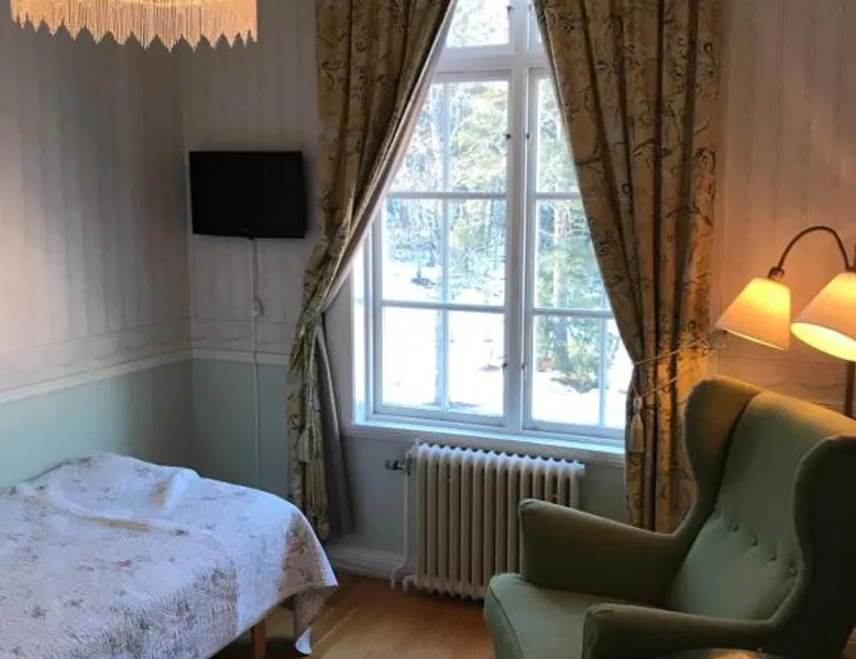 Set in a restored military hospital, this Malmköping hotel is 25 minutes’ drive from Eskilstuna. It offers free Wi-Fi, an elegant restaurant on site, along with free sauna access. Individually furnished rooms with a flat-screen TV are featured at Hotell Plevnagården, as well as a private bathroom with either a bath or shower. Guest rooms are located in the main building and 4 annexes. Local specialties are served at Plevnagården’s restaurant and bar. Other on-site facilities include a billiards room, a spa with bookable massage treatments and a outdoor jacuzzi. The jacuzzi can be booked for 1 hour time slot. The sandy Hosjön Beach is 5 minutes’ walk away, while horseback riding opportunities are available 2.5 mi from the hotel. Guests can also downhill ski at Malmabacken, just 328 feet away. Tastefully decorated room that features a flat-screen TV with cable channels.
