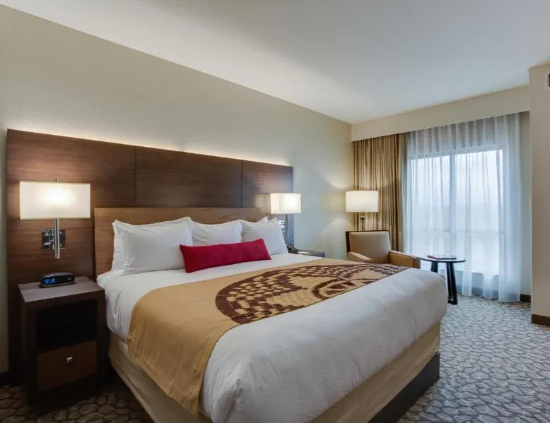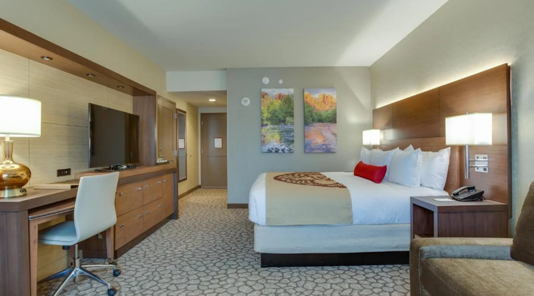 Comfortable Accommodations: Cliff Castle Casino Hotel in Camp Verde offers comfortable rooms with air-conditioning, private bathrooms, and modern amenities. Guests appreciate the room cleanliness and comfort. Exceptional Facilities: The hotel features a fitness center, indoor swimming pool, restaurant, bar, and free WiFi. Additional facilities include a casino, hot tub, and 24-hour front desk. Prime Location: Located a few steps from Cliff Castle Casino, the hotel is 47 mi from Ernest A Love Field Airport. Nearby attractions include Montezuma Castle National Monument (2.7 mi) and Historic Downtown Main Street (3.1 mi). Guest Services: Guests benefit from free on-site private parking, shuttle service, concierge, and daily housekeeping. The hotel staff provide excellent service support. The spacious double room provides air conditioning, a tea and coffee maker, a safe deposit box and a flat-screen TV with cable channels. The unit offers 2 beds.