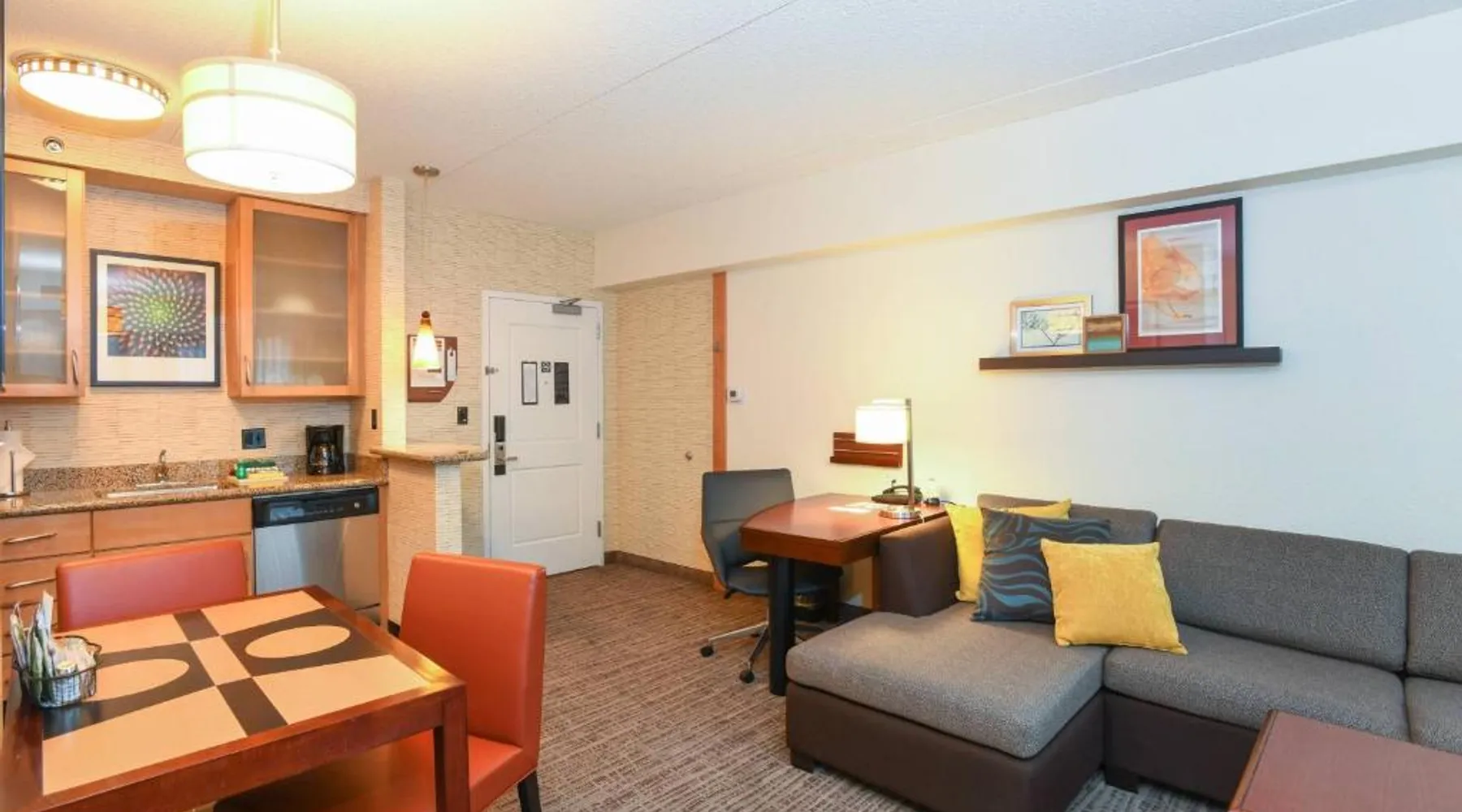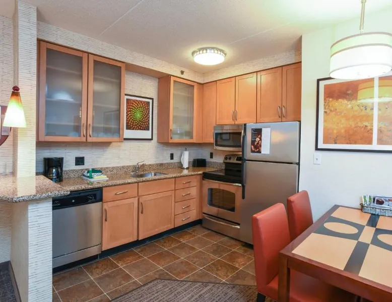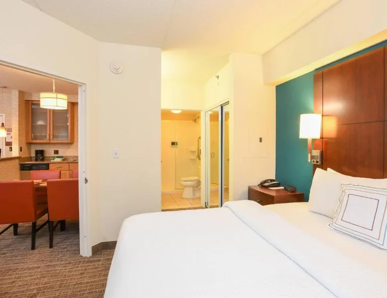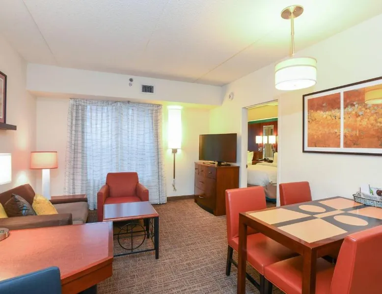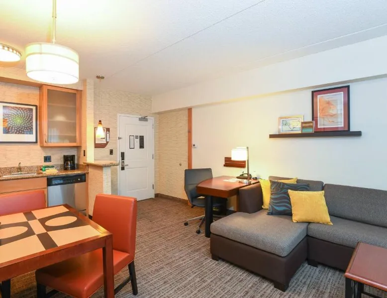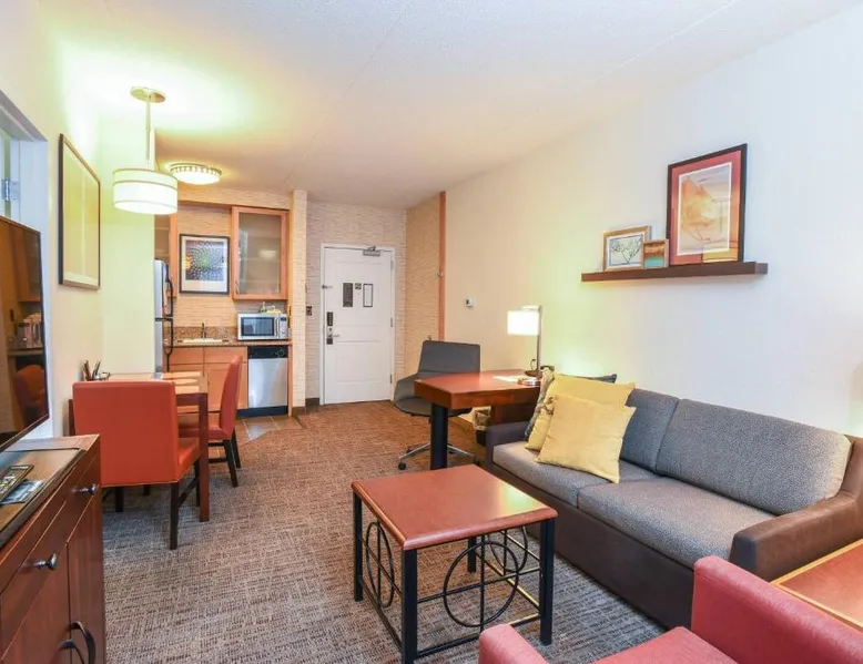 Comfortable Accommodations: Residence Inn Cincinnati North West Chester in West Chester offers spacious rooms with air-conditioning, private bathrooms, and fully equipped kitchens. Guests enjoy free WiFi, flat-screen TVs, and comfortable seating areas. Leisure Facilities: The hotel features a fitness center, sun terrace, indoor swimming pool, and hot tub. Additional amenities include a lounge, outdoor fireplace, and outdoor play area, ensuring a relaxing and enjoyable stay. Convenient Location: Located 11 mi from Kings Island and 15 mi from Cincinnati Zoo and Botanical Garden, the property is also close to attractions such as Newport Aquarium and Paul Brown Stadium. Free on-site parking is available for guests. Guest Satisfaction: Highly rated for room comfort, cleanliness, and attentive staff, Residence Inn Cincinnati North West Chester provides excellent service support and a welcoming environment. This suite icludes a separate living room.