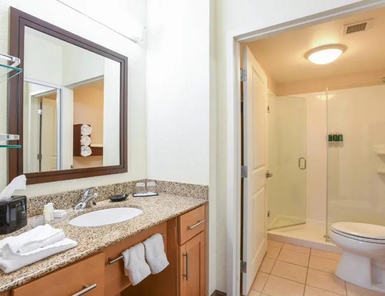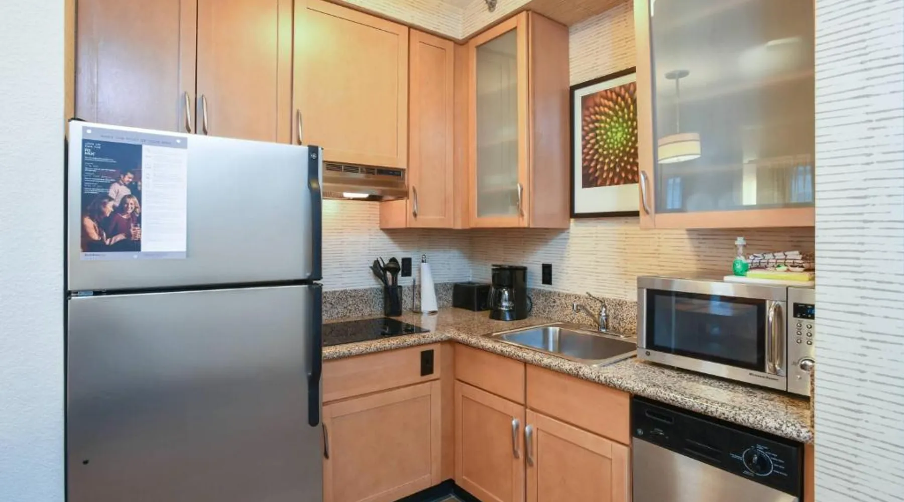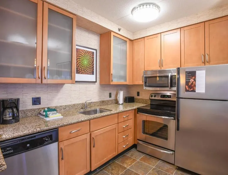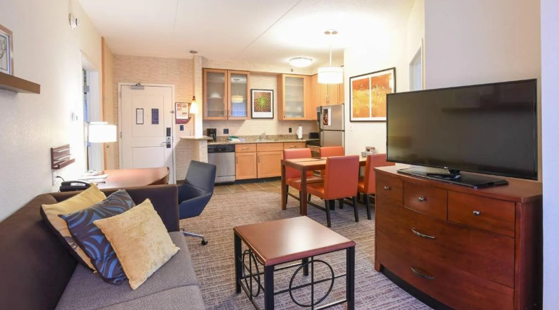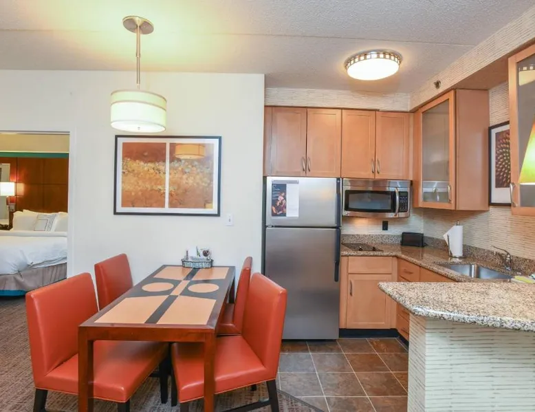 Comfortable Accommodations: Residence Inn Cincinnati North West Chester in West Chester offers spacious rooms with air-conditioning, private bathrooms, and fully equipped kitchens. Guests enjoy free WiFi, flat-screen TVs, and comfortable seating areas. Leisure Facilities: The hotel features a fitness center, sun terrace, indoor swimming pool, and hot tub. Additional amenities include a lounge, outdoor fireplace, and outdoor play area, ensuring a relaxing and enjoyable stay. Convenient Location: Located 11 mi from Kings Island and 15 mi from Cincinnati Zoo and Botanical Garden, the property is also close to attractions such as Newport Aquarium and Paul Brown Stadium. Free on-site parking is available for guests. Guest Satisfaction: Highly rated for room comfort, cleanliness, and attentive staff, Residence Inn Cincinnati North West Chester provides excellent service support and a welcoming environment. This suite icludes a separate living room.