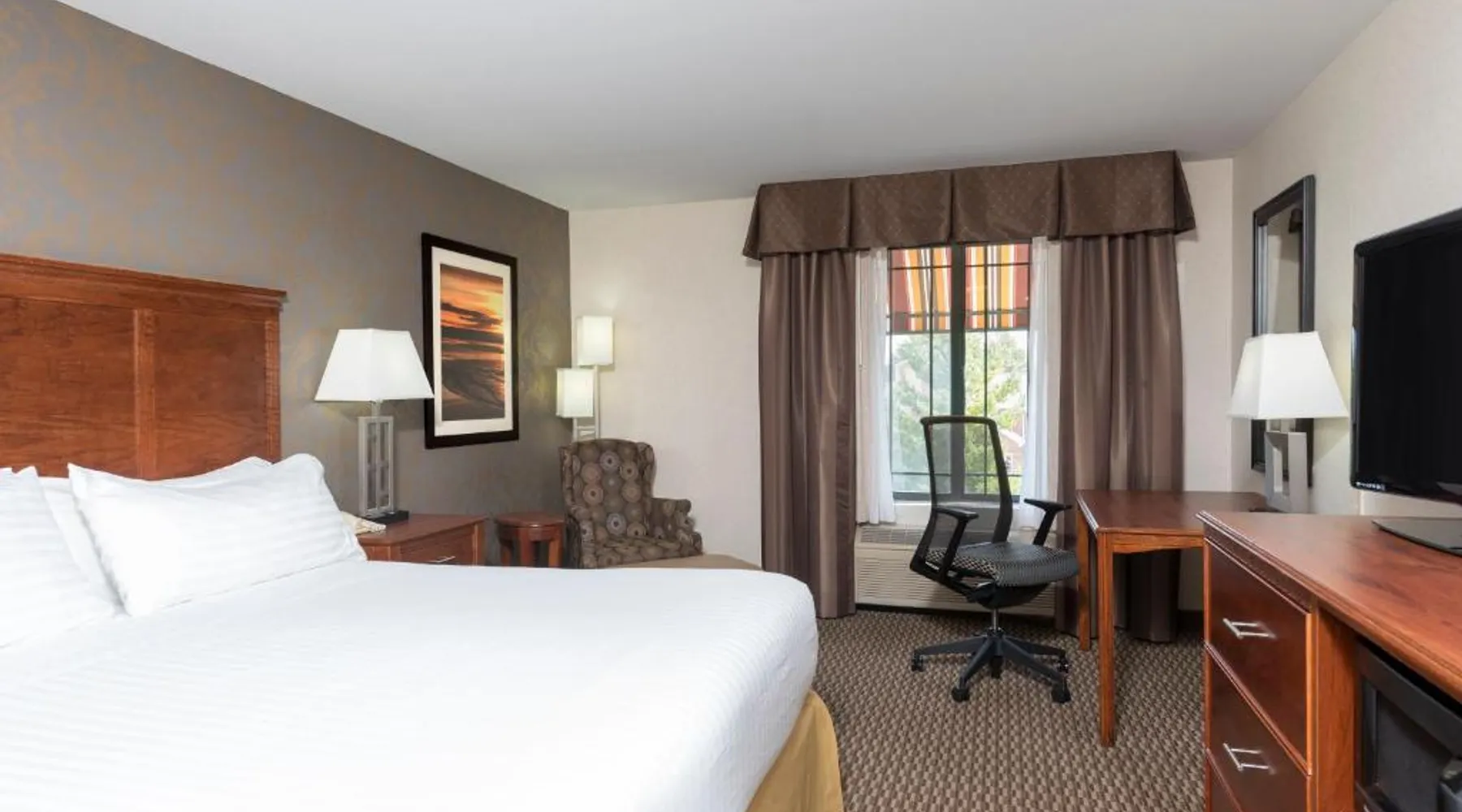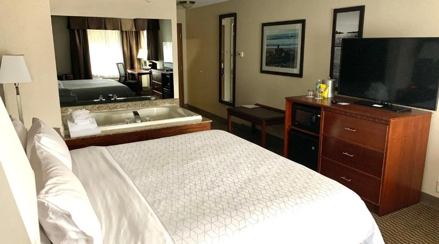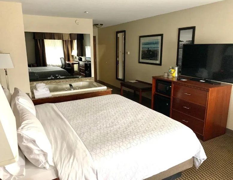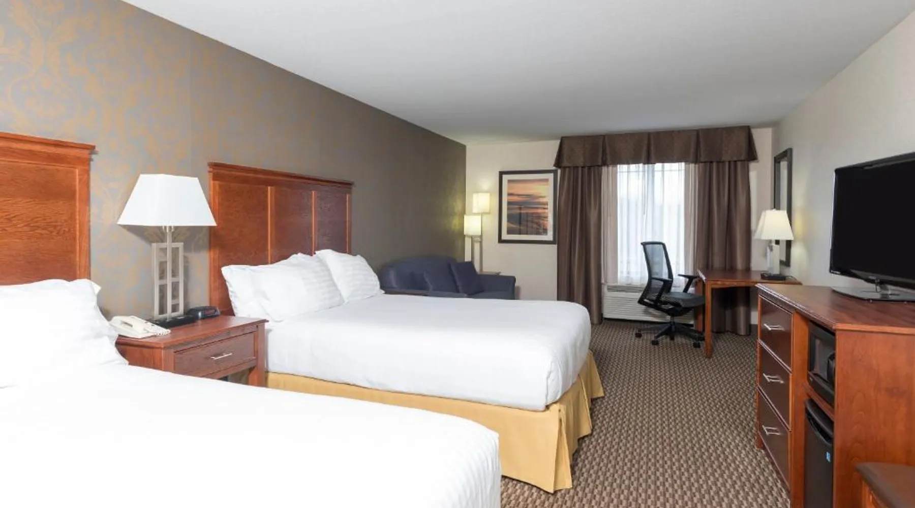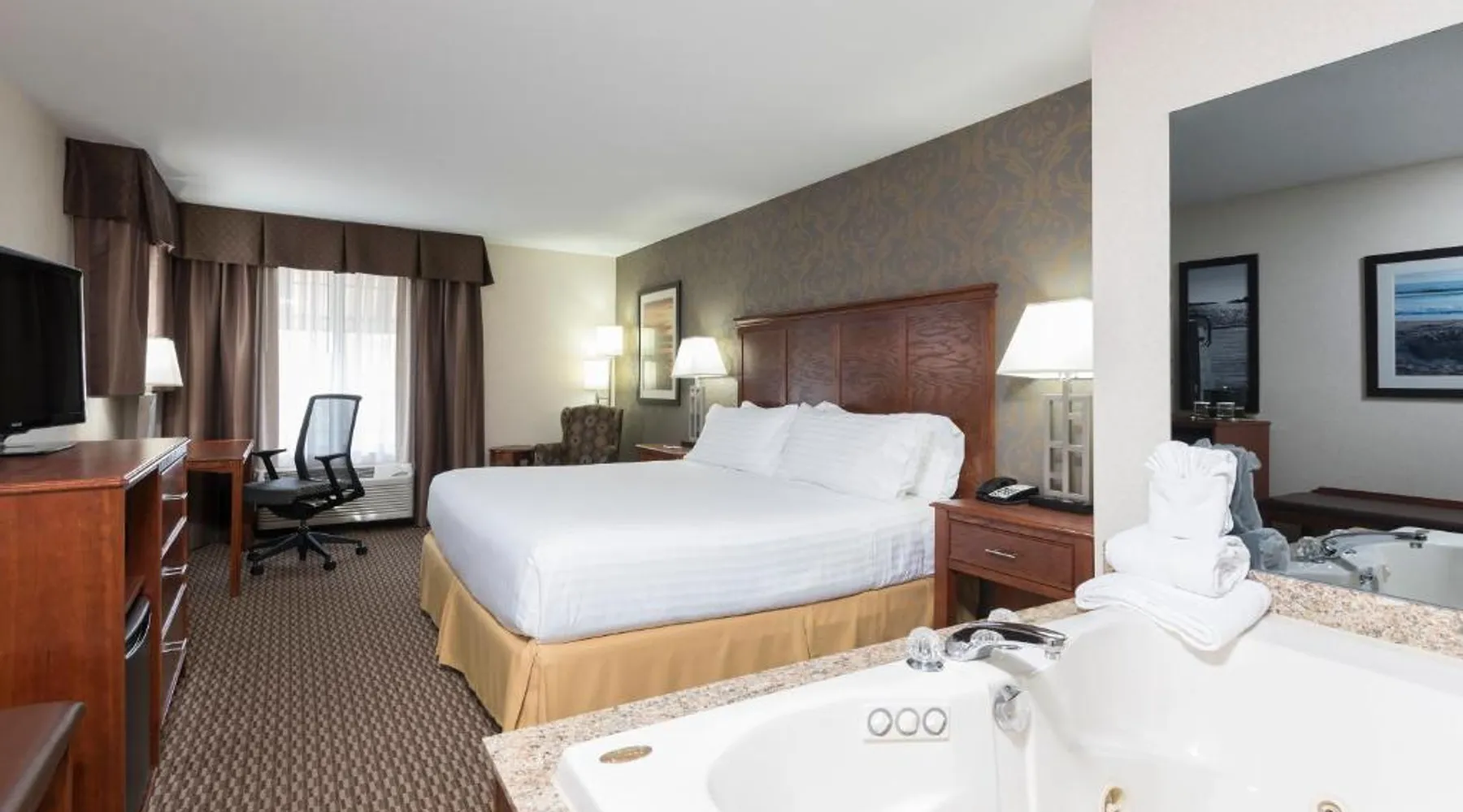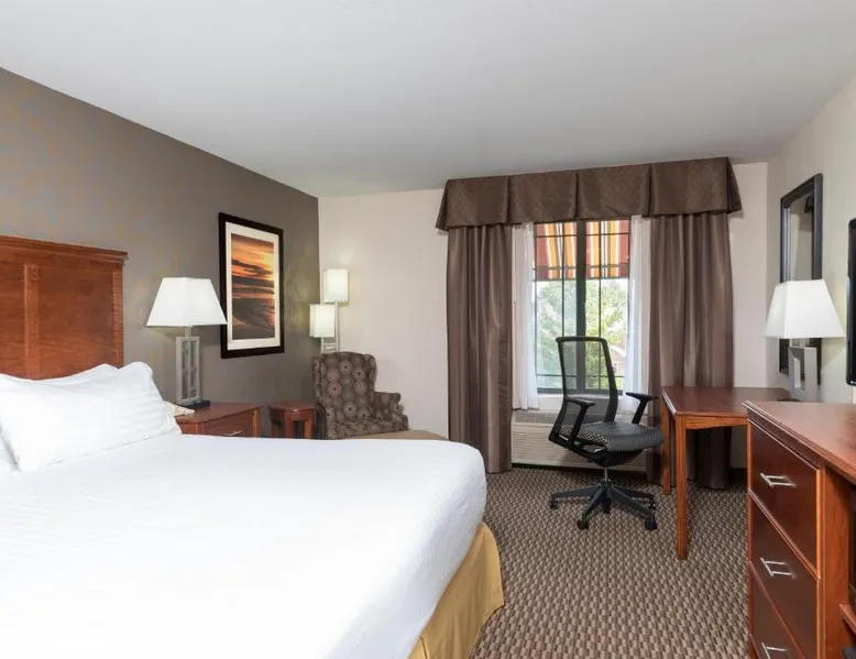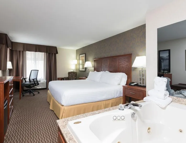 Just off Highway 31, a short drive from Lake Michigan beaches, this hotel in Holland, Michigan offers a free hot breakfast every morning and guestrooms with free wireless internet access. Holiday Inn Express Holland features an indoor pool and indoor/outdoor hot tub. Guests can play a game of pool in the game room or a game of basketball on the sports court. After a busy day, guests can relax on the outdoor patio or prepare a meal on the gas grill. All guestrooms at the Holland Holiday Inn Express offer microwaves and mini-refrigerators. After a restful night's sleep, guests can begin the day with a cup of coffee from the in-room coffeemaker. Boasting free Wi-Fi and a TV with cable channels, this room is equipped with tea and coffee-making facilities, a refrigerator and a microwave.