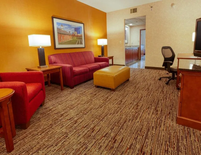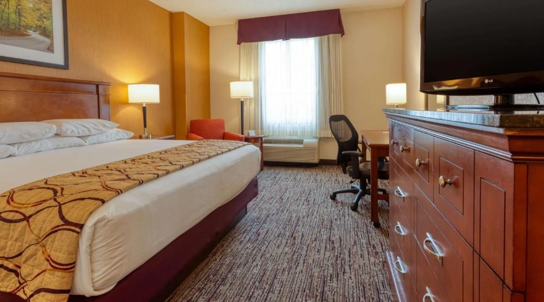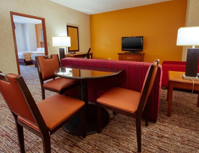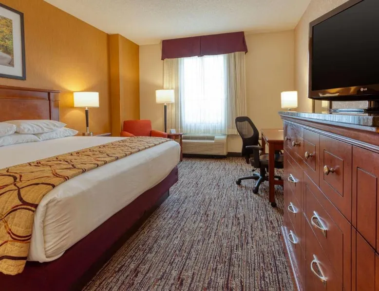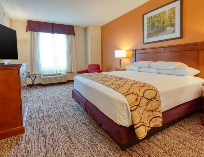 Offering free WiFi in every guest room, this hotel is 15 miles from the Indianapolis Motor Speedway. A hot breakfast with eggs and sausage is served daily. A flat-screen cable TV is included in every room at Drury Inn & Suites Indianapolis Northwest. For added convenience, a microwave and fridge are also provided. An indoor-outdoor pool is available at Indianapolis Northwest Drury Inn & Suites, along with a hot tub. Guests can make use of the launderette facilities and fitness center during their stay. Indianapolis International Airport is 19 miles away. Central Indianapolis can be reached in 20 minutes’ drive. A flat-screen cable TV is included in this room, along with a microwave and fridge.