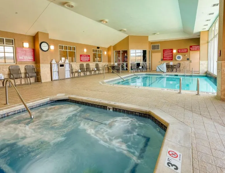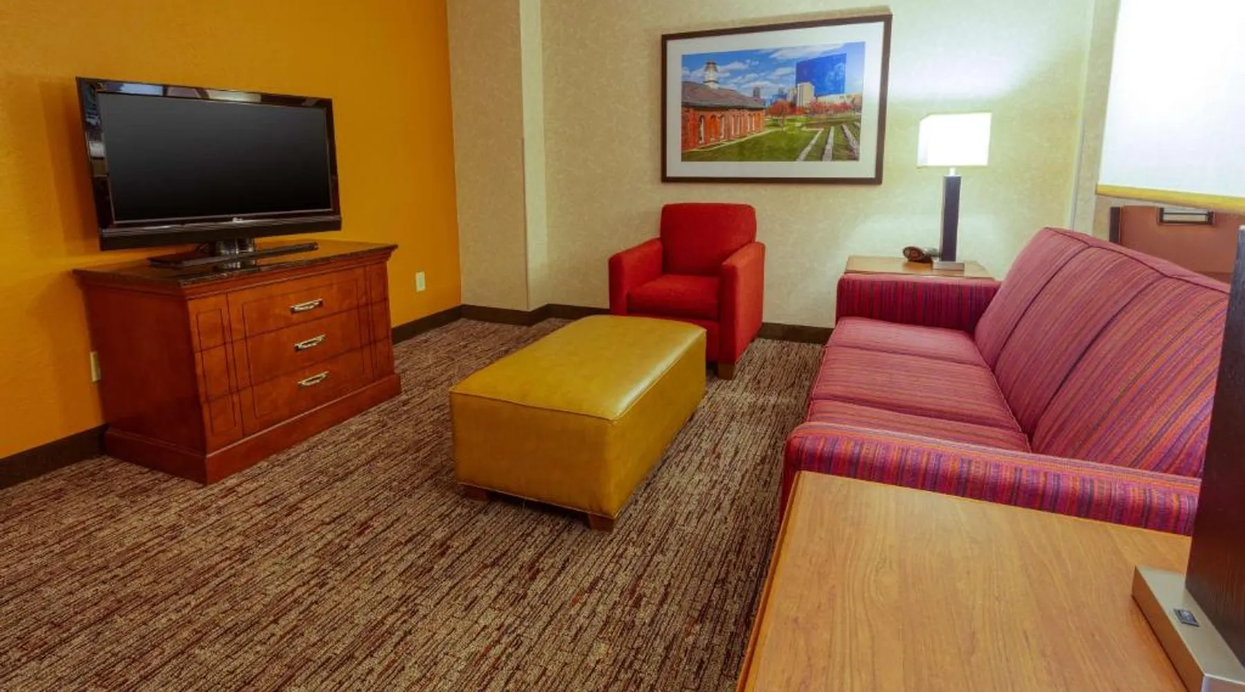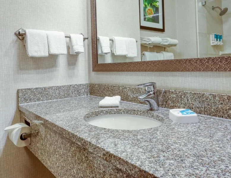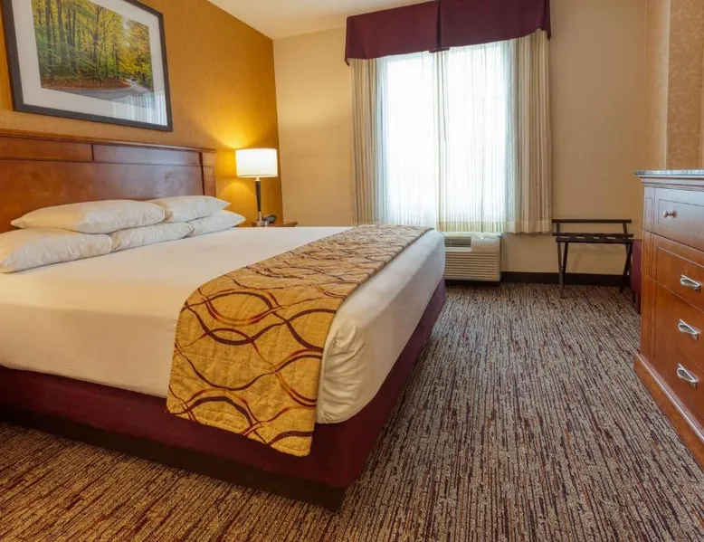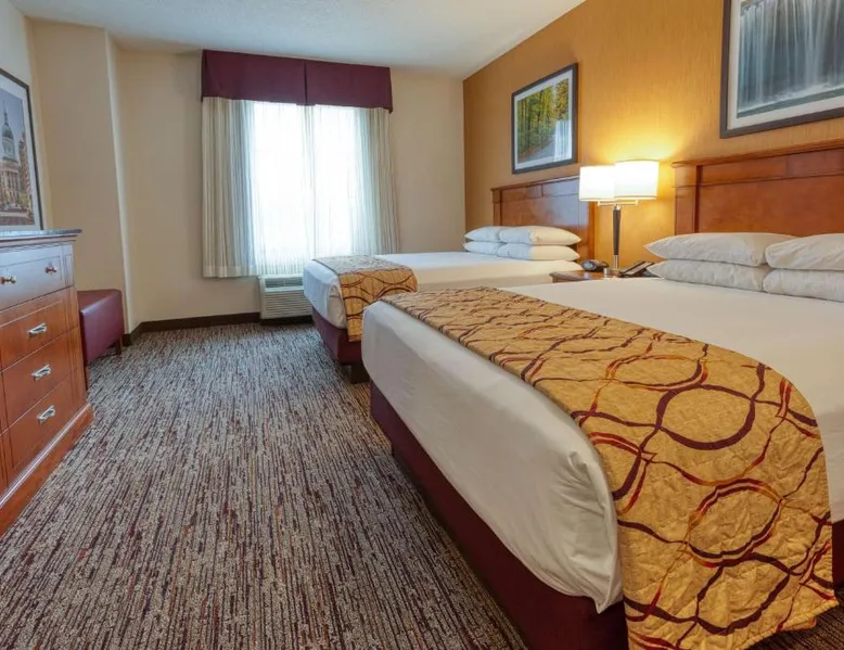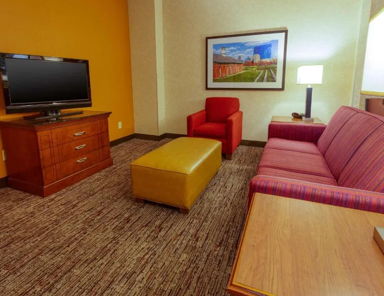 Offering free WiFi in every guest room, this hotel is 15 miles from the Indianapolis Motor Speedway. A hot breakfast with eggs and sausage is served daily. A flat-screen cable TV is included in every room at Drury Inn & Suites Indianapolis Northwest. For added convenience, a microwave and fridge are also provided. An indoor-outdoor pool is available at Indianapolis Northwest Drury Inn & Suites, along with a hot tub. Guests can make use of the launderette facilities and fitness center during their stay. Indianapolis International Airport is 19 miles away. Central Indianapolis can be reached in 20 minutes’ drive. A flat-screen cable TV is included in this room, along with a microwave and fridge.