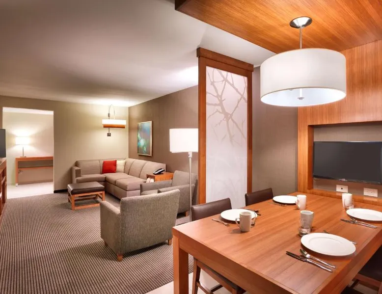 Featuring an outdoor swimming pool and a fitness center, Hyatt Place Salt Lake City/Lehi is set in Lehi, 1.6 mi from Thanksgiving Point. Among the various facilities of this property are a terrace and a shared lounge. The property provides a 24-hour front desk. The rooms is fitted with air conditioning, a flat-screen TV with satellite channels, a fridge, a coffee machine, a shower and a desk. Rooms are complete with a private bathroom, while certain units at the hotel also boast a seating area. All rooms include a wardrobe. Guests can dine in the in-house restaurant, which serves a variety of American dishes. Hyatt Place Salt Lake City/Lehi offers a hot tub. A selection of activities are offered in the area, such as skiing, cycling and fishing. Guests have access to the on-site business center and can check the newspapers or use the fax machine and photocopier. Provo Municipal Airport is 17 mi away, and the property offers a free shuttle service. This room features free WiFi, a separate seating area and a flat-screen cable TV. A private bathroom is also included.
