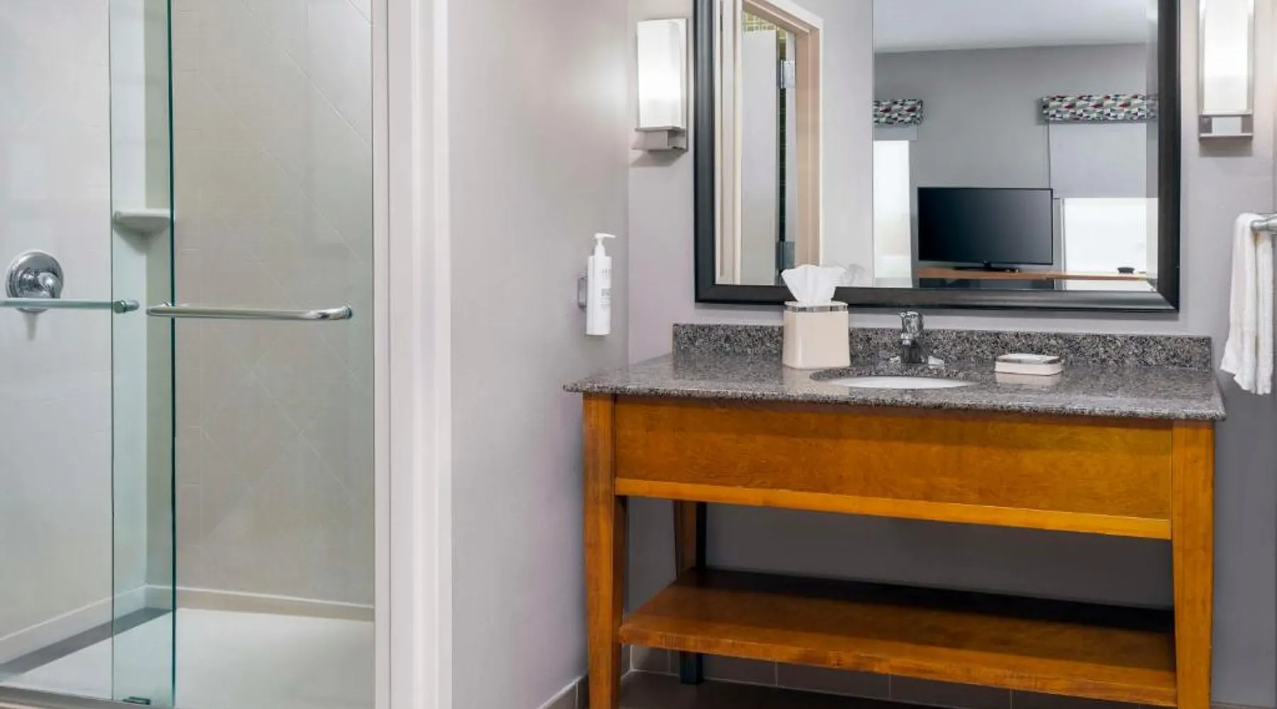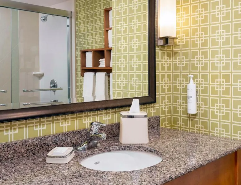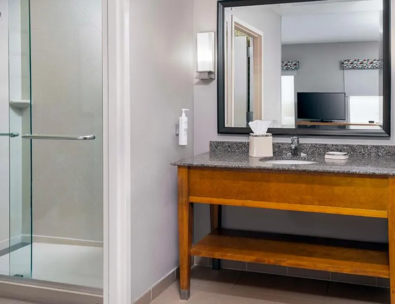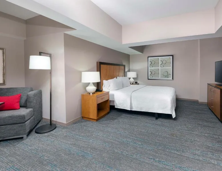 Offering an indoor pool and a fitness center, this Clayton hotel is 20 minutes’ drive from the St. Louis city center. Free WiFi access is available, and enjoy a complimentary breakfast buffet daily. A flat-screen cable TV is provided in every room at Hampton Inn and Suites Clayton/St. Louis-Galleria Area. There is also a coffee machine, microwave and fridge. At Clayton/St. Louis-Galleria Area Hampton Inn and Suites you will find a bar and a mini-market. Other facilities offered at the property include meeting facilities and luggage storage. The property offers parking on-site for $12 per day. Washington University is 1.9 mi away. Lambert- St.Louis International Airport is 6.2 mi away. This double room offers a tea and coffee maker and a flat-screen TV. The unit offers 1 bed.