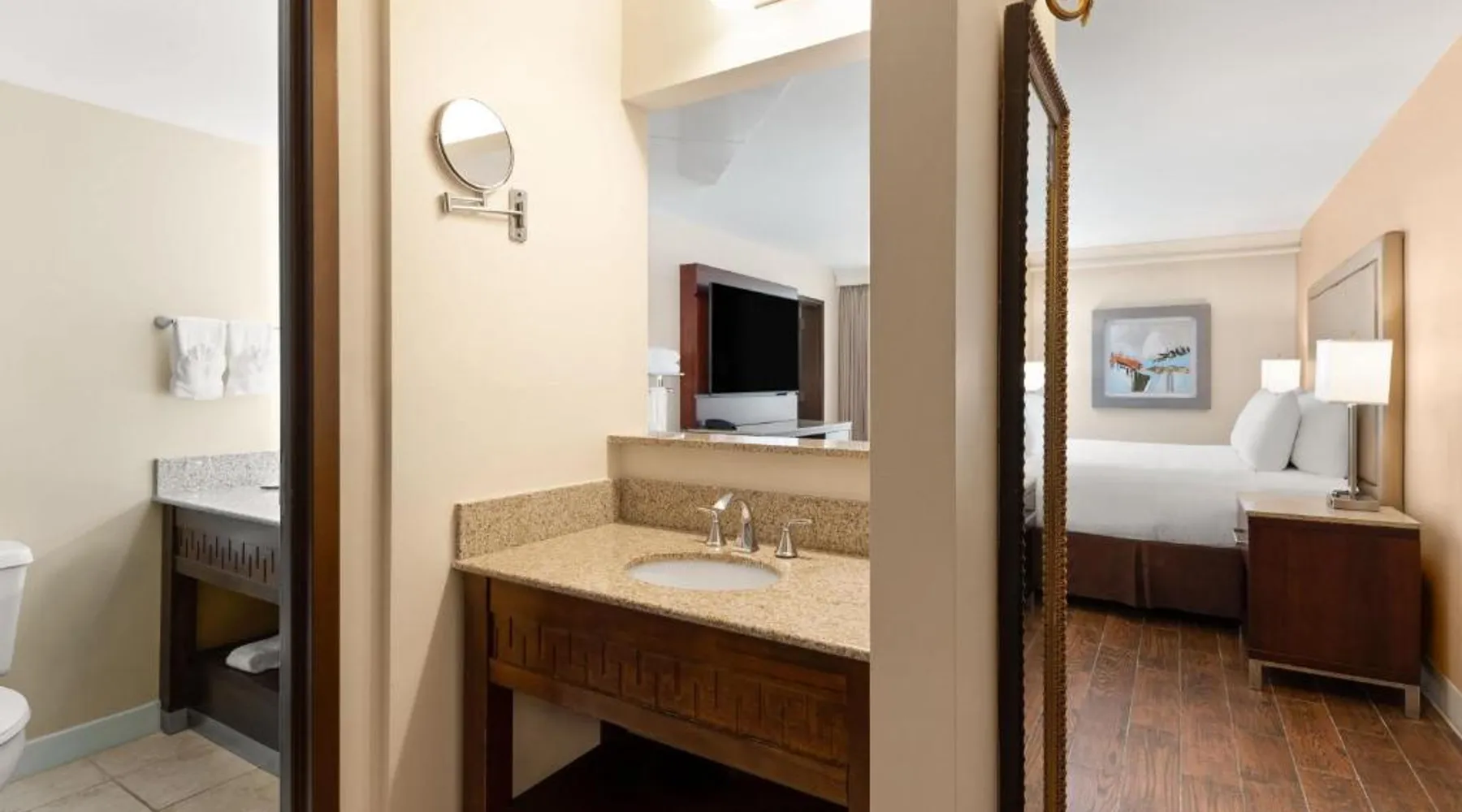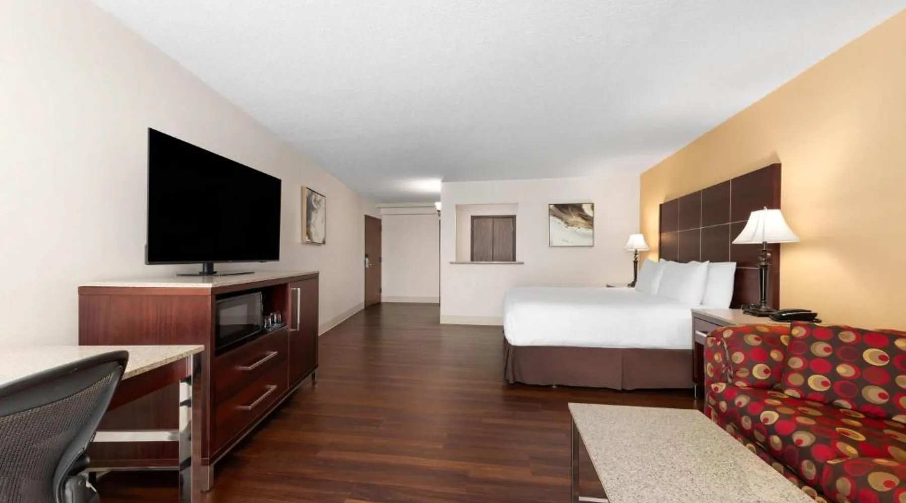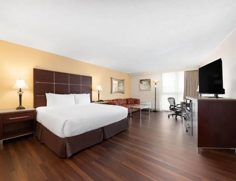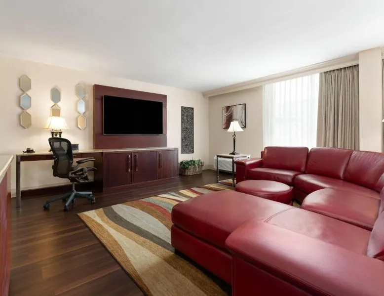 Overlooking the Arkansas River and Riverfront Park, this hotel features 2 restaurants and rooms equipped with small refrigerators. These spacious rooms feature a flat-screen TV and large work desk at the Wyndham Riverfront Hotel. The rooms are also equipped with plush white and brown bedding and coffee-making facilities. Guests can swim in the seasonal outdoor pool and work out in the fitness center. The hotel also features a business center. The Wyndham Riverfront features 2 restaurants. The Riverfront Steakhouse is open all day and provides a daily breakfast buffet. The Benihana Japanese Steakhouse is open for lunch and dinner. Both provide room service. The Wyndham is a 5-minute drive from shopping, dining and entertainment in downtown Little Rock The hotel is a 5-minute walk from Verizon Arena, a sports and entertainment venue. This triple room features a 55-inch flat screen TV, refrigerator and coffeemaker. A hair dryer, iron and ironing board are also provided in this air conditioned room.