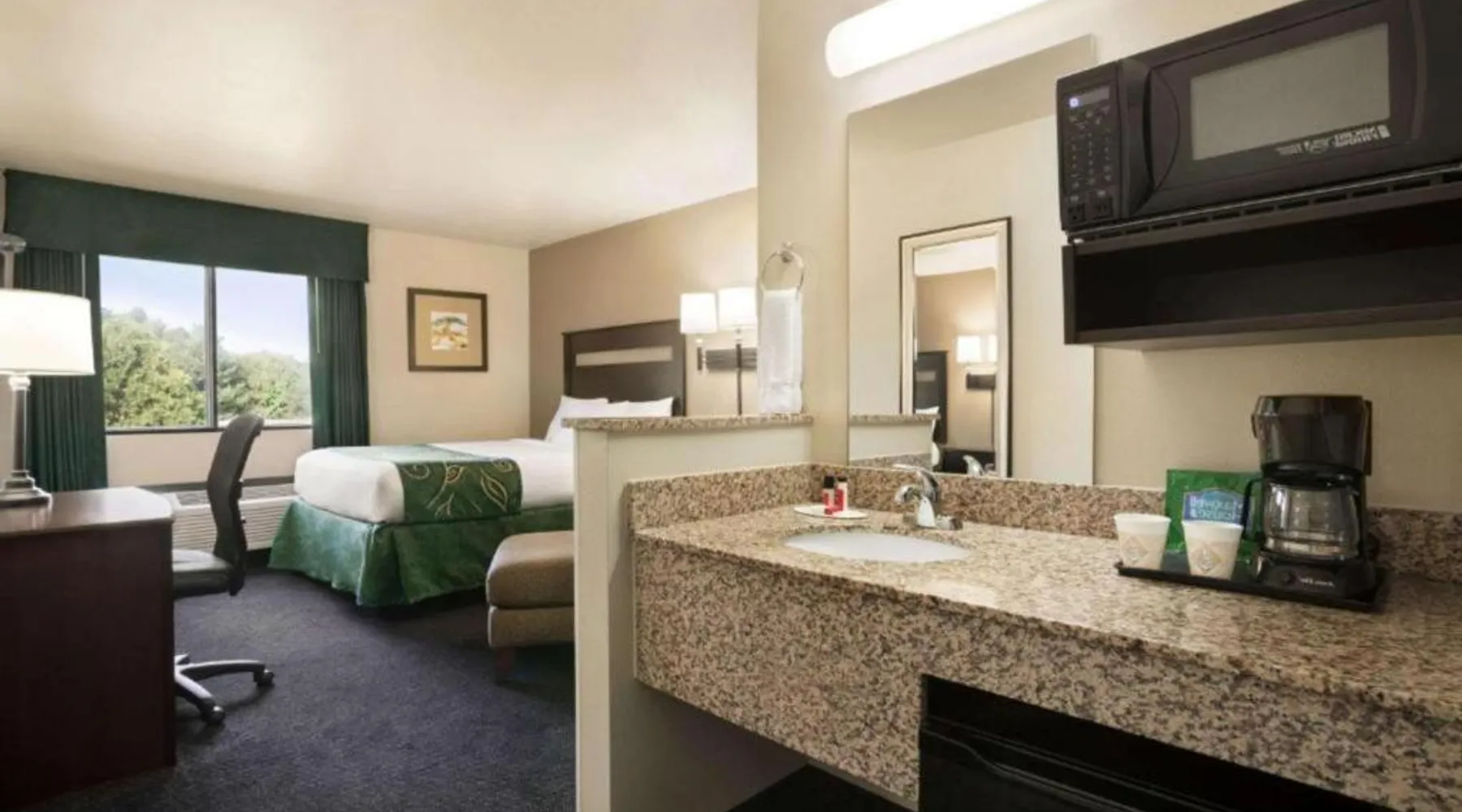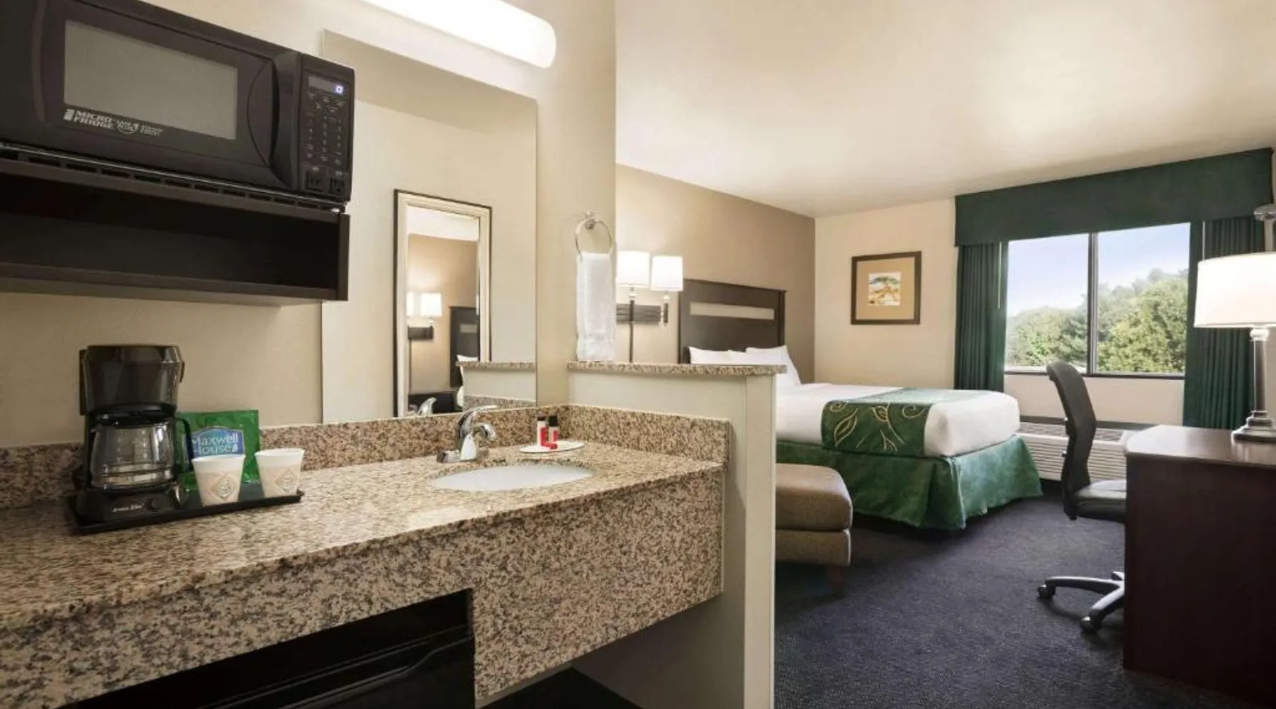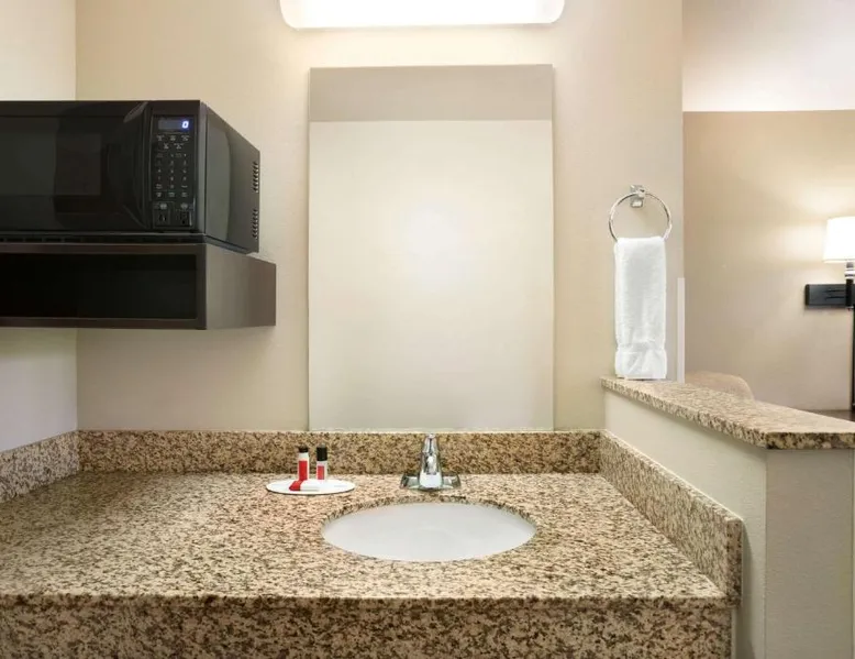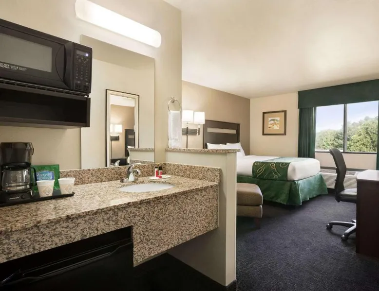 Comfortable Accommodations: Travelodge by Wyndham Brunswick near Fredrick in Brunswick offers clean rooms with air-conditioning, private bathrooms, and bath or shower facilities. Guests enjoy free WiFi, ensuring connectivity during their stay. Dining and Leisure: The hotel features an on-site restaurant serving American cuisine, a fitness center, and an outdoor seating area. Additional amenities include a 24-hour front desk and free on-site private parking. Convenient Location: Located 32 mi from Washington Dulles International Airport, the hotel is near attractions such as Harpers Ferry National Historical Park (9.3 mi), Appalachian Trail Conference Headquarters (12 mi), and Adventure Park Usa (25 mi). Guests appreciate the room cleanliness and convenient location. The triple room features air conditioning, as well as a private bathroom boasting a bath or a shower. The unit has 1 bed.