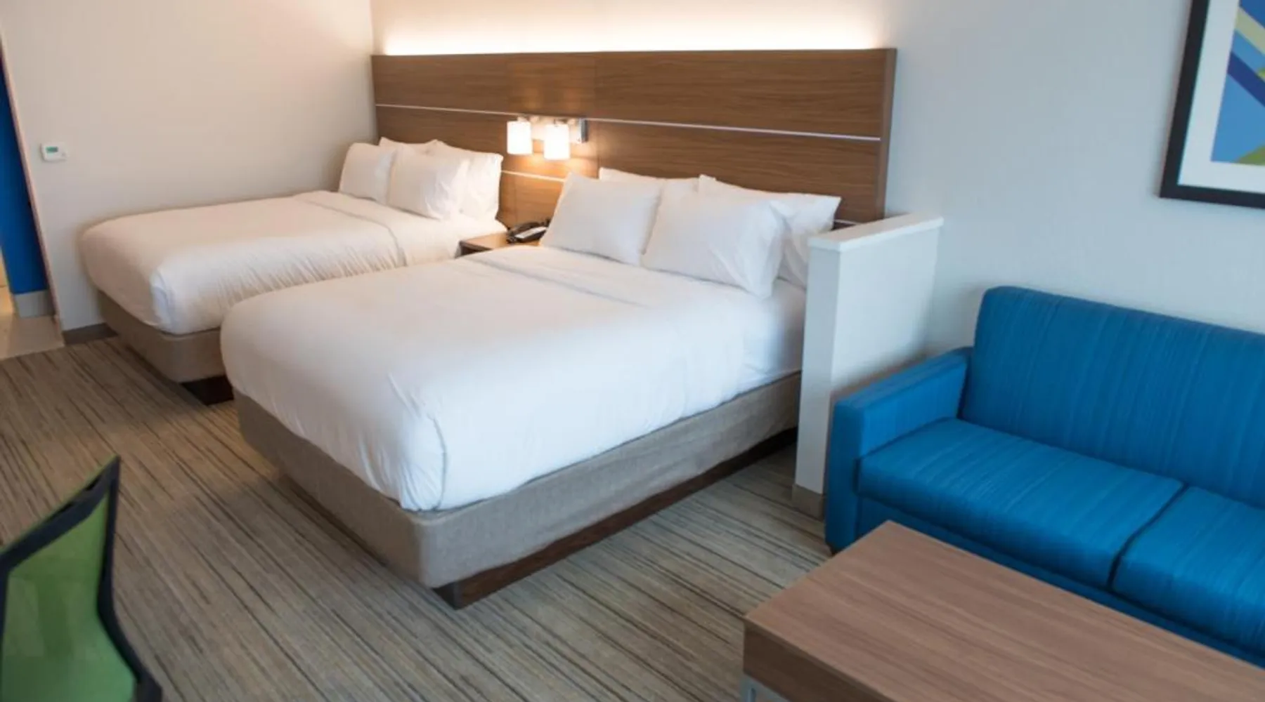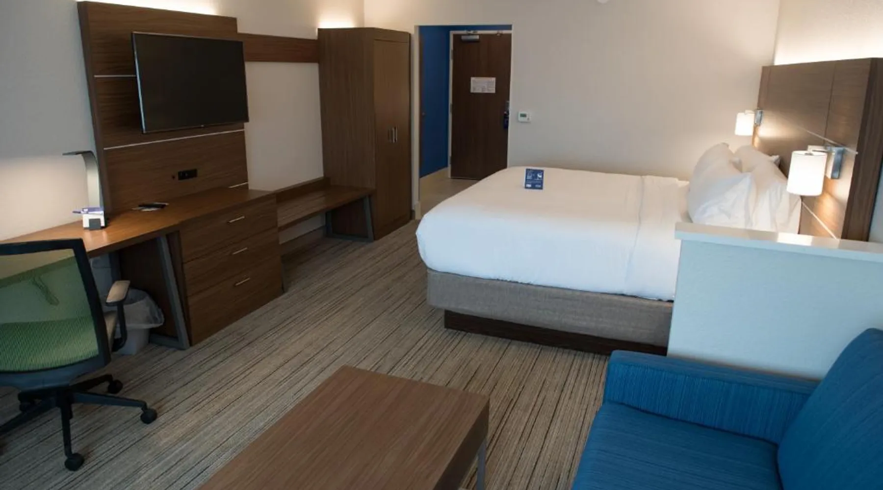 Comfortable Accommodations: Holiday Inn Express & Suites - Mishawaka - South Bend by IHG in Granger offers comfortable rooms with air-conditioning, private bathrooms, and free WiFi. Each room includes a work desk, TV, and complimentary toiletries. Exceptional Facilities: Guests can enjoy a fitness center, sun terrace, indoor swimming pool, and free on-site private parking. Additional amenities include a lounge, business area, and outdoor seating. Delicious Breakfast: A continental, American, or buffet breakfast is served daily, featuring warm dishes, fresh pastries, pancakes, cheese, fruits, and juice. Prime Location: Located 7.5 mi from South Bend Regional Airport, the hotel is near Noter Dame Stadium (4.3 mi), Bethel College (4.3 mi), and the University of Noter Dame (4.3 mi). Guests appreciate the convenient location, room cleanliness, and comfort. Offering free toiletries, this double room includes a private bathroom with a shower and a hairdryer. The spacious air-conditioned double room offers a flat-screen TV with cable channels, a seating area, a wardrobe and a safe deposit box.