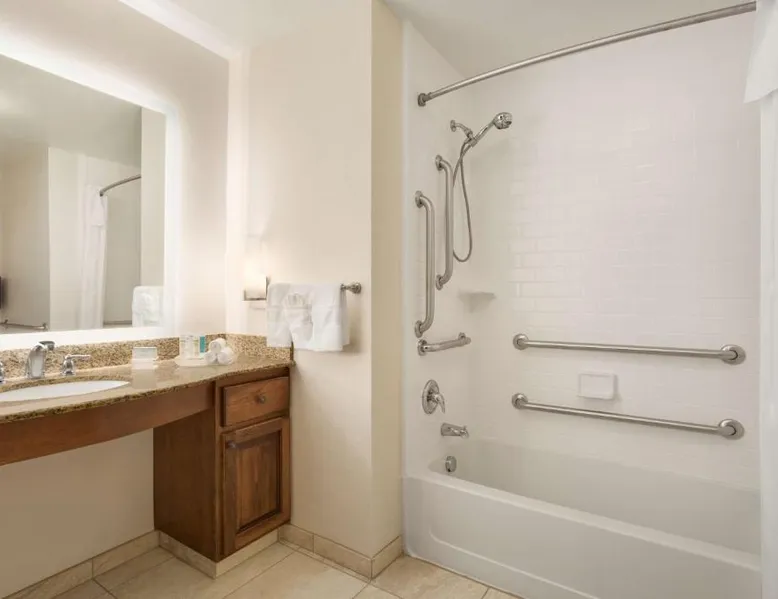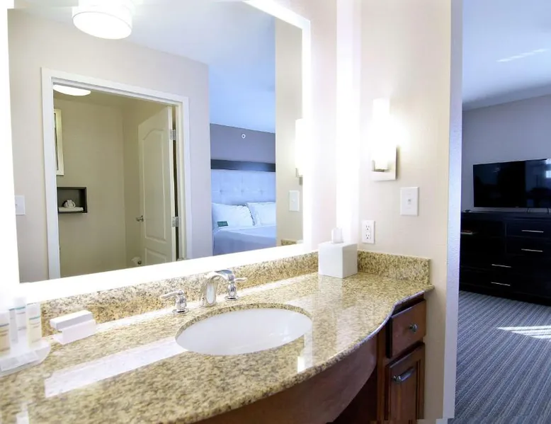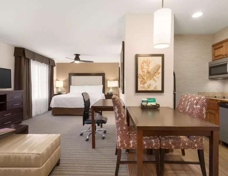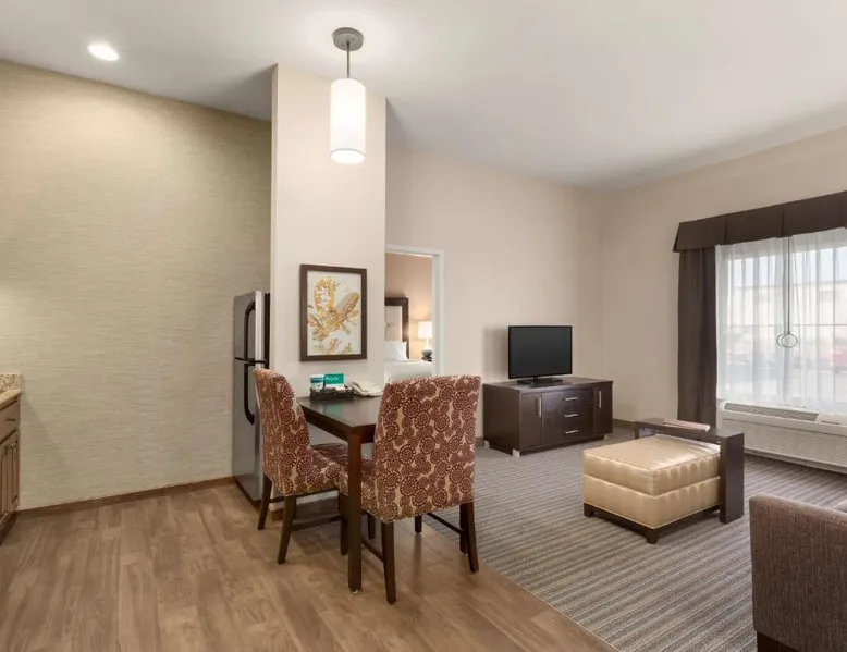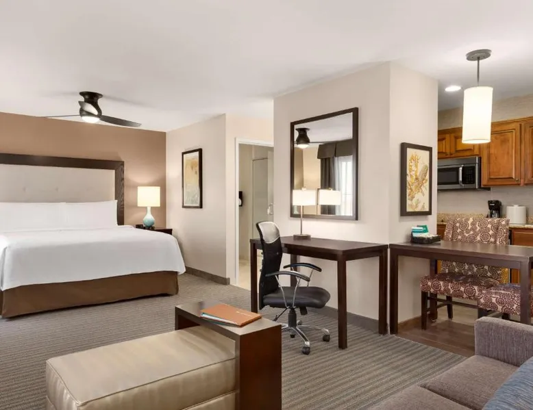 Comfortable Accommodations: Homewood Suites by Hilton Fargo in Fargo offers spacious rooms with air-conditioning, kitchen facilities, and free WiFi. Guests appreciate the room comfort, cleanliness, and size. Leisure Facilities: The hotel features a saltwater swimming pool, indoor pool, fitness center, and hot tub. Additional amenities include a 24-hour front desk, business area, and outdoor seating. Convenient Services: Free on-site parking, a free airport shuttle, and a daily housekeeping service enhance the stay. The property also offers a child-friendly buffet and luggage storage. Local Attractions: Located a few steps from Hector International Airport, the hotel is a 6-minute walk from FargoDome and 2.8 mi from Fargo Civic Center. An ice-skating rink is nearby. This suite features a separate bedroom and living area with a sofa bed.