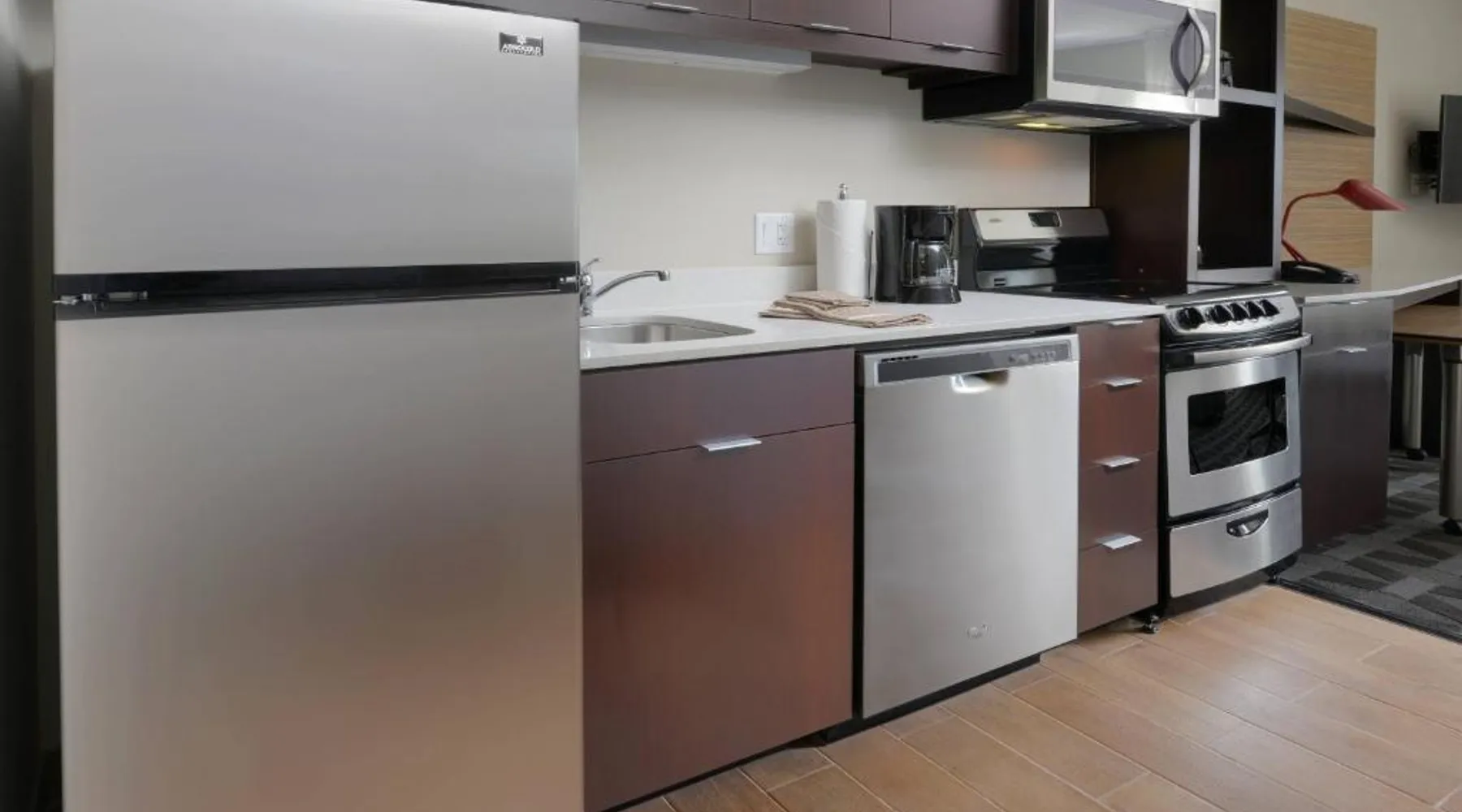 Comfortable Accommodations: Rooms feature air-conditioning, private bathrooms, and fully equipped kitchens. Guests enjoy free WiFi, streaming services, and modern amenities such as dishwashers and microwaves. Leisure Facilities: The hotel offers a saltwater swimming pool, indoor pool, fitness center, and terrace. Free bicycles are available for exploring the area. Dining Options: A variety of breakfast options are provided, including continental, American, and buffet. Guests can also enjoy a child-friendly buffet and outdoor seating areas. Convenient Location: Located in Lone Tree, the hotel is 24 mi from Denver International Airport. Nearby attractions include the Denver Museum of Nature and Science (17 mi) and Red Rocks Park and Amphitheater (29 mi). The fully equipped kitchen features a stovetop, a refrigerator, a dishwasher and kitchenware. This air-conditioned studio includes a flat-screen TV with streaming services and a private bathroom. The unit offers 1 bed.