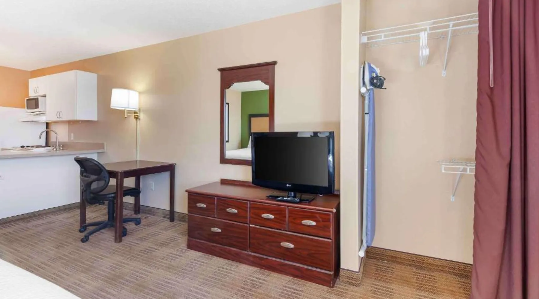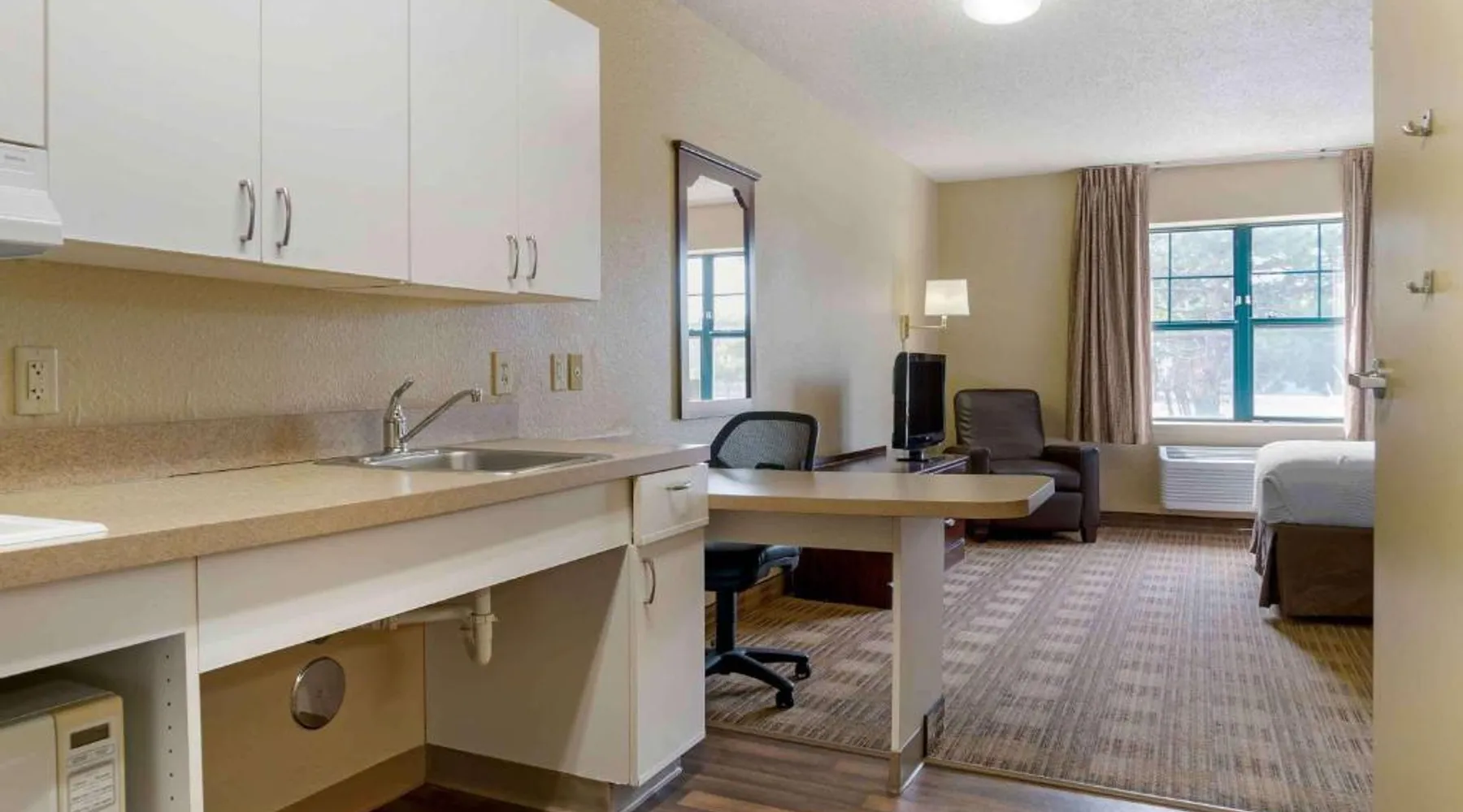 Comfortable Accommodations: Extended Stay America Select Suites - Appleton - Fox Cities in Appleton offers family rooms with air-conditioning, private bathrooms, and fully equipped kitchens. Each room includes a work desk, TV, and free toiletries. Essential Facilities: Guests enjoy free WiFi, a elevator, and a picnic area. Free on-site private parking is available, ensuring convenience for all visitors. Convenient Location: Located 2.5 mi from Outagamie County Regional Airport and Fox Cities Stadium, the hotel is near attractions such as The History Museum at the Castle (4.3 mi) and Lawrence University (4.3 mi). Guest Favorites: Visitors appreciate the value for money, convenient location, and suitability for city trips. 2 Double beds, kitchen, dining and work area, non-smoking
