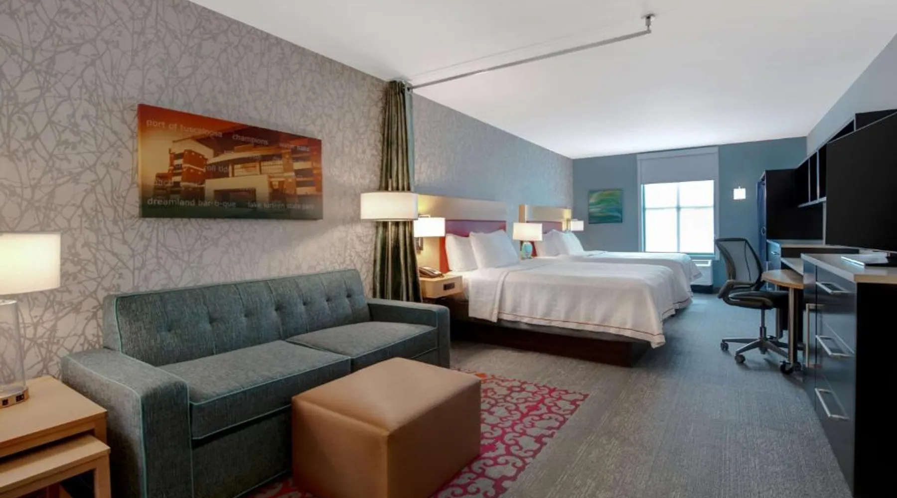 Comfortable Accommodations: Home2 Suites by Hilton Tuscaloosa Downtown University Boulevard in Tuscaloosa offers spacious rooms with air-conditioning, kitchen facilities, and free WiFi. Each room includes a sofa bed, work desk, and free toiletries. Leisure and Wellness: Guests can enjoy a fitness center, indoor swimming pool, and terrace. Additional amenities include a lounge, outdoor fireplace, and barbecue facilities. The property also features a minimarket, child-friendly buffet, and business area. Convenient Location: Located 61 mi from Birmingham-Shuttlesworth International Airport, the hotel is a 9-minute walk from Tuscaloosa Amphitheater. Nearby attractions include University of Alabama (1.6 mi) and Bryant Denny Stadium (1.9 mi). Guests appreciate the convenient location and breakfast provided by the property. This studio has a small refrigerator, microwave, and kitchenware as well as a dishwasher. A 42-inch flat-screen cable TV is also included.