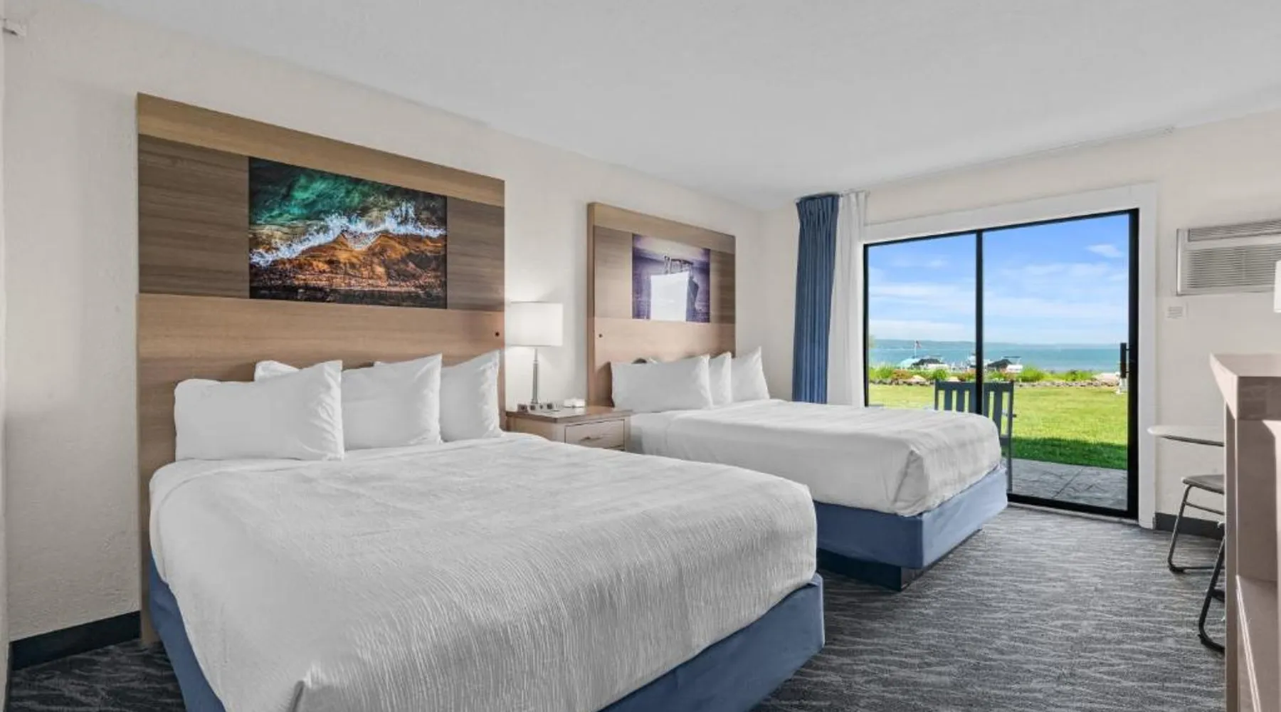 Just off the shores of Traverse Bay, this bay-side hotel features a private 200-foot sugar sand beach. Most guest rooms include a patio or balcony overlooking the bay. A 55-inch flat-screen TV and free WiFi are offered in each room at The Beach Haus Traverse City. Select rooms includes a refrigerator, microwave and coffee maker. Air-conditioning is also provided in every guest room. Guests can relax on the manicured lawn and private beach or enjoy a meal in the picnic area at Traverse City Beach Haus. Laundry facilities is also available on site. Central Traverse City is less 4 miles from this lakefront hotel. Chateau Grand Traverse Winery and Turtle Creek Casino are within 15 minutes’ drive from the property. This room includes a 55-inch flat-screen TV, refrigerator, microwave and coffee machine. It offers access to our private sugar sand beach frontage on East Grand Traverse Bay. This room is on the 2nd floor and is only accessible by stairs.
