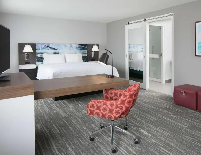 Comfortable Accommodations: Hampton Inn By Hilton Wichita Northwest in Wichita offers comfortable rooms with free WiFi, air-conditioning, and modern amenities. Guests enjoy a fitness room, indoor swimming pool, and outdoor seating area. Convenient Facilities: The hotel provides a 24-hour front desk, minimarket, daily housekeeping, luggage storage, and free on-site parking. Additional amenities include a elevator, refrigerator, tea and coffee maker, hairdryer, sofa bed, seating area, free toiletries, microwave, and TV. Delicious Breakfast: A continental, American, or buffet breakfast is served with fresh pastries, cheese, and fruits. Guests appreciate the quality and variety of the breakfast offerings. Prime Location: Located 6.2 mi from Wichita Dwight D. Eisenhower National Airport, the hotel is near Century II Convention Center (8.7 mi), Entrust Bank ARENA (9.3 mi), Wichita State University - Cessna Stadium (13 mi), and All Star Adventures (18 mi). This studio has a tea and coffee maker, a seating area and a flat-screen TV. The unit has 2 beds.