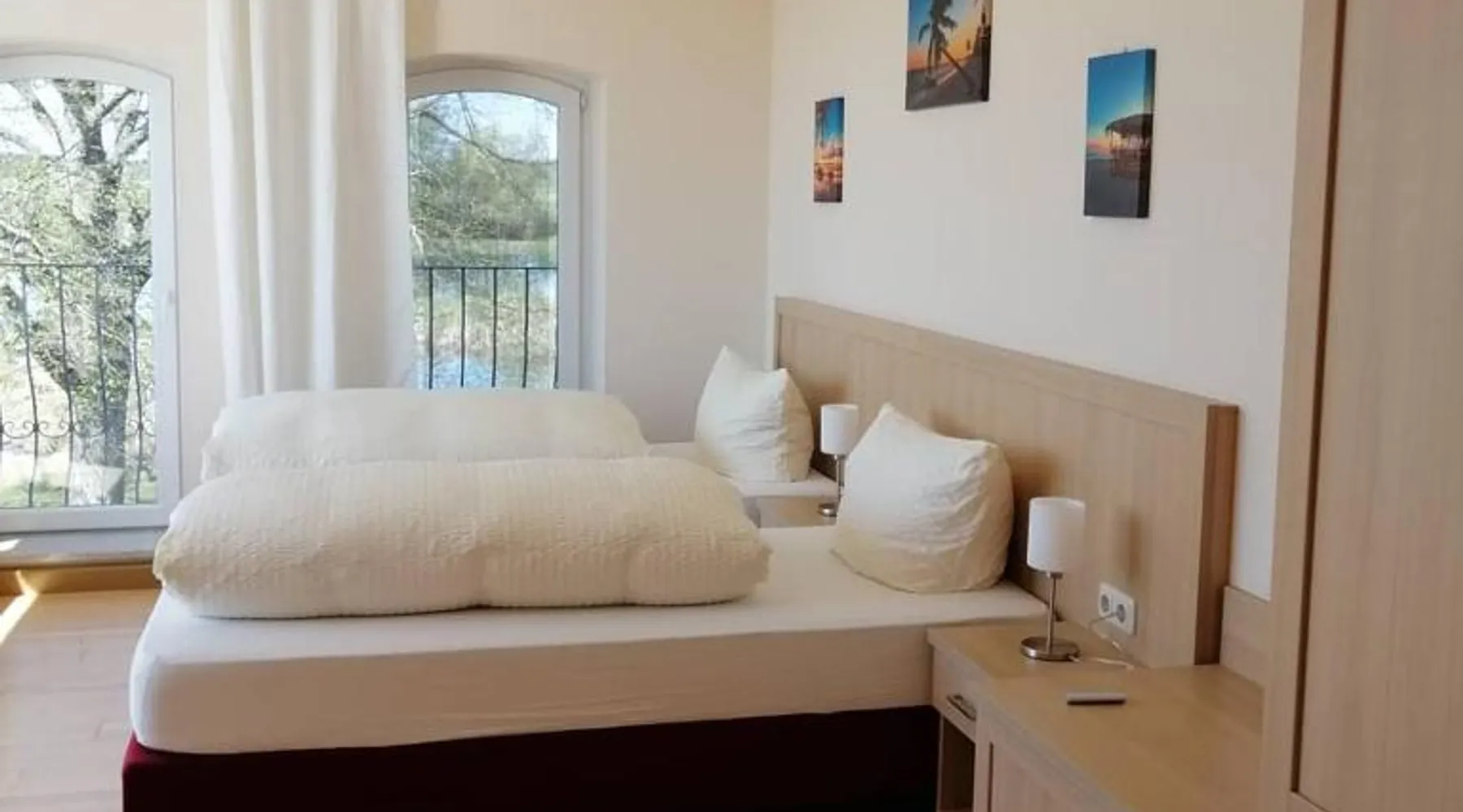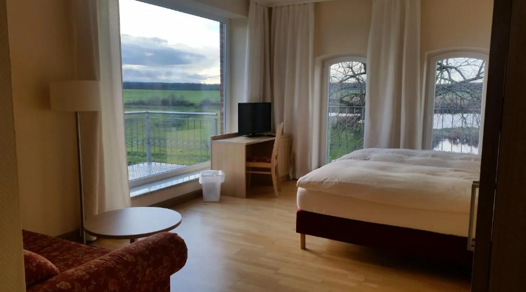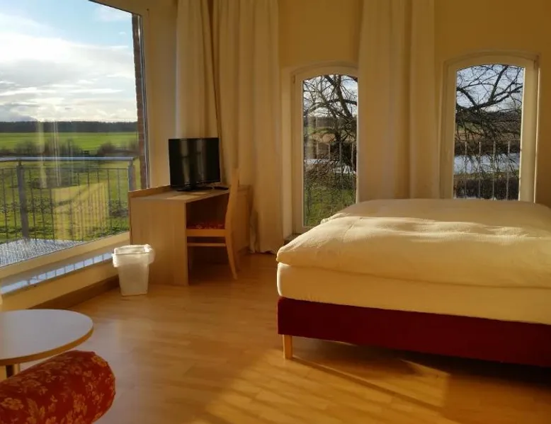 Comfortable Accommodations: Landhotel Kreien in Kreien offers private bathrooms with showers and TVs. Each room includes a work desk, sofa, and parquet floors. Ground-floor units feature inner courtyard views. Leisure Facilities: Guests can relax on the terrace with lake views or enjoy the private beach area. The property includes spa facilities, an outdoor fireplace, and a bar. Free on-site private parking is available. Dining Experience: A buffet breakfast is served in-room, featuring juice, cheese, and fruits. Special diet menus are available. The child-friendly buffet caters to younger guests. Activities and Attractions: Located 57 mi from Rostock-Laage Airport and 25 mi from Fleesensee, the hotel offers hiking, cycling, diving, and snorkeling. Guests appreciate the quietness of the area and the convenient location for nature trips. The double room features heating, as well as a private bathroom featuring a shower. The double room provides a wardrobe, a sofa, parquet floors, a flat-screen TV, as well as lake views. The unit offers 1 bed.