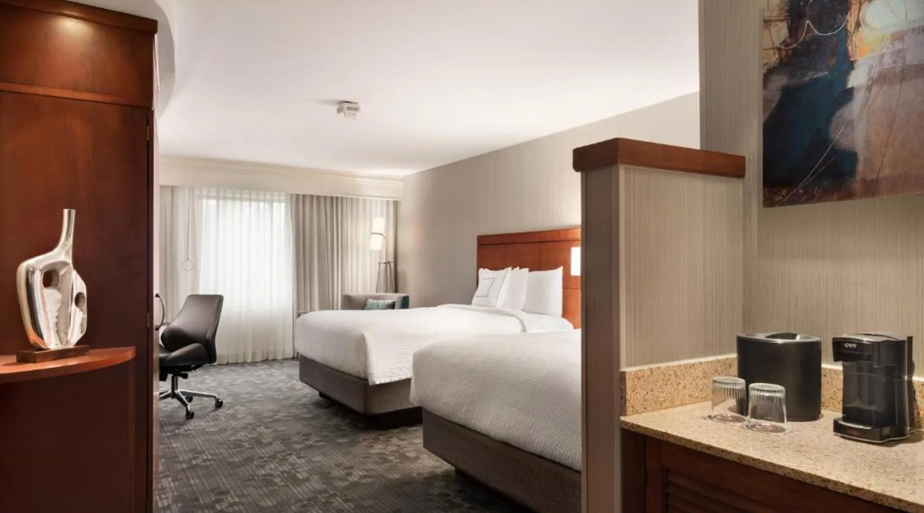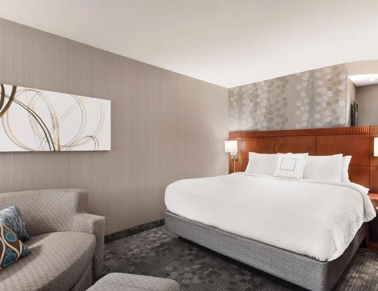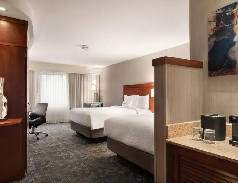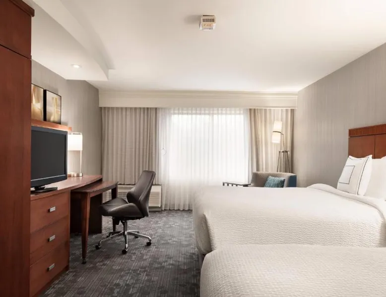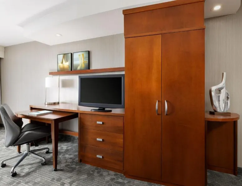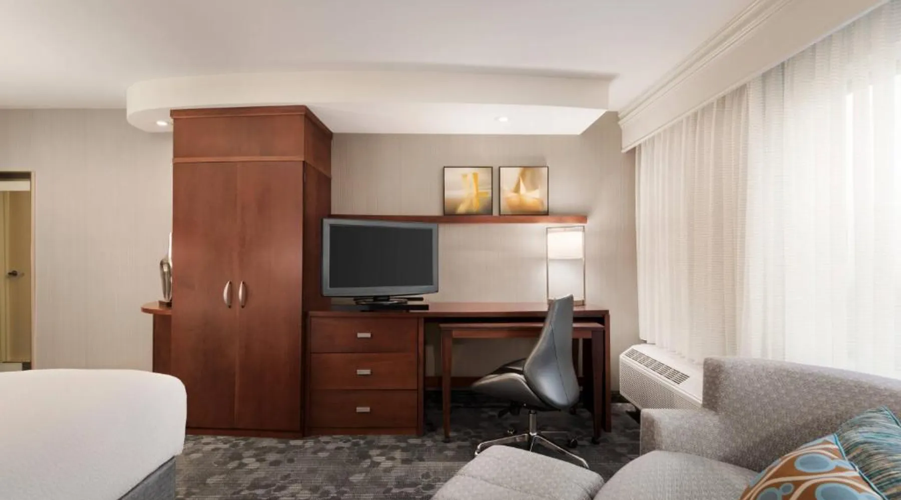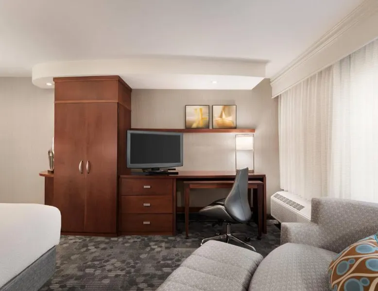 Comfortable Accommodations: Courtyard by Marriott Potomac Mills Woodbridge in Woodbridge offers family rooms with air-conditioning, private bathrooms, and free WiFi. Each room includes a work desk, refrigerator, and TV. Dining and Leisure: Guests can enjoy an on-site restaurant serving American cuisine for dinner and a bar. The hotel features a fitness center, terrace, outdoor fireplace, and outdoor seating area. Convenient Location: Located 24 mi from Ronald Reagan Washington National Airport, the hotel is near attractions such as Huntley Meadows Park (16 mi) and Old Town Waterfront (21 mi). Guests appreciate the convenient location and room comfort. This room features cable TV and a work desk. A sofa bed is also included.