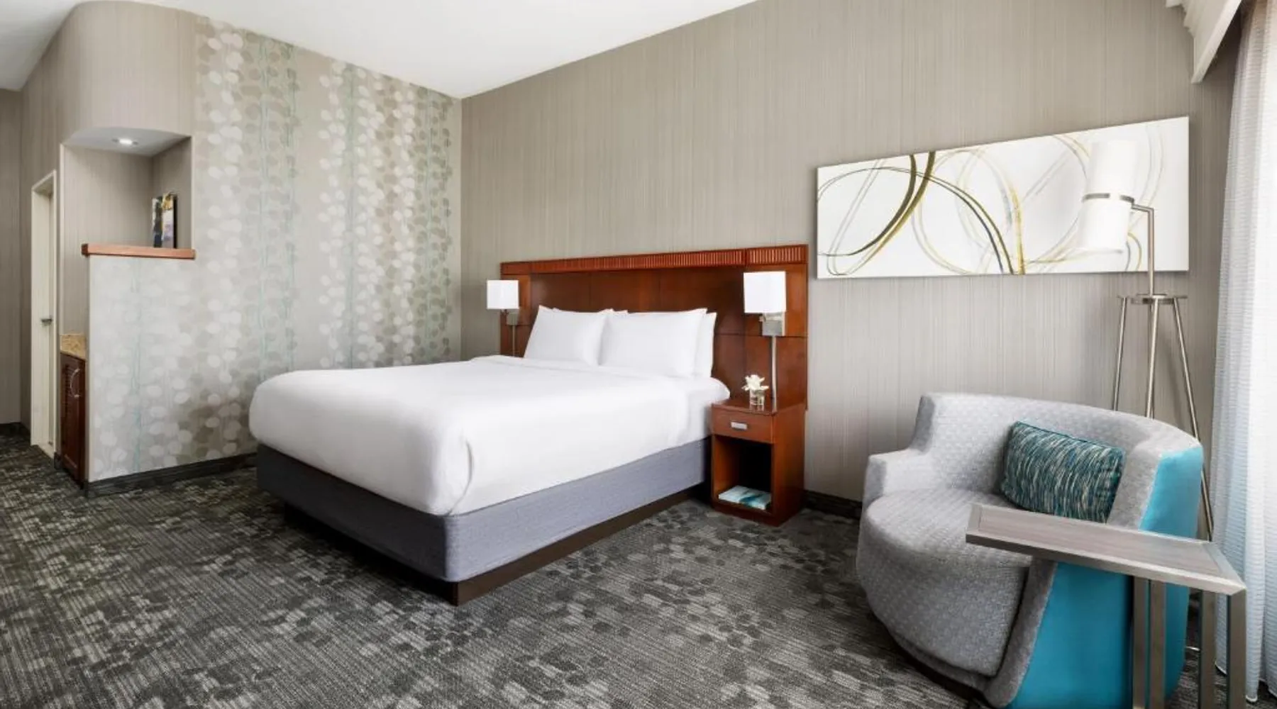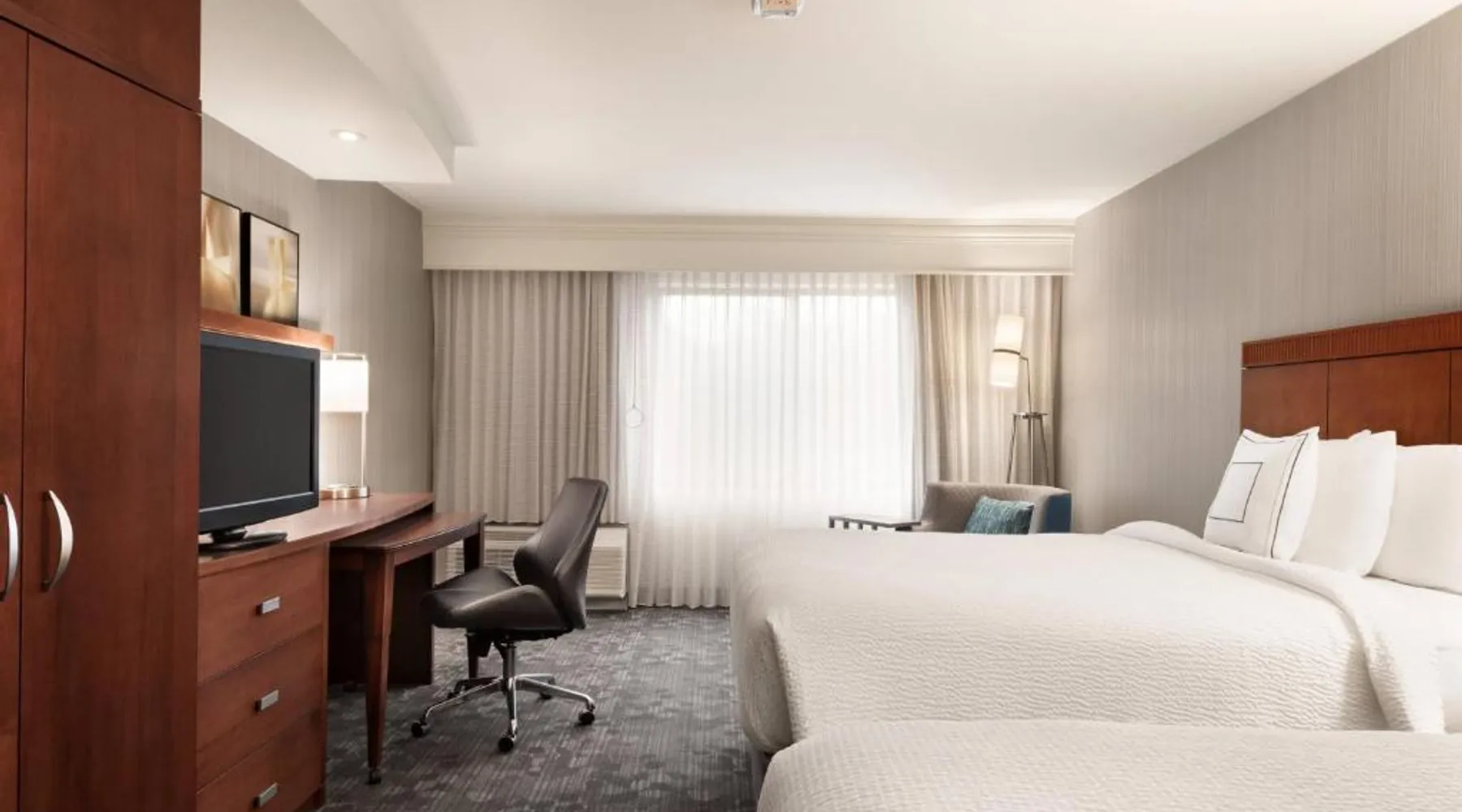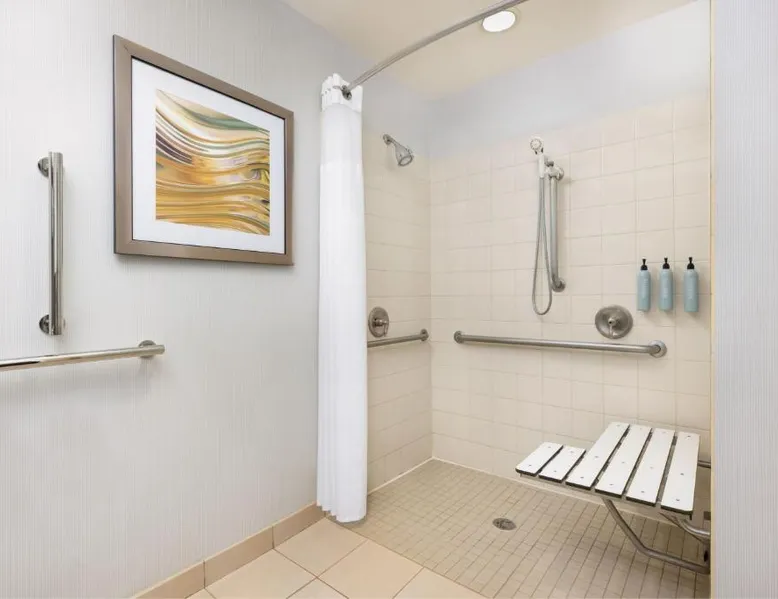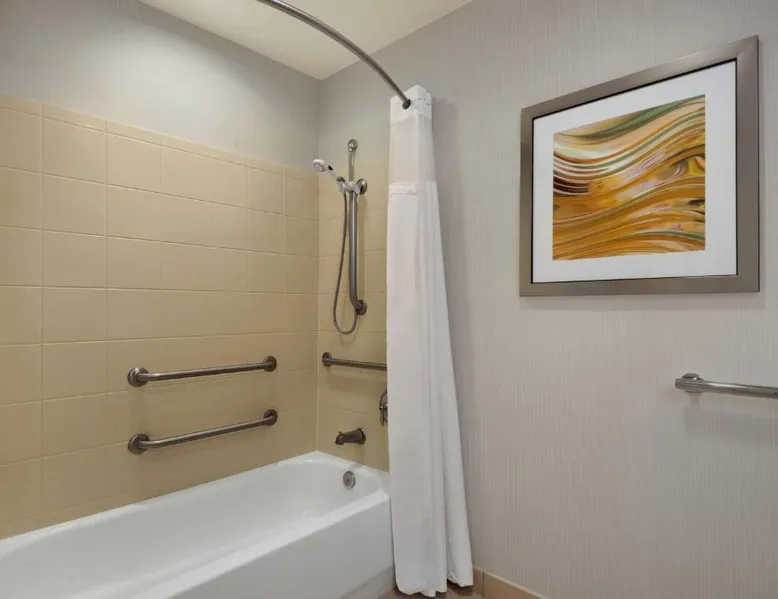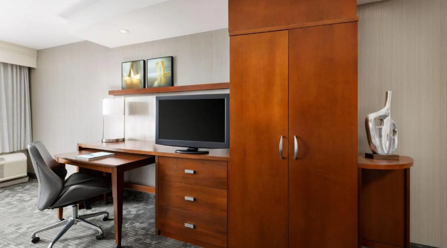 Comfortable Accommodations: Courtyard by Marriott Potomac Mills Woodbridge in Woodbridge offers family rooms with air-conditioning, private bathrooms, and free WiFi. Each room includes a work desk, refrigerator, and TV. Dining and Leisure: Guests can enjoy an on-site restaurant serving American cuisine for dinner and a bar. The hotel features a fitness center, terrace, outdoor fireplace, and outdoor seating area. Convenient Location: Located 24 mi from Ronald Reagan Washington National Airport, the hotel is near attractions such as Huntley Meadows Park (16 mi) and Old Town Waterfront (21 mi). Guests appreciate the convenient location and room comfort. This room features cable TV and a work desk. A sofa bed is also included.