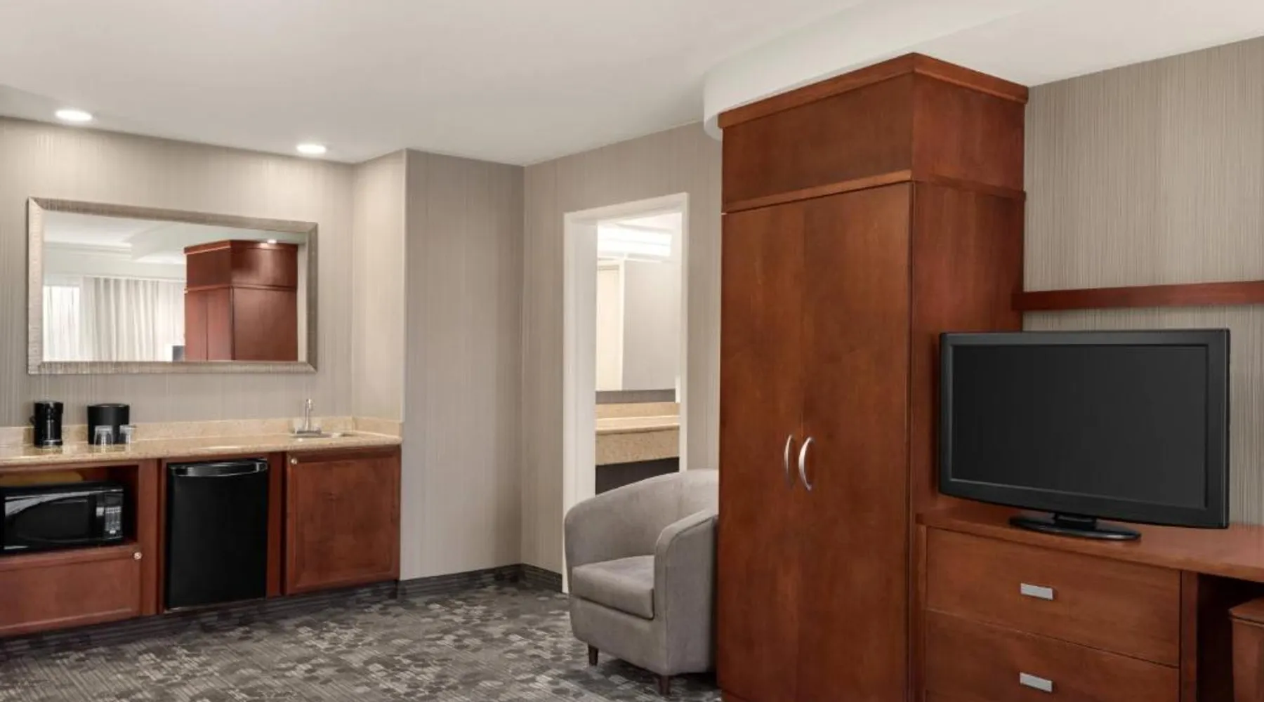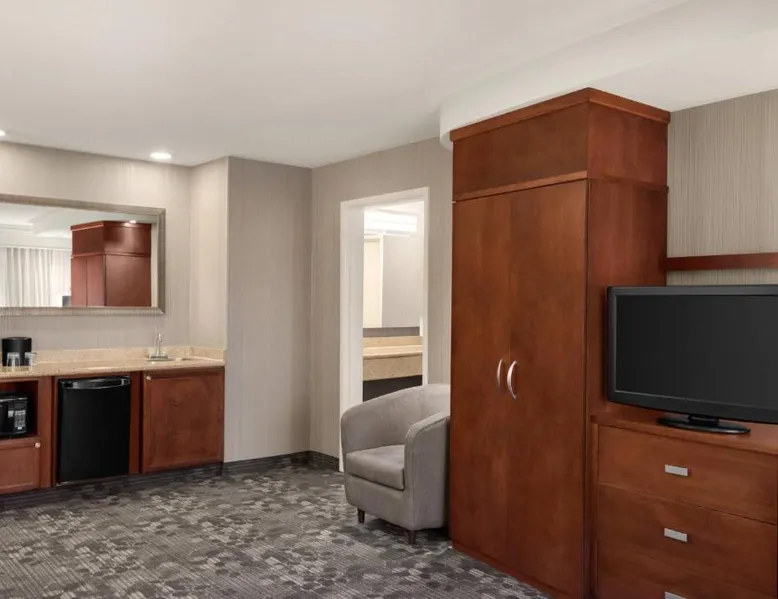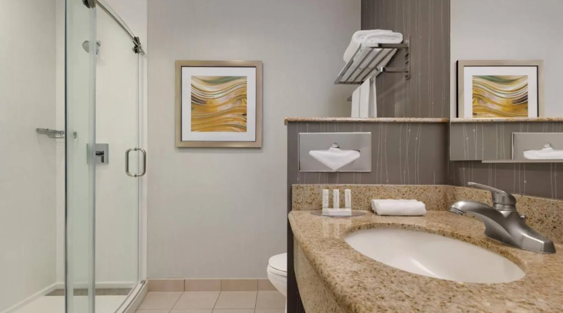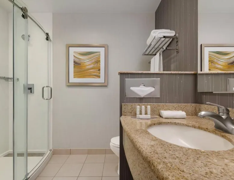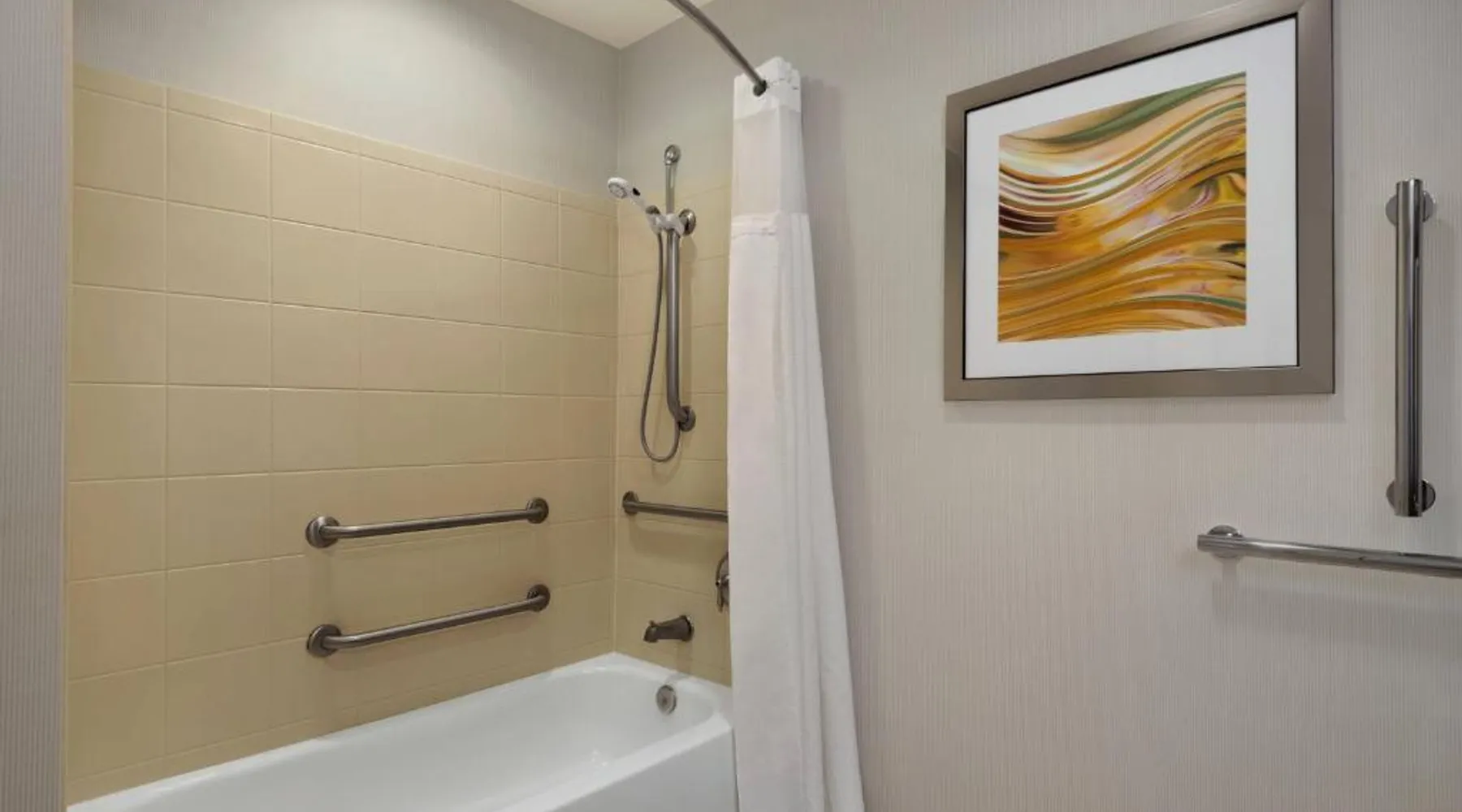 Comfortable Accommodations: Courtyard by Marriott Potomac Mills Woodbridge in Woodbridge offers family rooms with air-conditioning, private bathrooms, and free WiFi. Each room includes a work desk, refrigerator, and TV. Dining and Leisure: Guests can enjoy an on-site restaurant serving American cuisine for dinner and a bar. The hotel features a fitness center, terrace, outdoor fireplace, and outdoor seating area. Convenient Location: Located 24 mi from Ronald Reagan Washington National Airport, the hotel is near attractions such as Huntley Meadows Park (16 mi) and Old Town Waterfront (21 mi). Guests appreciate the convenient location and room comfort. This room features cable TV and a work desk. A sofa bed is also included.