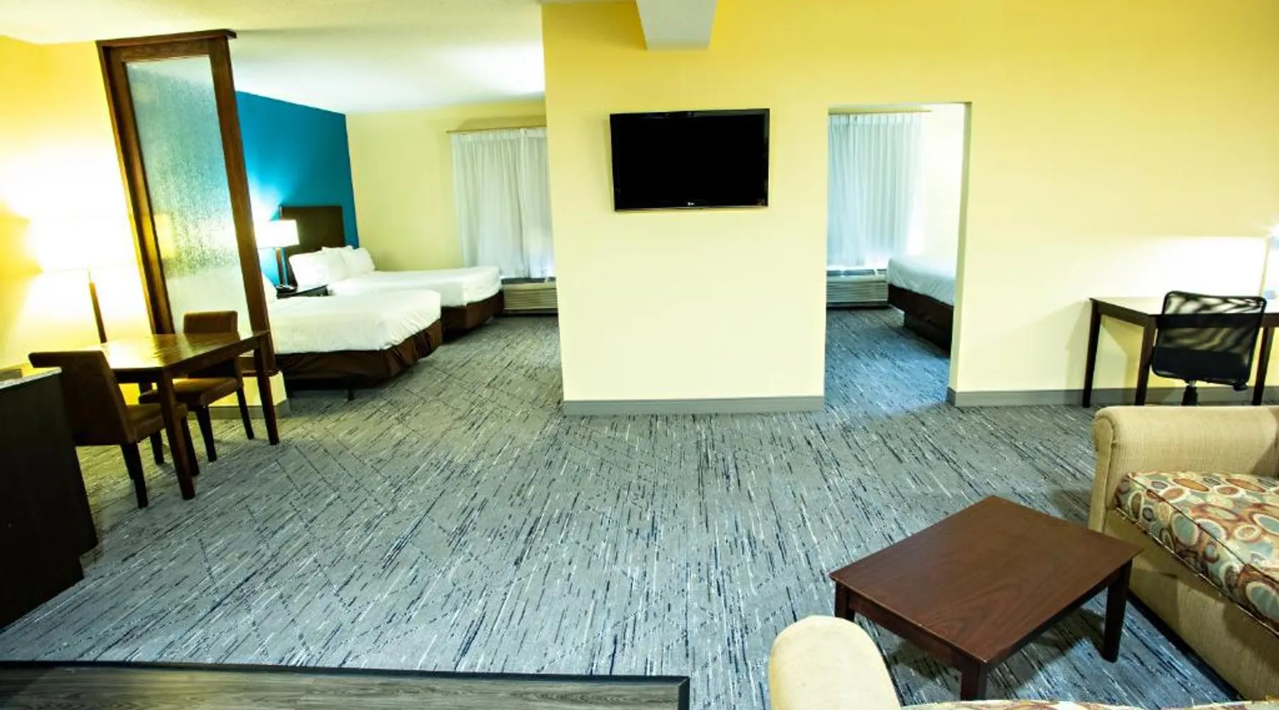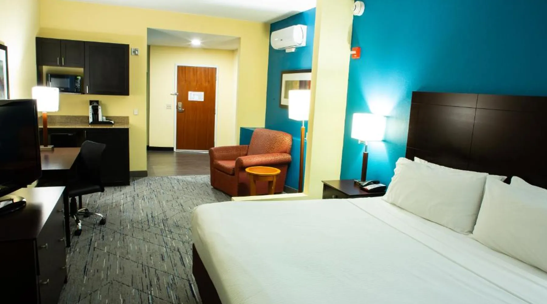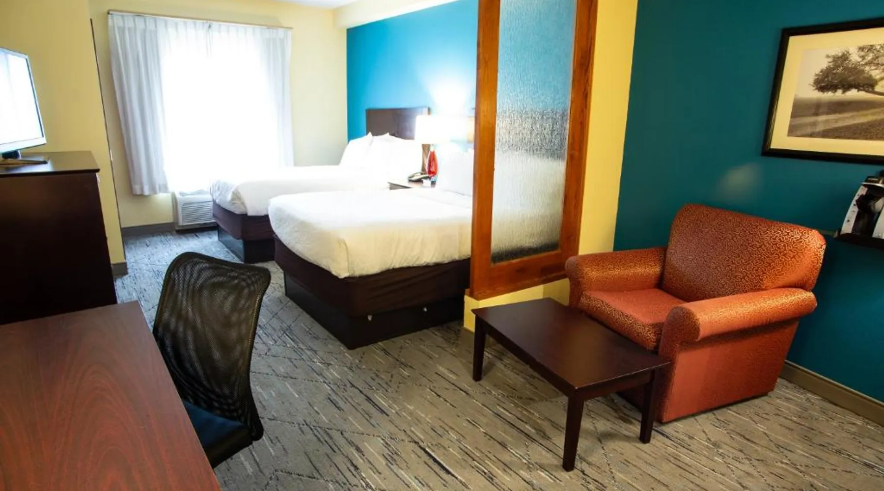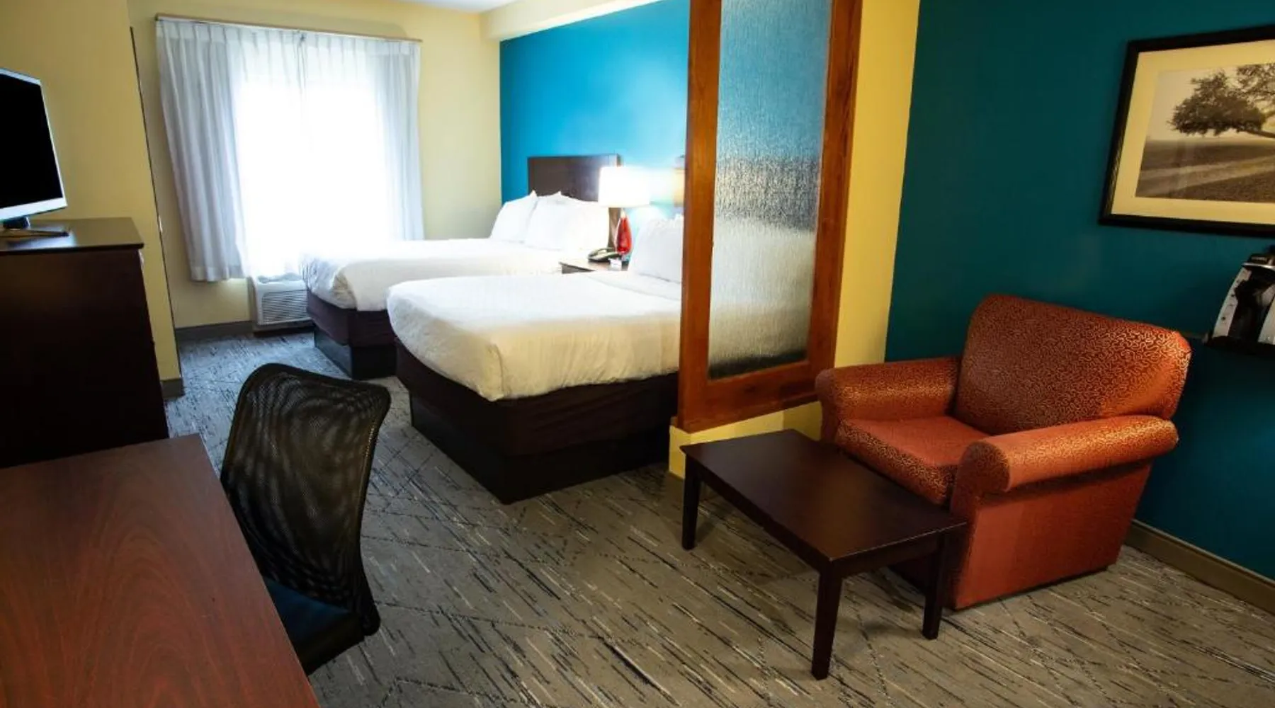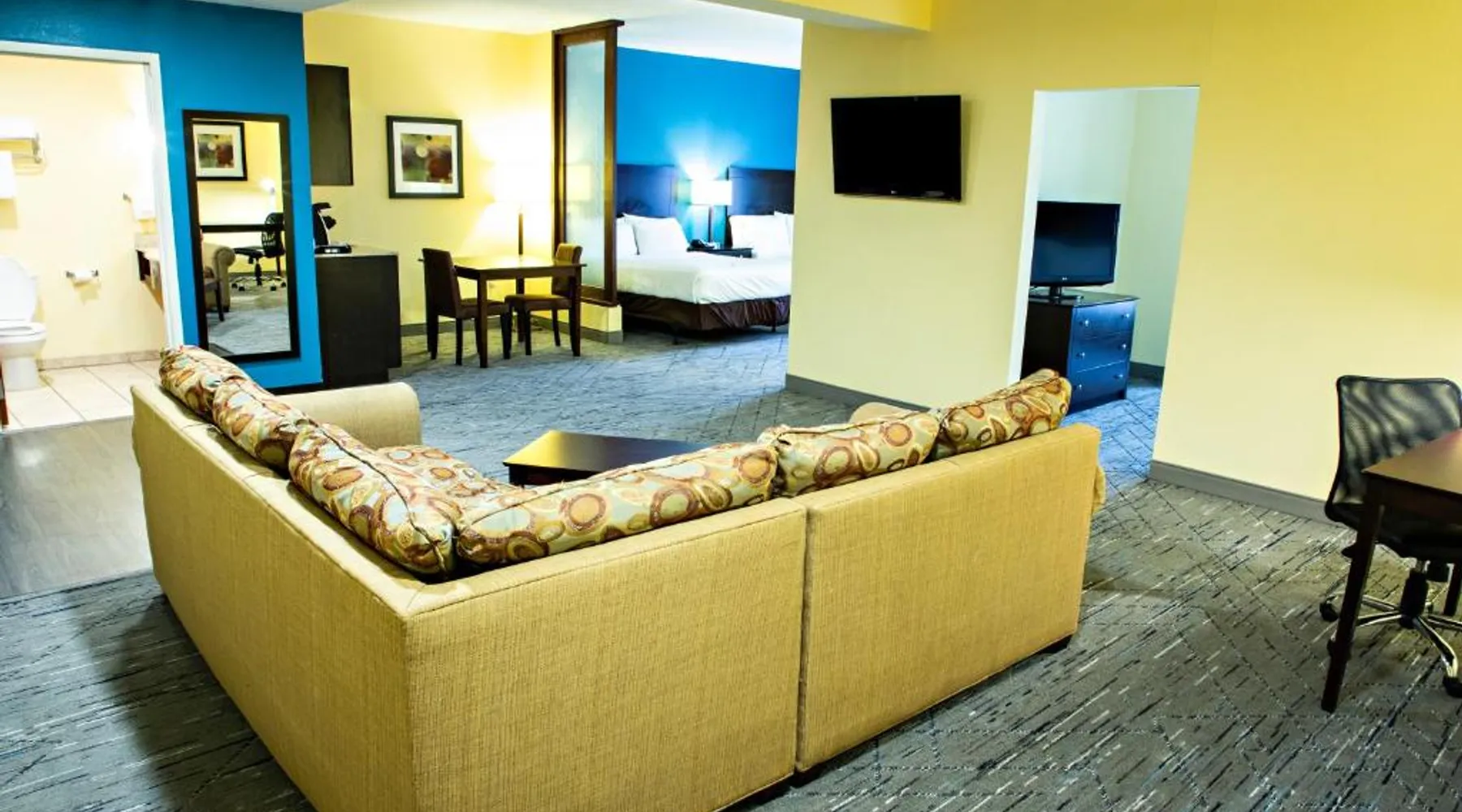 Comfortable Accommodations: Holiday Inn Express & Suites Harrisburg West in Mechanicsburg offers family rooms with air-conditioning, private bathrooms, and free WiFi. Each room includes a work desk, TV, and complimentary toiletries. Leisure Facilities: Guests can enjoy a saltwater swimming pool, indoor pool, fitness center, and a beautifully maintained garden. The property also features a lounge, games room, and outdoor seating area. Dining Options: A variety of breakfast options are available, including continental, American, buffet, vegetarian, and gluten-free. Breakfast includes juice, pancakes, and fruits. Convenient Location: Located 7.5 mi from the Pennsylvania State Capitol and 9.9 mi from the National Civil War Museum, the hotel is also close to Hershey Park Stadium and Zoo America. Free on-site parking is provided. Featuring free toiletries, this suite includes a private bathroom with a shower and a hairdryer. This wheelchair accessible suite has air conditioning, a seating area with a flat-screen TV and a roll-in shower. The unit has 1 bed.