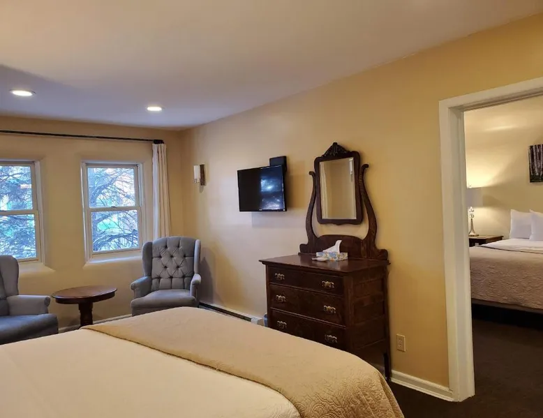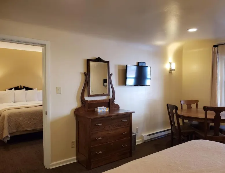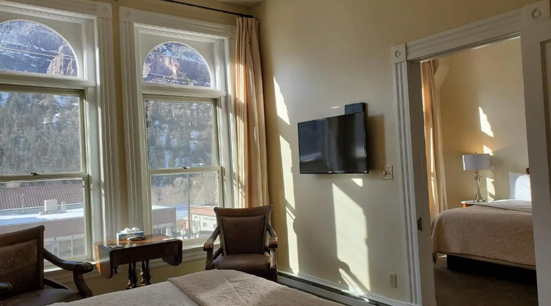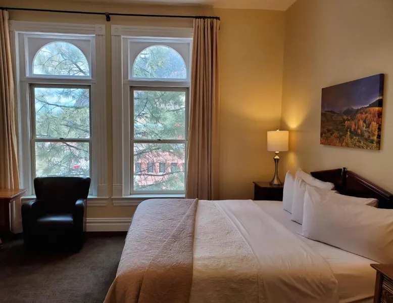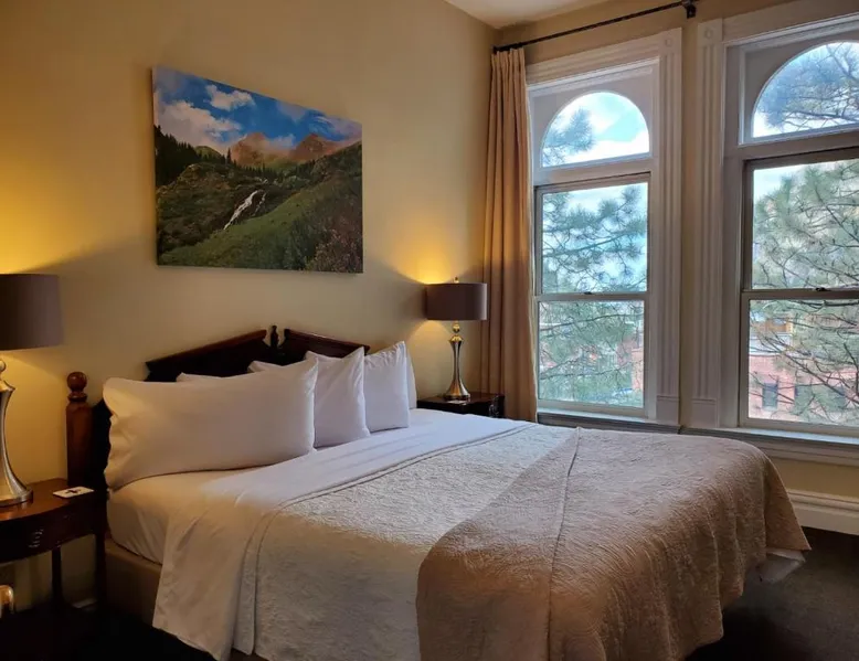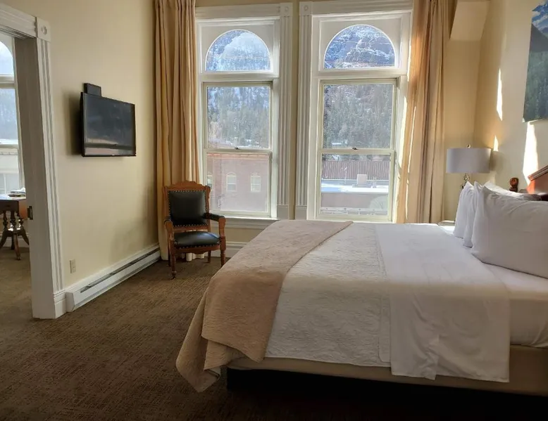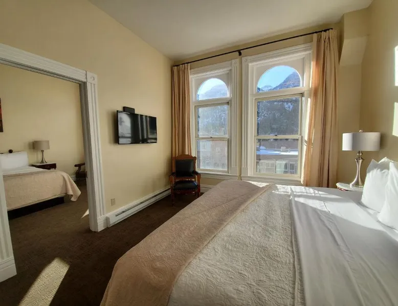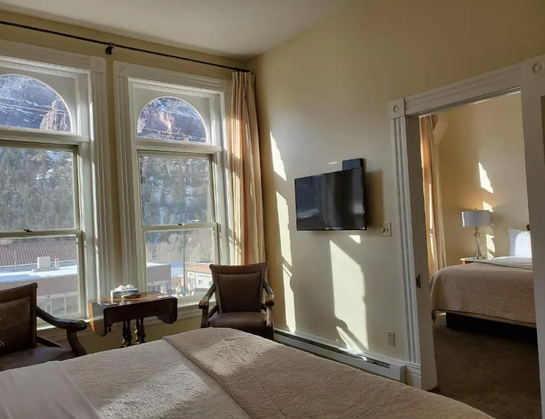 Historic Setting: Hotel Ouray in Ouray offers a unique stay within a historic building. The property features air-conditioning, private bathrooms with walk-in showers, and free WiFi. Comfortable Amenities: Guests enjoy amenities such as a shared kitchen, business area, and free on-site parking. Additional facilities include streaming services, a coffee machine, and a dining area. Convenient Location: Located 37 mi from Montrose Regional Airport, the hotel is near winter sports and hiking activities. Guests appreciate the convenient location, rich history, and attentive staff. The air-conditioned suite has 2 bedrooms and 1 bathroom with a walk-in shower and a hairdryer. The suite features a flat-screen TV with cable channels, a seating area, a wardrobe, a carpeted floor as well as mountain views. The unit has 2 beds.