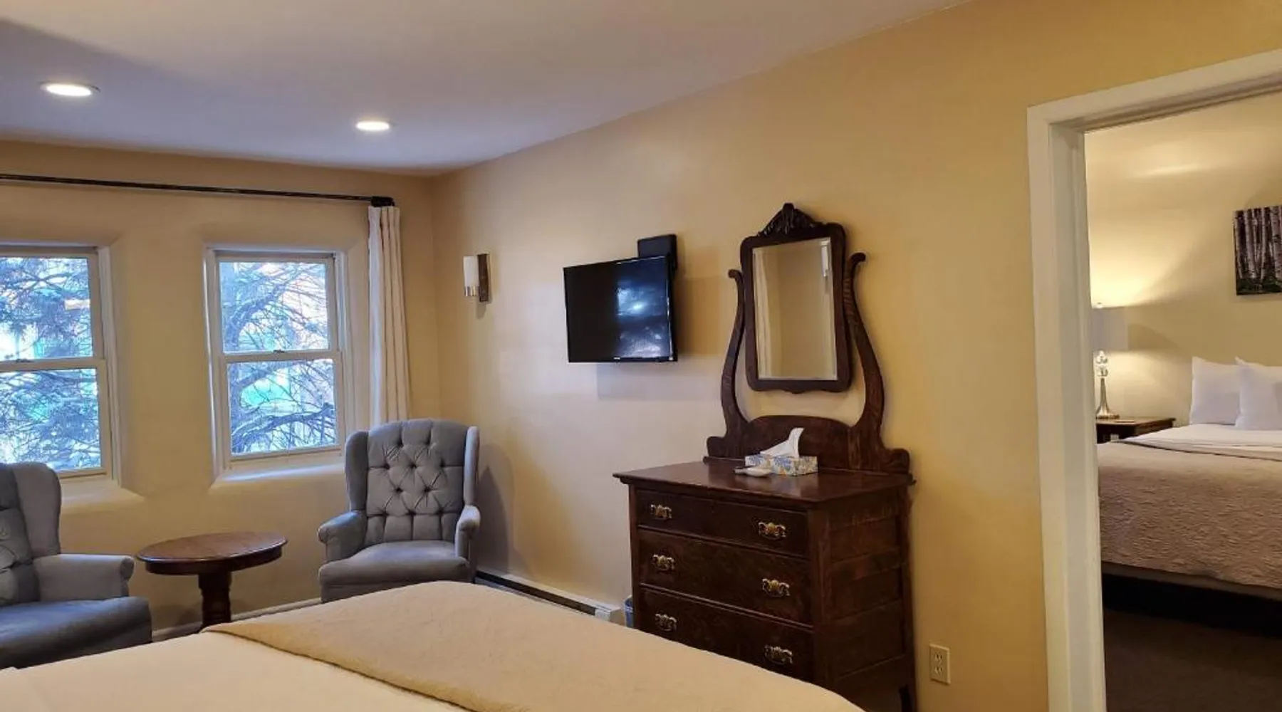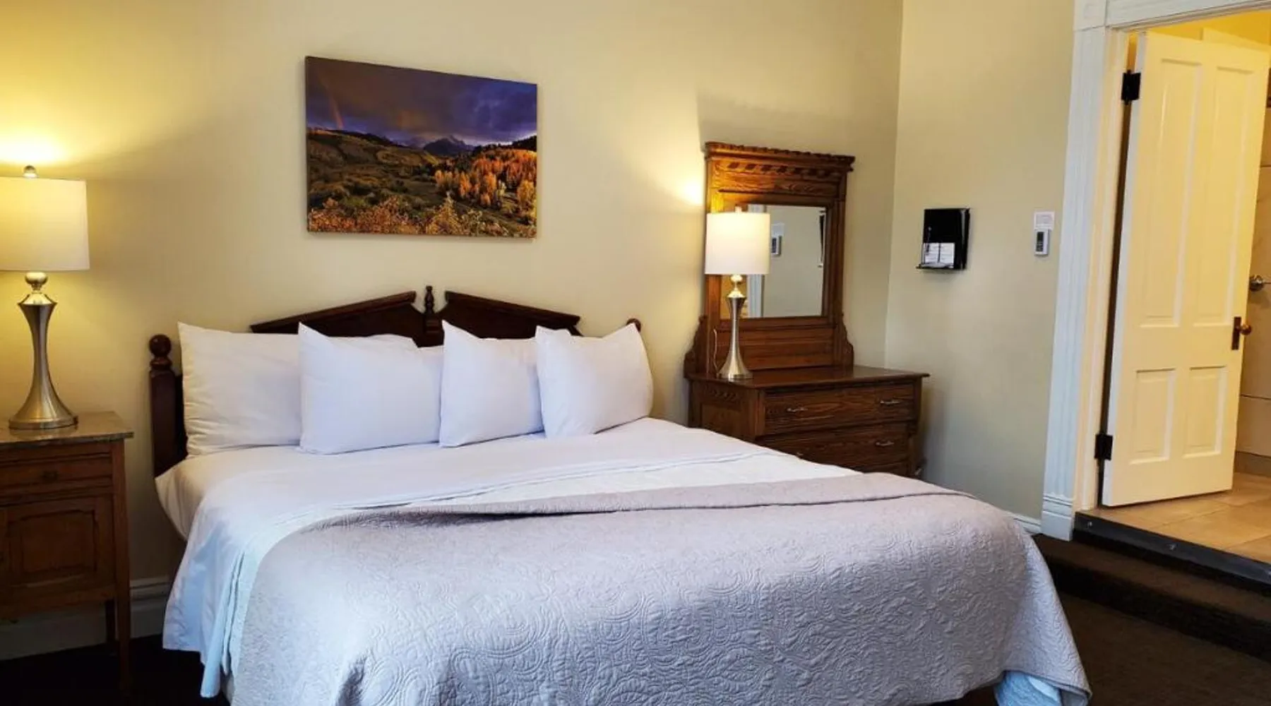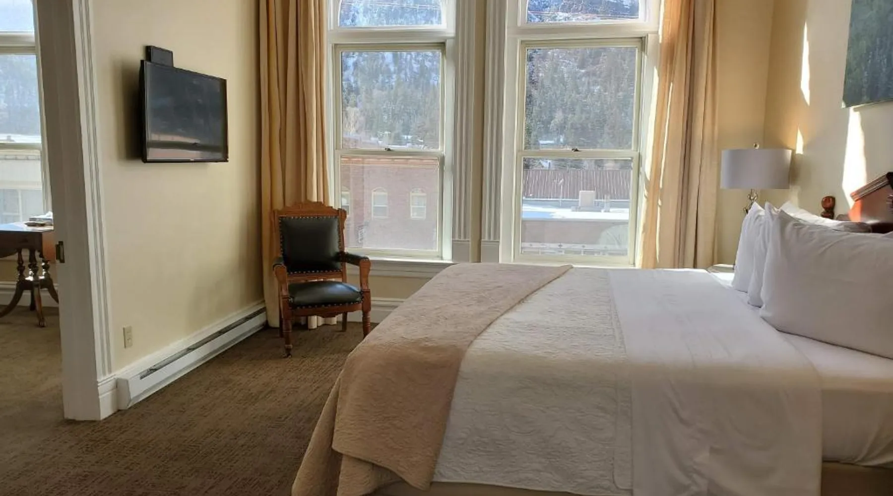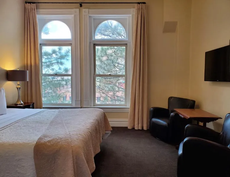 Historic Setting: Hotel Ouray in Ouray offers a unique stay within a historic building. The property features air-conditioning, private bathrooms with walk-in showers, and free WiFi. Comfortable Amenities: Guests enjoy amenities such as a shared kitchen, business area, and free on-site parking. Additional facilities include streaming services, a coffee machine, and a dining area. Convenient Location: Located 37 mi from Montrose Regional Airport, the hotel is near winter sports and hiking activities. Guests appreciate the convenient location, rich history, and attentive staff. The air-conditioned suite has 2 bedrooms and 1 bathroom with a walk-in shower and a hairdryer. The suite features a flat-screen TV with cable channels, a seating area, a wardrobe, a carpeted floor as well as mountain views. The unit has 2 beds.