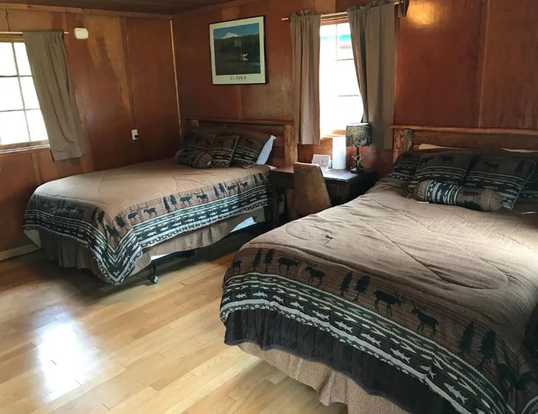 Comfortable Accommodations: Gwin's Lodge & Roadhouse in Cooper Landing offers a lodge with garden, restaurant, bar, and free WiFi. Guests enjoy a minimarket, coffee shop, picnic area, tour desk, and luggage storage. Modern Amenities: Each room features a kitchenette, balcony, patio, private bathroom, and garden or mountain views. Additional amenities include a fireplace, dining area, sofa bed, and free on-site parking. Dining and Leisure: The restaurant serves a variety of meals, and the bar offers a relaxing atmosphere. Free WiFi is available throughout the property. Activities and Location: Guests can enjoy hiking and explore the surrounding area. Kenai Municipal Airport is 53 mi away. Highly rated by guests for its excellent facilities and services. Featuring a private entrance, this chalet also consists of 1 living room, 2 separate bedrooms and 1 bathroom with a shower. Meals can be prepared in the well-fitted kitchen, which is equipped with a stovetop, a refrigerator, kitchenware and an oven. The chalet features a coffee machine, a seating area, a dining area as well as a balcony with garden views. The unit offers 5 beds.