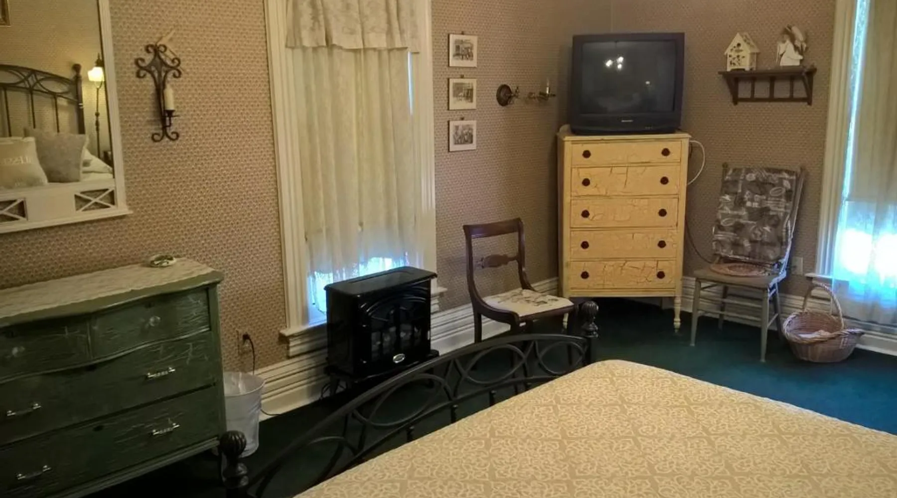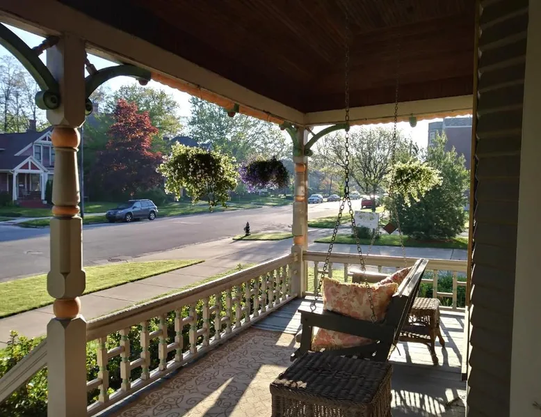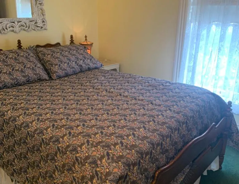 Comfortable Accommodations: Innisfree Bed & Breakfast in South Bend offers family rooms with private bathrooms, air-conditioning, and free WiFi. Guests enjoy garden views, a sun terrace, and free on-site parking. Delicious Breakfast: A variety of breakfast options are available, including continental, American, vegetarian, vegan, and gluten-free. Fresh pastries, fruits, and juices enhance the morning experience. Convenient Location: Located 3.1 mi from South Bend Regional Airport, the property is near attractions such as Studebaker National Museum (7-minute walk) and Noter Dame Stadium (2.5 mi). Free airport shuttle service is provided. Guest Services: Private check-in and check-out, shuttle service, lounge, and barbecue facilities ensure a comfortable stay. Additional amenities include streaming services, tea and coffee maker, and free toiletries. This air-conditioned double room is consisted of of a flat-screen TV with streaming services, a shared bathroom as well as an outdoor dining area. The unit has 1 bed.
