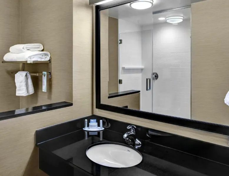 Comfortable Accommodations: Fairfield Inn & Suites by Marriott Lansing at Eastwood in Lansing offers comfortable rooms with air-conditioning. Guests enjoy free WiFi, a saltwater swimming pool, and an indoor pool. Fitness and Leisure: The hotel features a fitness center and a terrace. Free bicycles are available for exploring the area. Additional amenities include a lounge, business area, and outdoor seating. Convenient Location: Located 6.8 mi from Capital Region International Airport, the hotel is near Jack Breslin Arena, Wharton Center, and Michigan State University. Nearby shops and options for food and drinks are highly rated by guests. The studio provides air conditioning. The unit offers 2 beds.