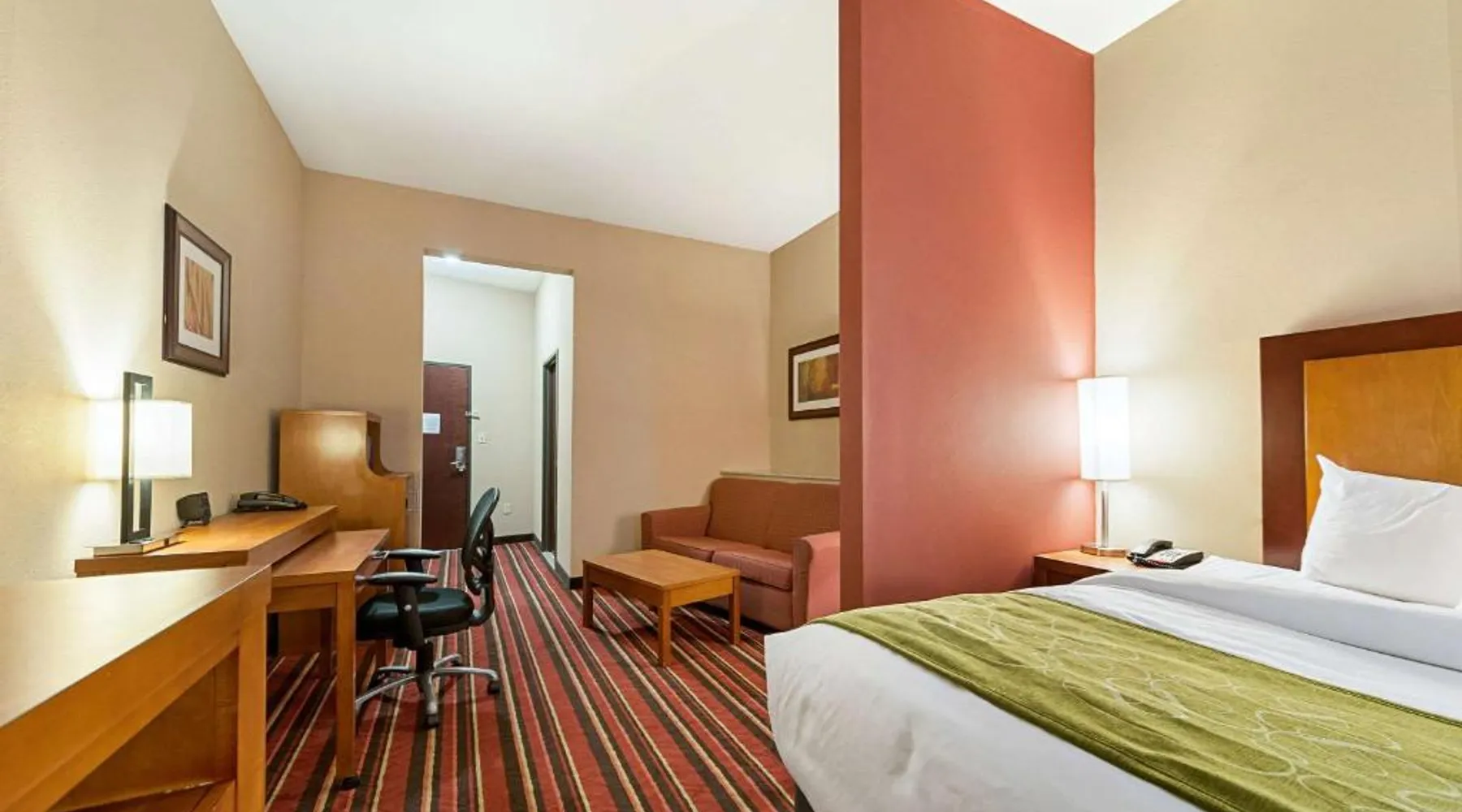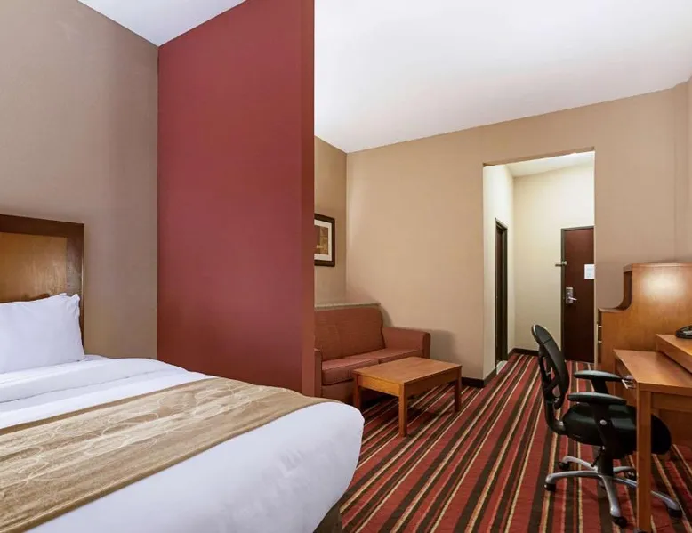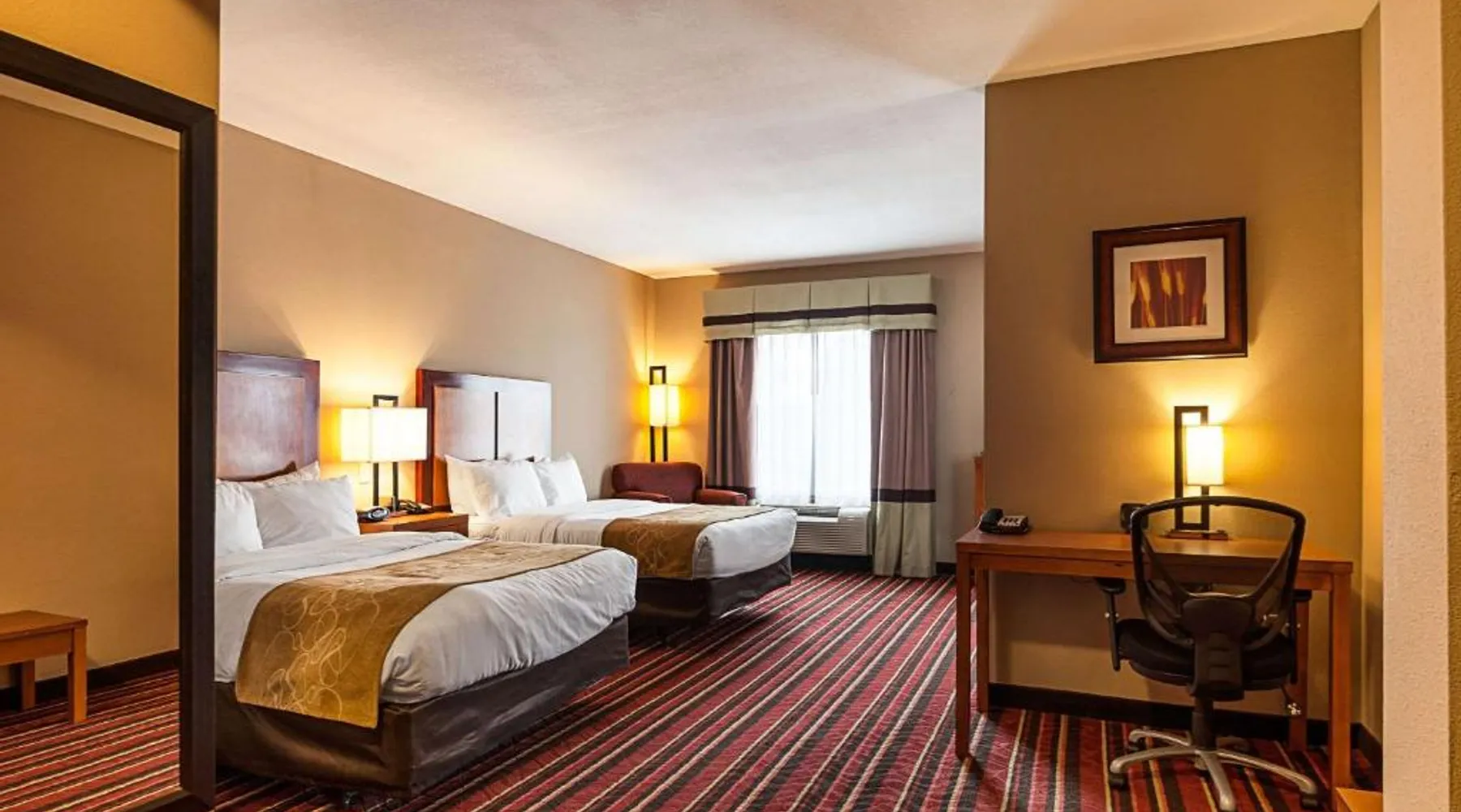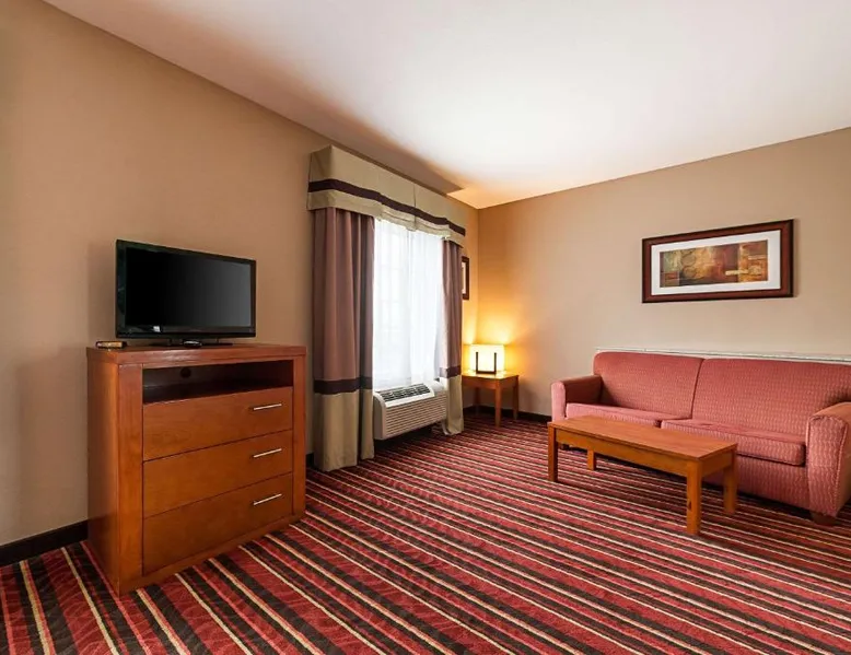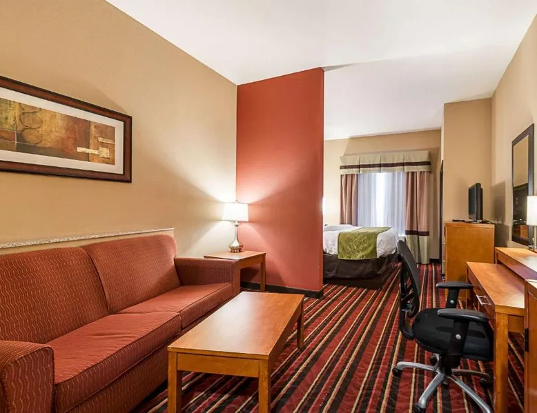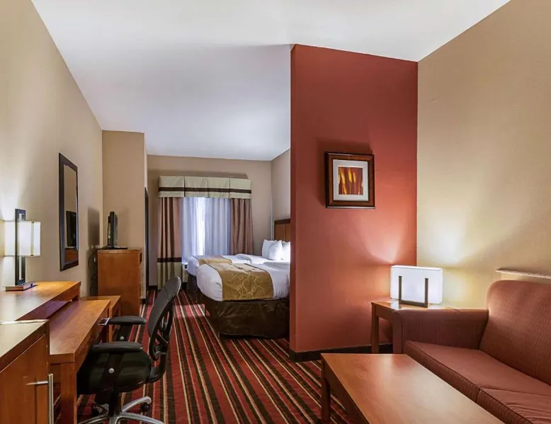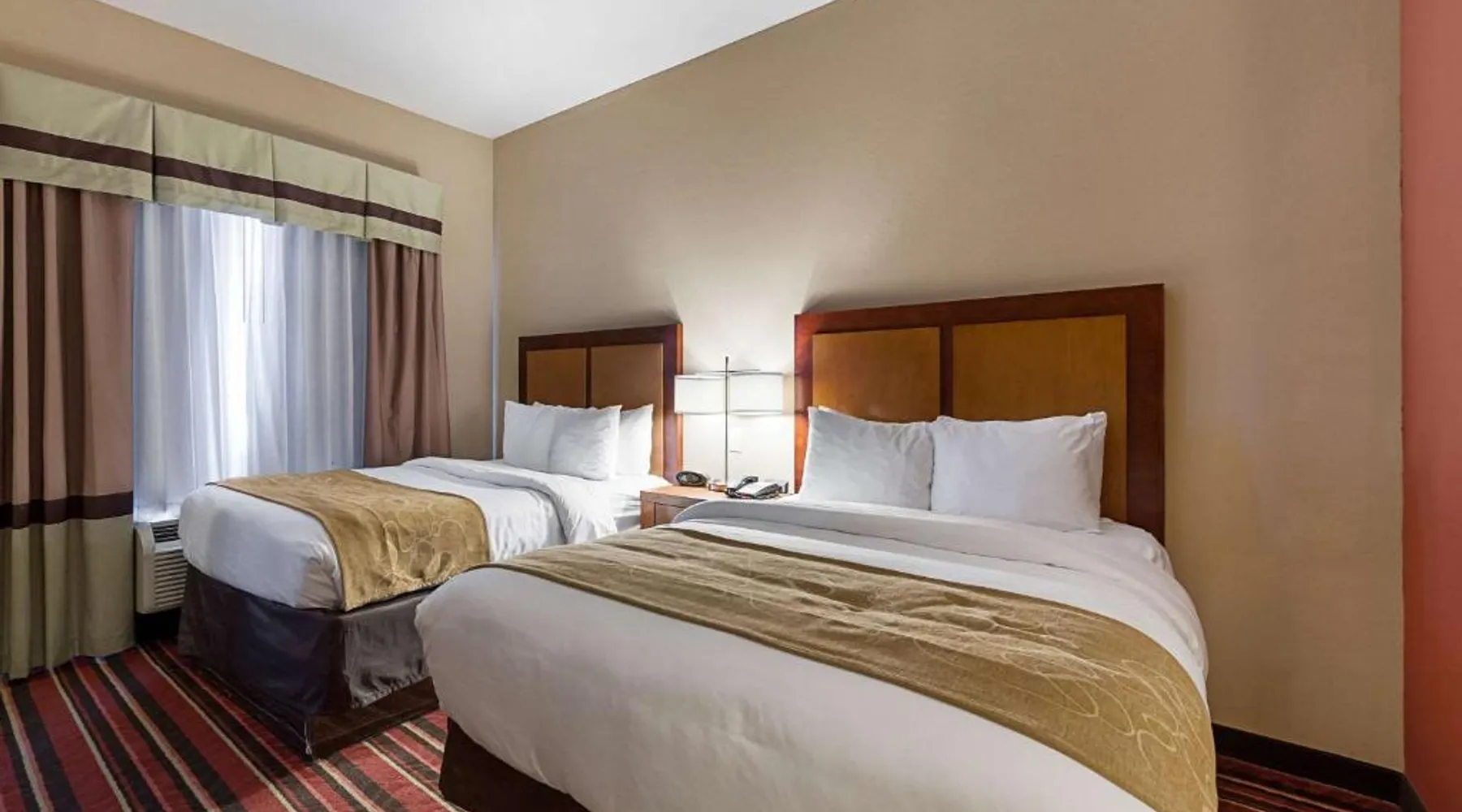 Comfort Suites hotel is centrally located close to local points of interest including the Lake Charles Civic Center, Lake Charles beaches and the Creole Nature Trail All-American Road, a place for bird watching and wildlife viewing. Nearby Isle of Capri Casino Lake Charles and the L'Auberge du Lac casino provide lots of gaming action for visitors and residents alike. Many businesses are located near by including CITGO Petroleum Corporation, ConocoPhillips, PPG and Basell. The surrounding area is home to an abundance of outdoor recreational activities, entertainment venues, shopping centers, restaurants and cocktail lounges. It offers many fine features and amenities, including free wireless high-speed Internet access, free weekday newspaper and free local calls. After a busy day of work or play, you can enjoy a refreshing swim in our outdoor pool and a workout in the exercise room. Free breakfast is also provided. For guests that leaving early, there is a breakfast bag available for the two hours prior to breakfast. Corporate travelers will welcome additional conveniences like onsite meeting facilities, spacious work desks in every room, and easy access to copy and fax services. All suites come equipped with microwaves, refrigerators, coffee makers, flat-screen televisions, pillow-top mattresses, sofa sleepers, hair dryers, irons and ironing boards. Keep your electronic devices charged with the recharge device including AC and USB outlets provided in all guest rooms. A gift shop, convenience store and laundry facilities are all located on the premises. This air-conditioned suite is consisted of of a TV with cable channels and a private bathroom. The unit has 2 beds.