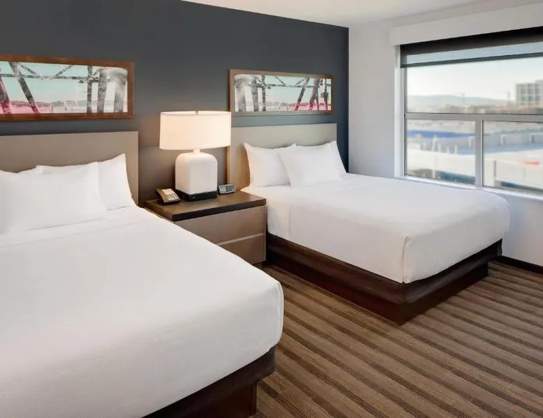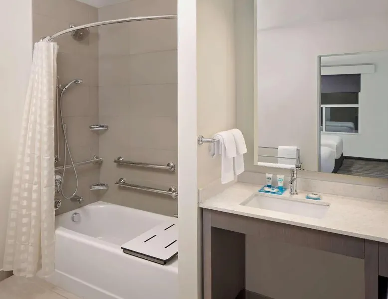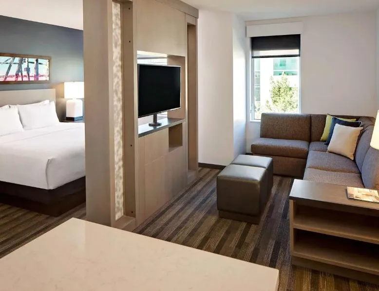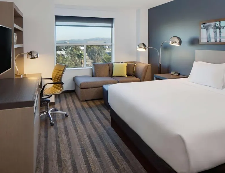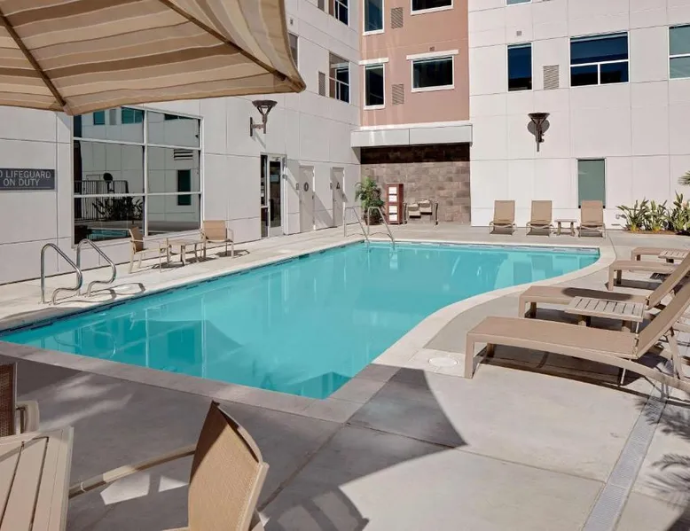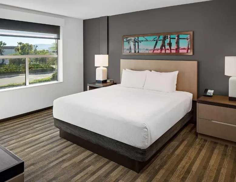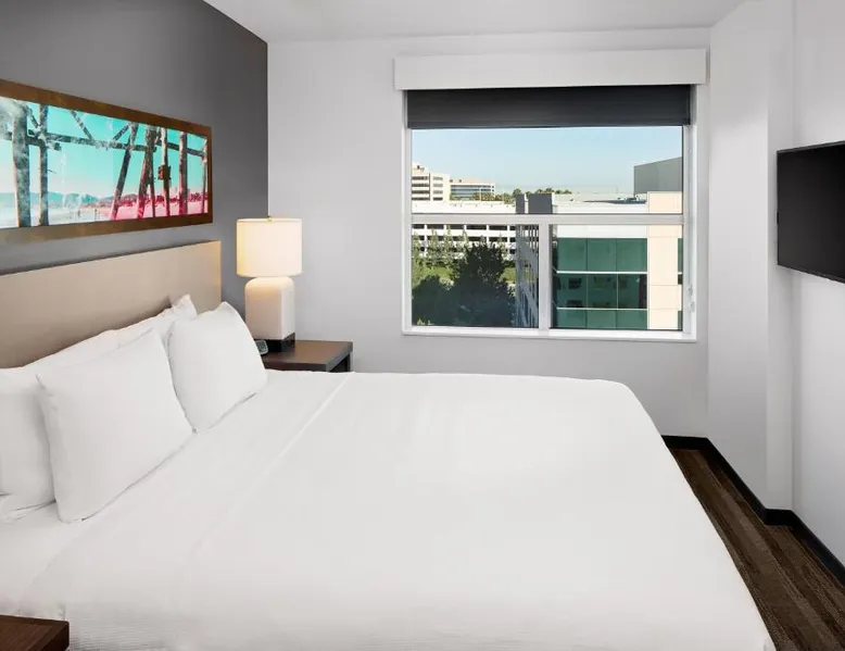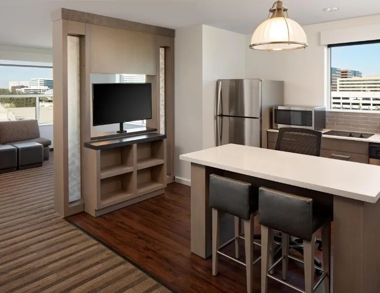 Comfortable Accommodations: Rooms feature air-conditioning, private bathrooms, tea and coffee makers, and free WiFi. Additional amenities include work desks, seating areas, and modern conveniences such as refrigerators and microwaves. Dining and Leisure: The family-friendly restaurant serves American cuisine with dinner and cocktails. Guests can also enjoy a bar, outdoor swimming pool, fitness center, and free airport shuttle service. Convenient Location: Located in Irvine, the hotel is 1.2 mi from John Wayne Airport and near attractions like South Coast Plaza (3.1 mi) and Disneyland (13 mi). Guests appreciate the convenient location and excellent service. This spacious suite consists of 1 living room, 1 separate bedroom and 1 bathroom with a bath and free toiletries. In the well-equipped kitchenette, guests will find a stovetop, a refrigerator, a dishwasher and kitchenware. The suite features carpeted floors, a seating area with a flat-screen TV with cable channels, air conditioning, a tea and coffee maker, as well as a wardrobe. The unit offers 4 beds.