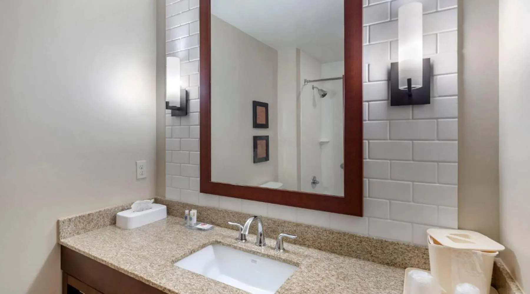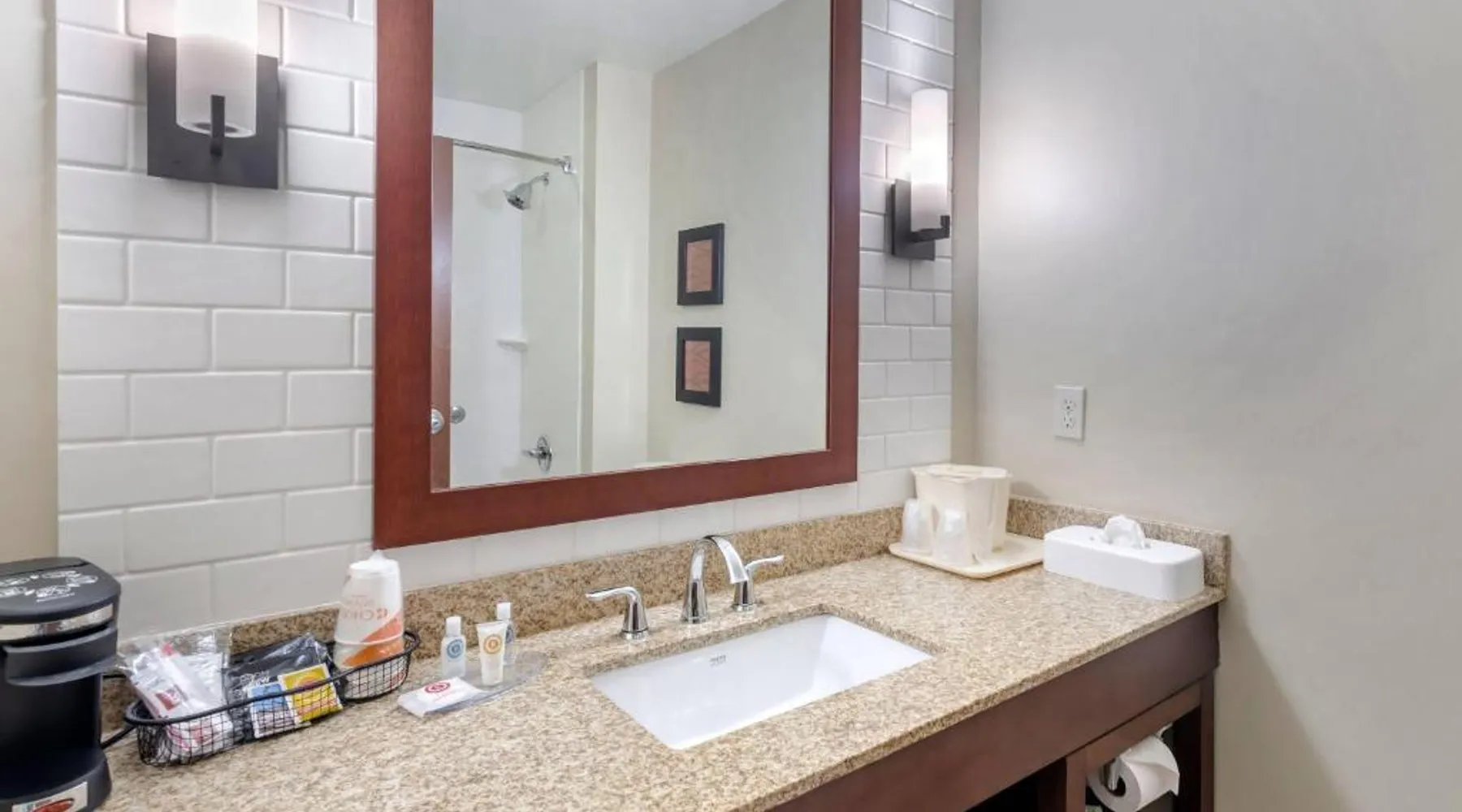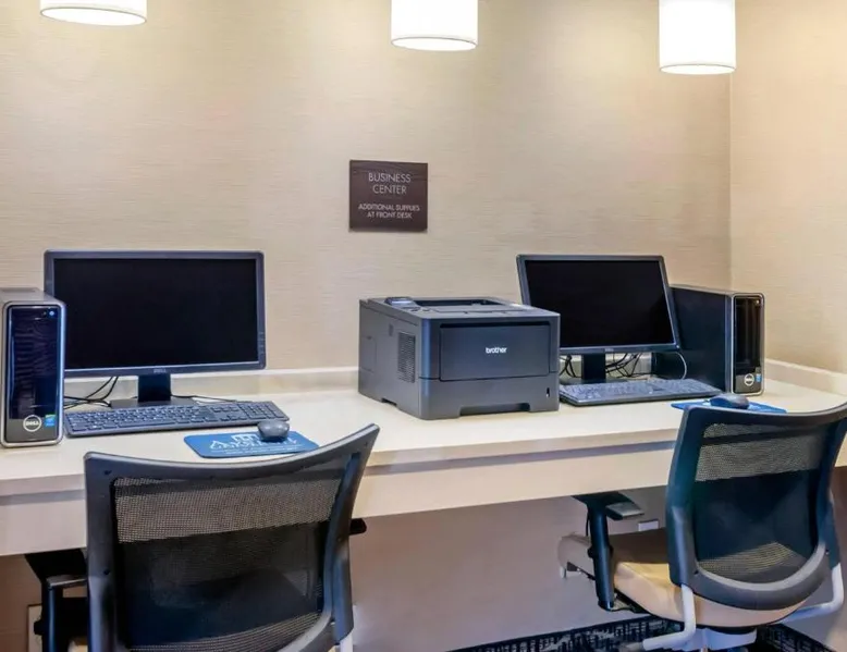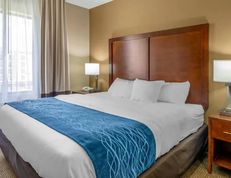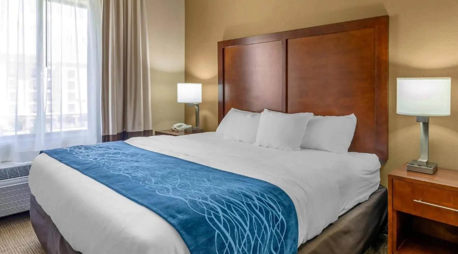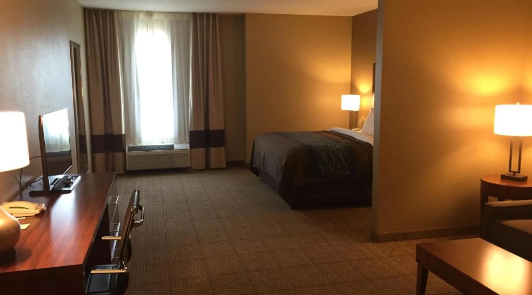 Comfortable Accommodations: Comfort Inn & Suites Lynchburg Airport - University Area in Lynchburg offers adults-only rooms with free WiFi, air-conditioning, and private bathrooms. Each room includes a work desk, refrigerator, and TV. Exceptional Facilities: Guests can enjoy a fitness center, seasonal outdoor swimming pool, and outdoor seating area. Additional amenities include a lounge, minimarket, and business area. Delicious Breakfast: A continental buffet breakfast with gluten-free options is served daily, featuring warm dishes, fresh pastries, fruits, and juice. Convenient Location: Located a few steps from Lynchburg Regional Airport, the hotel is close to Liberty University (2.5 mi), Lynchburg Stadium (6.2 mi), and other attractions. Free on-site private parking is available. This family room has a tea and coffee maker, a seating area and a TV with cable channels. The unit has 2 beds.