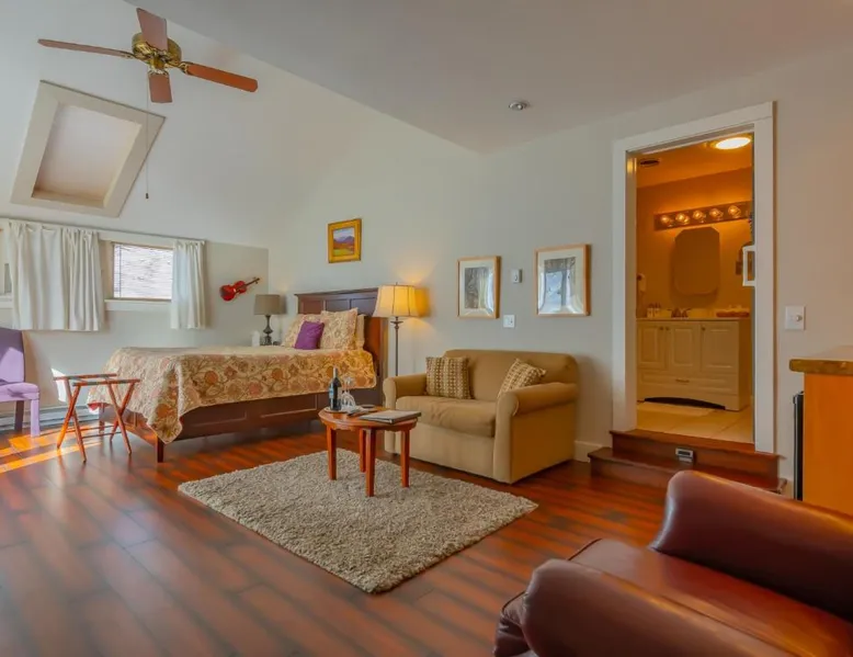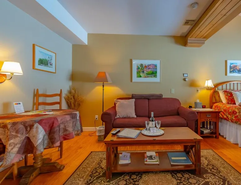 Elegant Accommodations: Shaker Mill Inn in West Stockbridge offers 5-star bed and breakfast rooms with air-conditioning, private bathrooms, and modern amenities. Each room includes a tea and coffee maker, free WiFi, and a dining area. Exceptional Facilities: Guests can enjoy water sports facilities, massage services, and free WiFi. Additional amenities include a hot tub, balcony, and spa bath. Free on-site parking is available. Delicious Breakfast: A continental breakfast is served in-room, including vegetarian and vegan options. Breakfast is highly praised by guests for its quality and variety. Prime Location: Located 43 mi from Albany International Airport, the inn is near Tanglewood Musical Center (3.7 mi), Tanglewood (4.3 mi), Norman Rockwell Museum (4.3 mi), and Cranwell Spa & Golf Club (12 mi). Activities such as fishing, skiing, canoeing, hiking, and cycling are available. Featuring a private entrance, this air-conditioned suite consists of a kitchenette, 1 bedroom and 1 bathroom with a walk-in shower and a hairdryer. Meals can be prepared in the kitchenette, which comes with a refrigerator, kitchenware, an oven and a microwave. This suite features a tea and coffee maker, a seating area, a flat-screen TV with cable channels and outdoor furniture. The unit offers 3 beds.