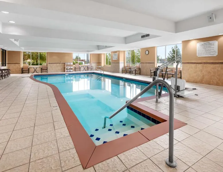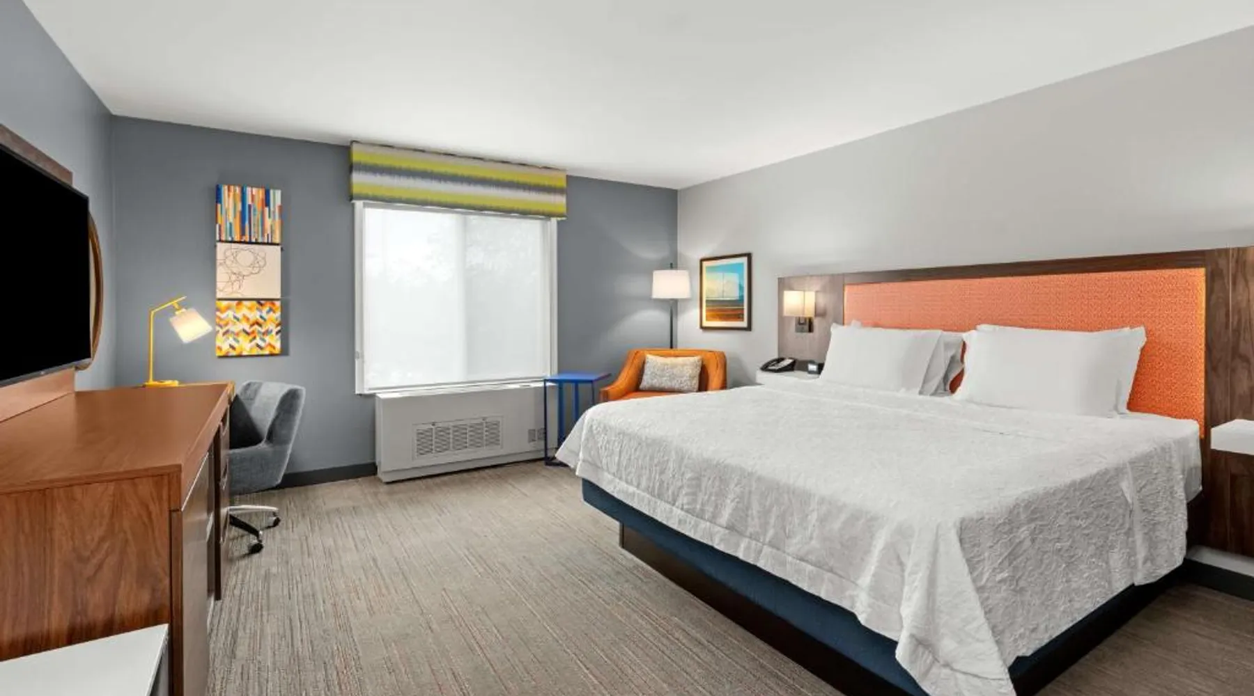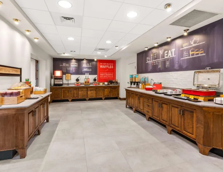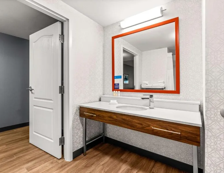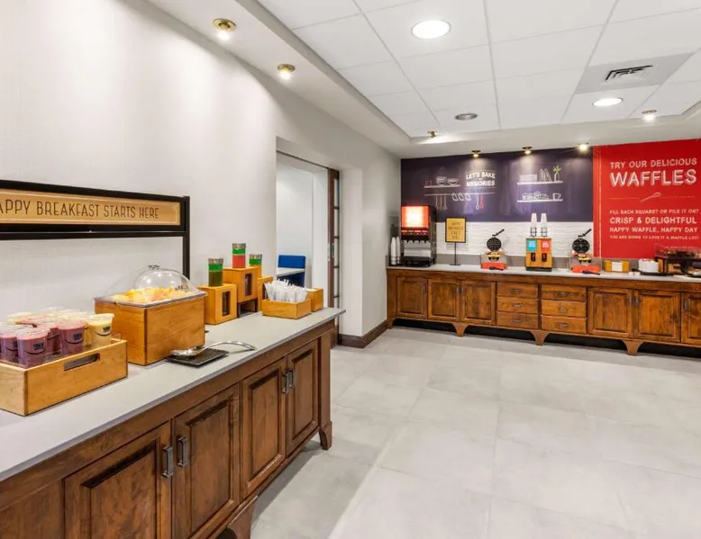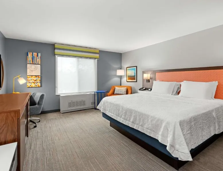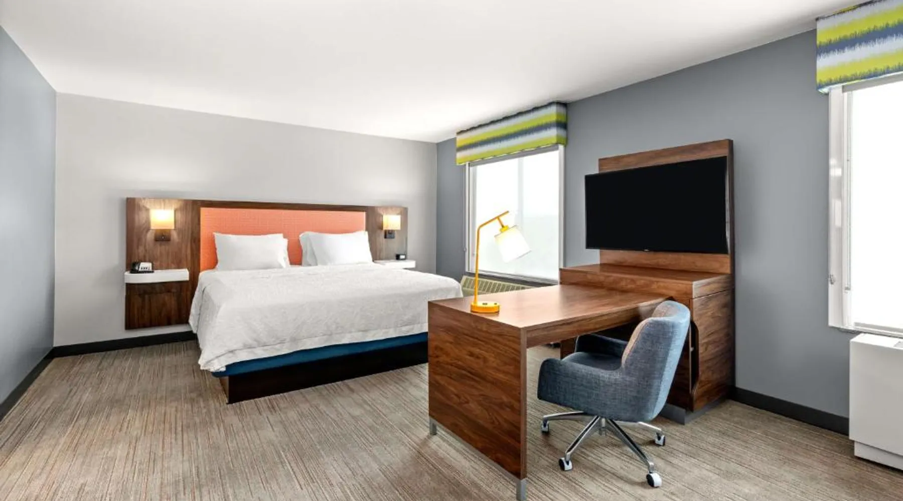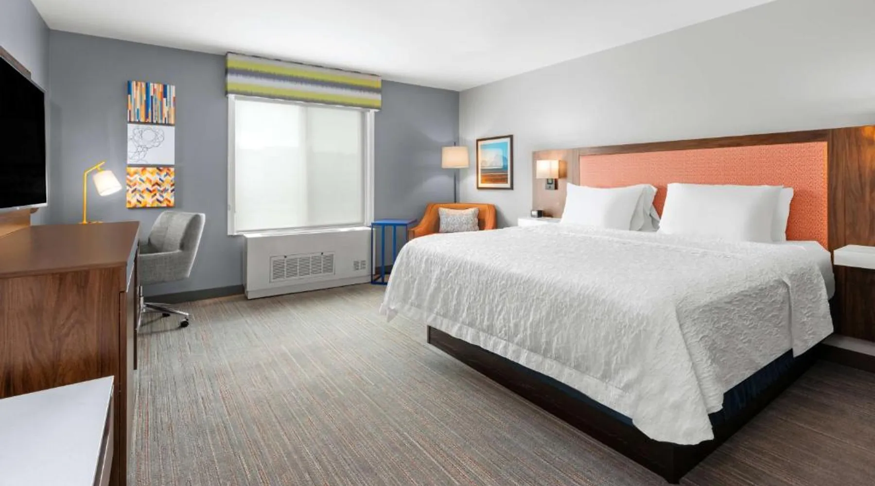 Comfortable Accommodations: Hampton Inn & Suites Fairbanks in Fairbanks offers comfortable rooms with amenities such as a fitness center, indoor swimming pool, and free airport shuttle service. Convenient Facilities: Guests enjoy private check-in and check-out, a fitness room, hot tub, 24-hour front desk, minimarket, daily housekeeping, business area, and luggage storage. Dining Options: A continental, American, and buffet breakfast is served with warm dishes, juice, fresh pastries, cheese, fruits, and a tea and coffee maker. Nearby Attractions: Located 6.2 mi from Fairbanks International Airport, the hotel is close to the Art Center (1.1 mi) and Fairbanks Exploration Historic (1.2 mi). This quadruple room provides a tea and coffee maker and a flat-screen TV. The unit offers 2 beds.