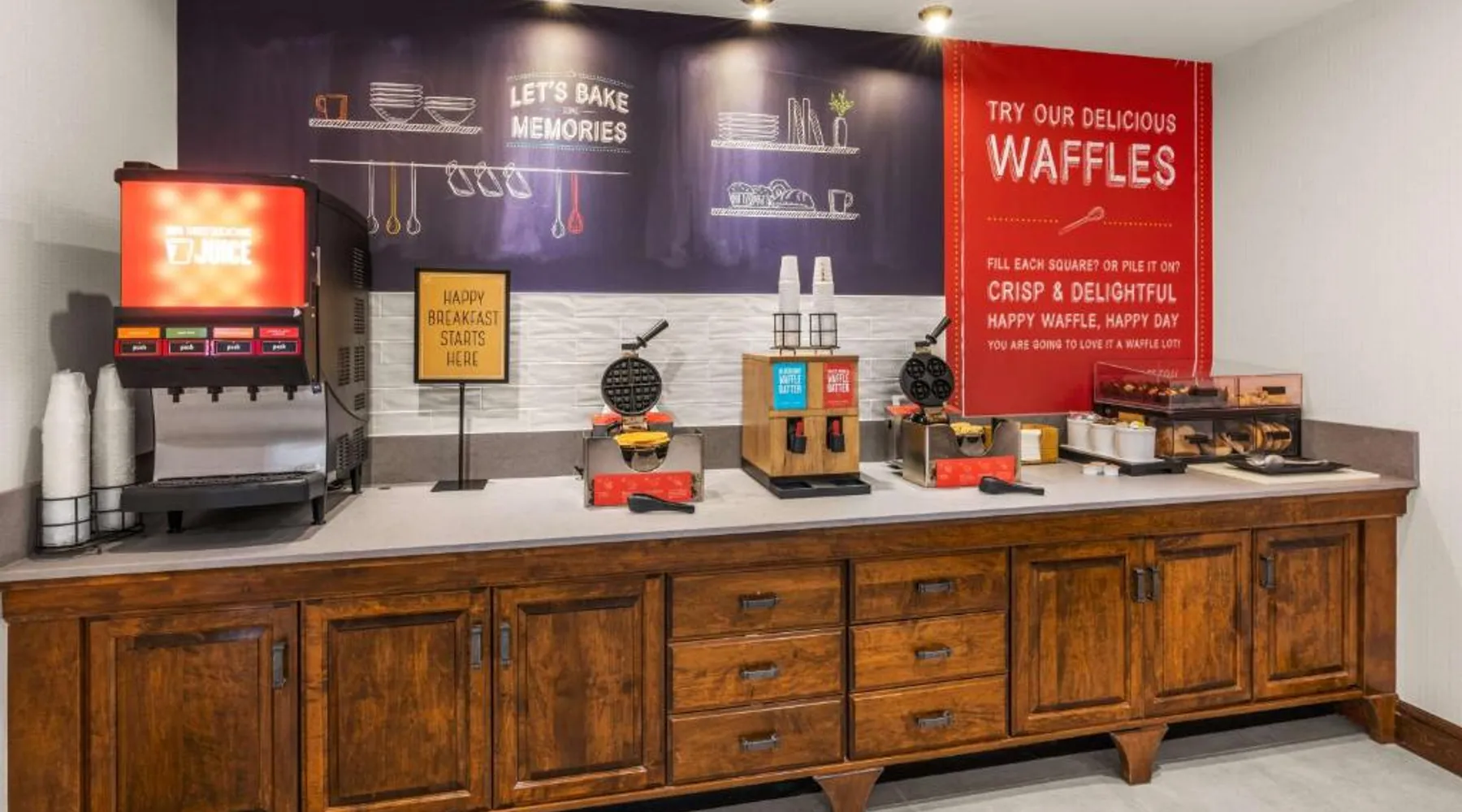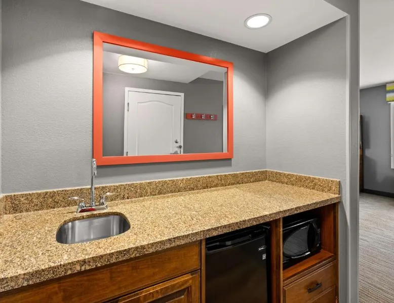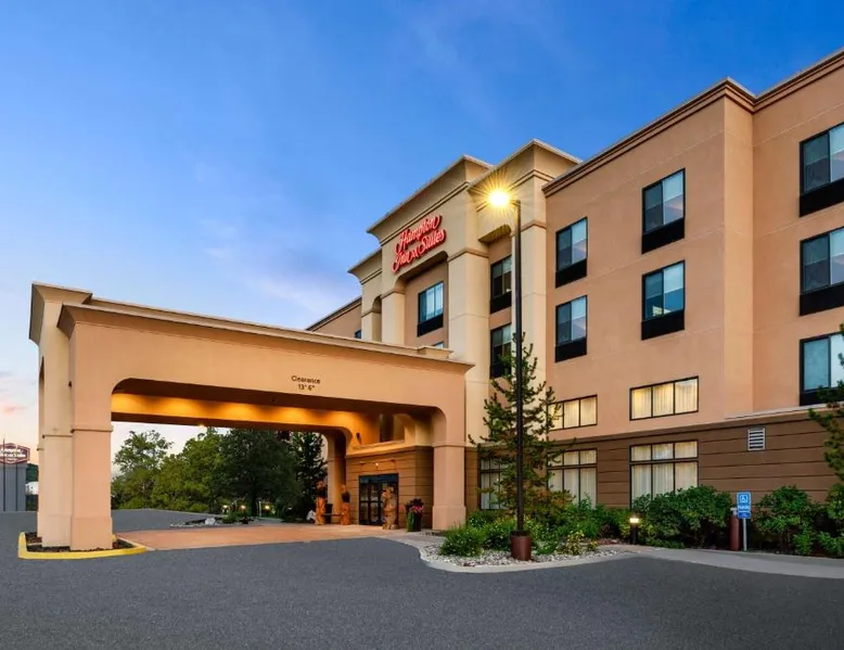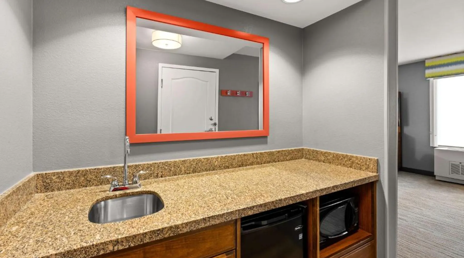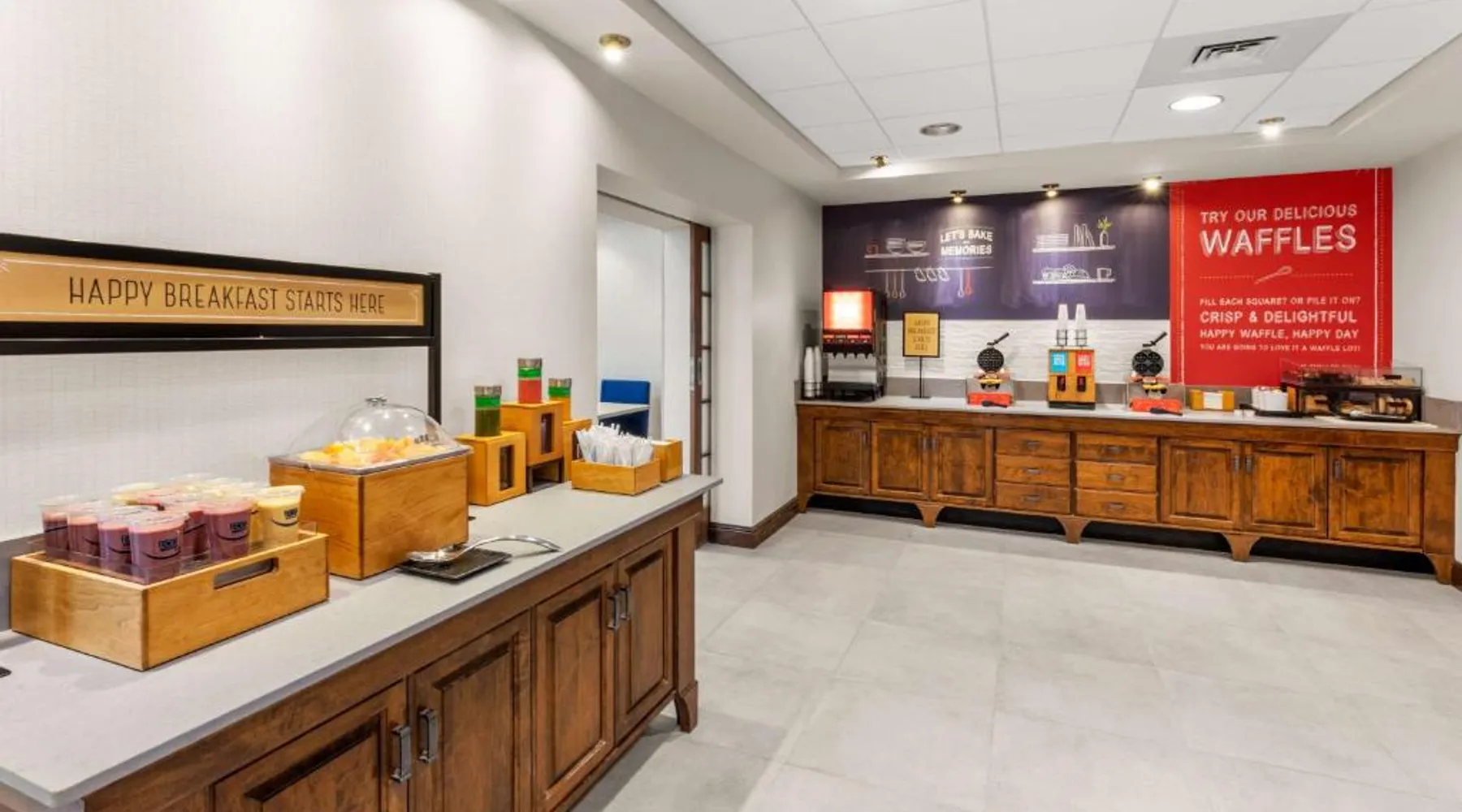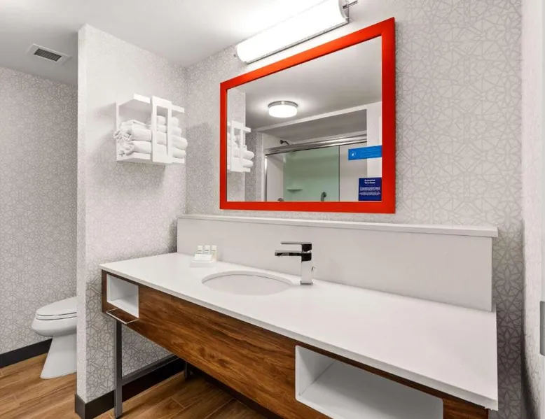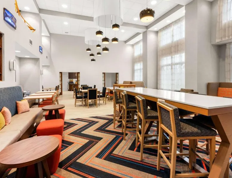 Comfortable Accommodations: Hampton Inn & Suites Fairbanks in Fairbanks offers comfortable rooms with amenities such as a fitness center, indoor swimming pool, and free airport shuttle service. Convenient Facilities: Guests enjoy private check-in and check-out, a fitness room, hot tub, 24-hour front desk, minimarket, daily housekeeping, business area, and luggage storage. Dining Options: A continental, American, and buffet breakfast is served with warm dishes, juice, fresh pastries, cheese, fruits, and a tea and coffee maker. Nearby Attractions: Located 6.2 mi from Fairbanks International Airport, the hotel is close to the Art Center (1.1 mi) and Fairbanks Exploration Historic (1.2 mi). This quadruple room provides a tea and coffee maker and a flat-screen TV. The unit offers 2 beds.