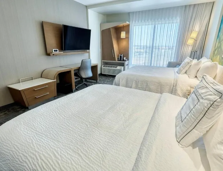 Comfortable Accommodations: Rooms feature air-conditioning, private bathrooms with walk-in showers, free toiletries, and work desks. Guests appreciate the room cleanliness and comfort. Dining and Leisure: The family-friendly restaurant serves American cuisine for dinner. A terrace, bar, indoor swimming pool, and free WiFi enhance the stay. Convenient Location: Located in North Brunswick, the hotel is 22 mi from Trenton-Mercer Airport. Nearby attractions include Princeton University (12 mi) and Six Flags Great Adventure (27 mi). The spacious double room features air conditioning, heating, as well as a private bathroom boasting a walk-in shower and a hairdryer. The unit has 2 beds.