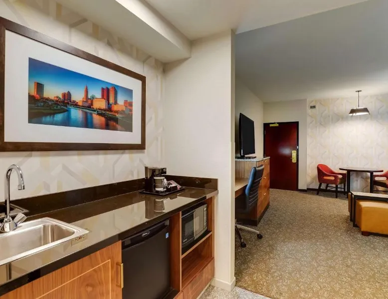 Featuring an indoor pool and located a short walk from the Greater Columbus Convention Center, this hotel offers free WiFi. Port Columbus International Airport is 12 minutes’ drive. A microwave, refrigerator, and flat-screen TV are included in the rooms at Drury Inn & Suites Columbus Convention Center. Select rooms include a sofa bed. The Columbus Convention Center Drury Inn & Suites serves free soda and popcorn in the lobby. It also features an on-site business center. Dining options in the nearby Arena District are within 0.6 mi of the hotel. The Ohio State University is 10 minutes’ drive from the hotel. Goodale Park is 10 minutes’ walk. This room features a microwave, refrigerator, and flat-screen satellite TV.