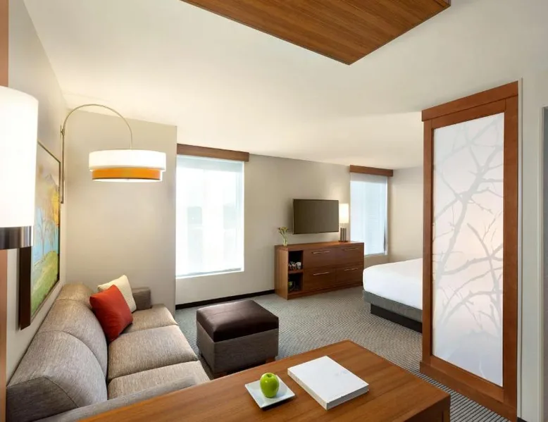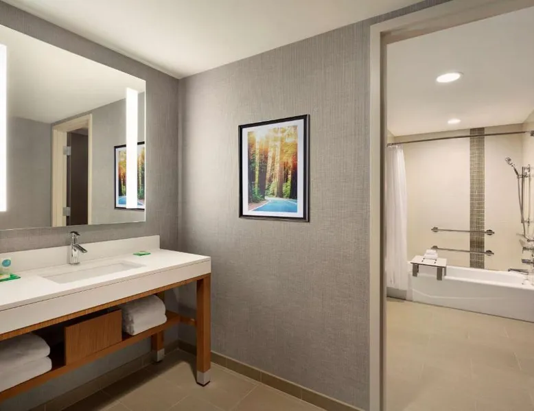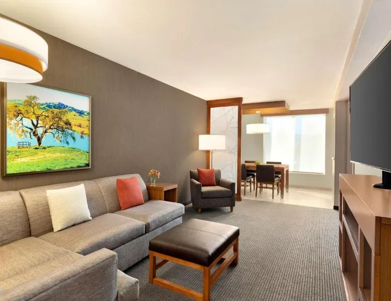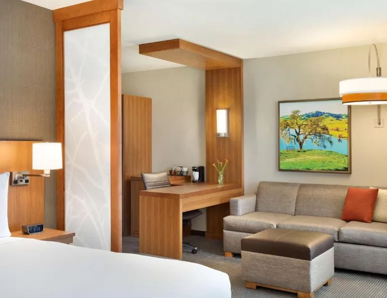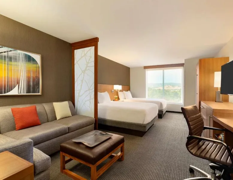 Comfortable Accommodations: Hyatt Place Vacaville in Vacaville offers family rooms with air-conditioning, private bathrooms, and modern amenities. Each room includes a work desk, sofa bed, and free WiFi. Dining and Leisure: The modern, family-friendly restaurant serves lunch, dinner, and cocktails. Guests can relax on the terrace or enjoy the year-round outdoor swimming pool. Additional facilities include a fitness center, bar, and lounge. Convenient Location: Located 35 mi from Sacramento International Airport, the hotel is a 12-minute walk from The Wooz. Nearby attractions include Vacaville Museum (3.7 mi) and Rancho Solano Municipal Golf Course (14 mi). Free on-site parking is available. Guest Satisfaction: Highly rated for its breakfast, room cleanliness, and attentive staff, Hyatt Place Vacaville ensures a comfortable and enjoyable stay. This air-conditioned quadruple room is consisted of of a flat-screen TV with cable channels and a private bathroom. The unit has 2 beds.