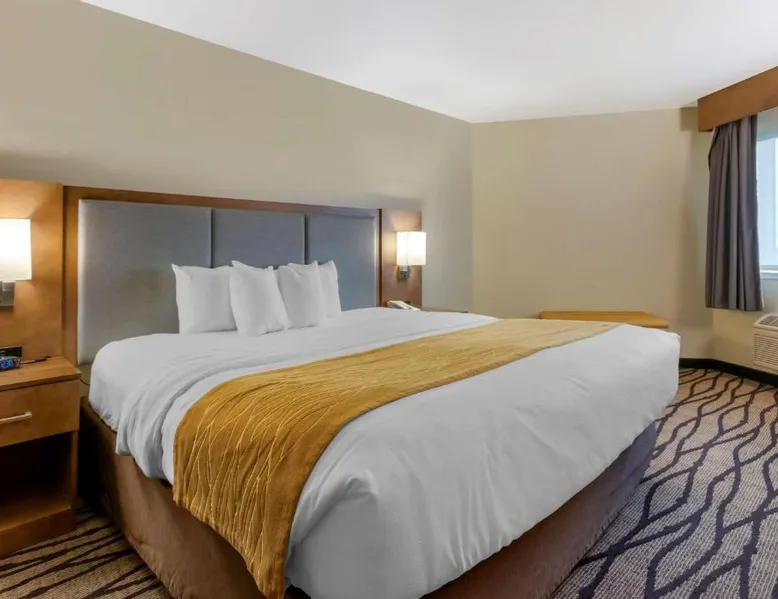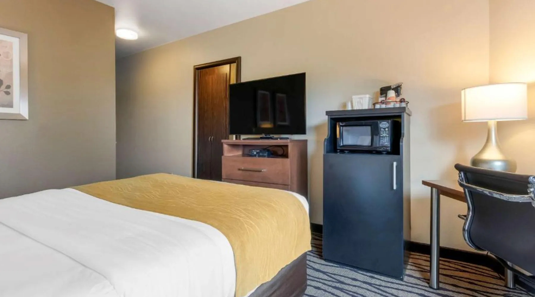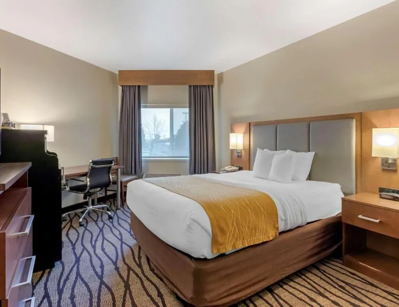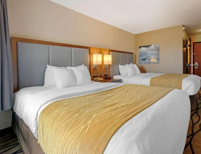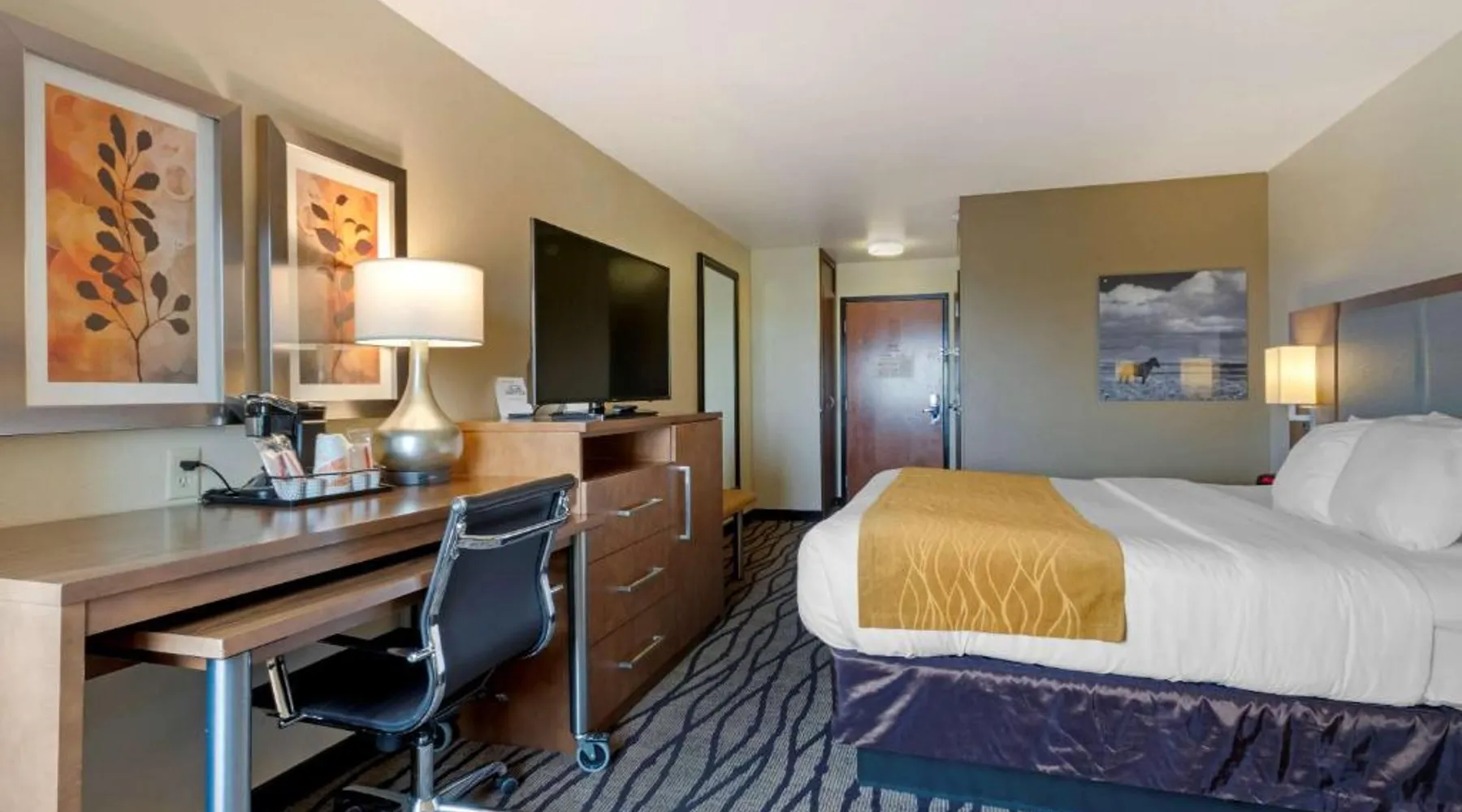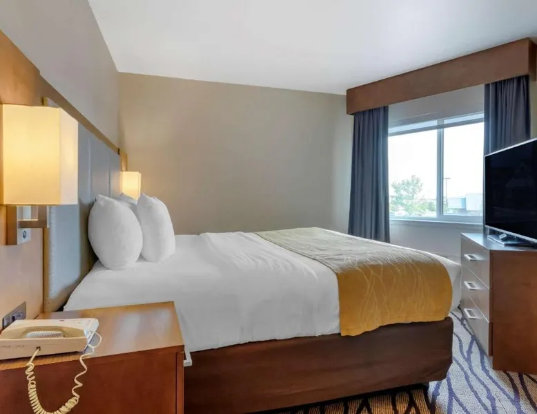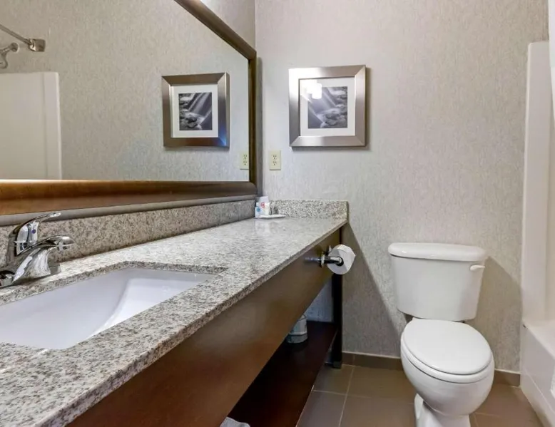 Comfortable Accommodations: Comfort Inn & Suites Market - Airport in Great Falls offers comfortable rooms with private bathrooms, air-conditioning, and free WiFi. Each room includes a TV, work desk, and free toiletries. Convenient Facilities: Guests enjoy free on-site private parking, a continental buffet breakfast, and a coffee machine. Additional amenities include a washing machine, hairdryer, refrigerator, microwave, and wardrobe. Prime Location: Located 3.7 mi from Great Falls International Airport, the hotel is praised for its room cleanliness, convenient location, and comfortable rooms. This suite features a private bathroom and a sofa. This suite offers a flat-screen TV.