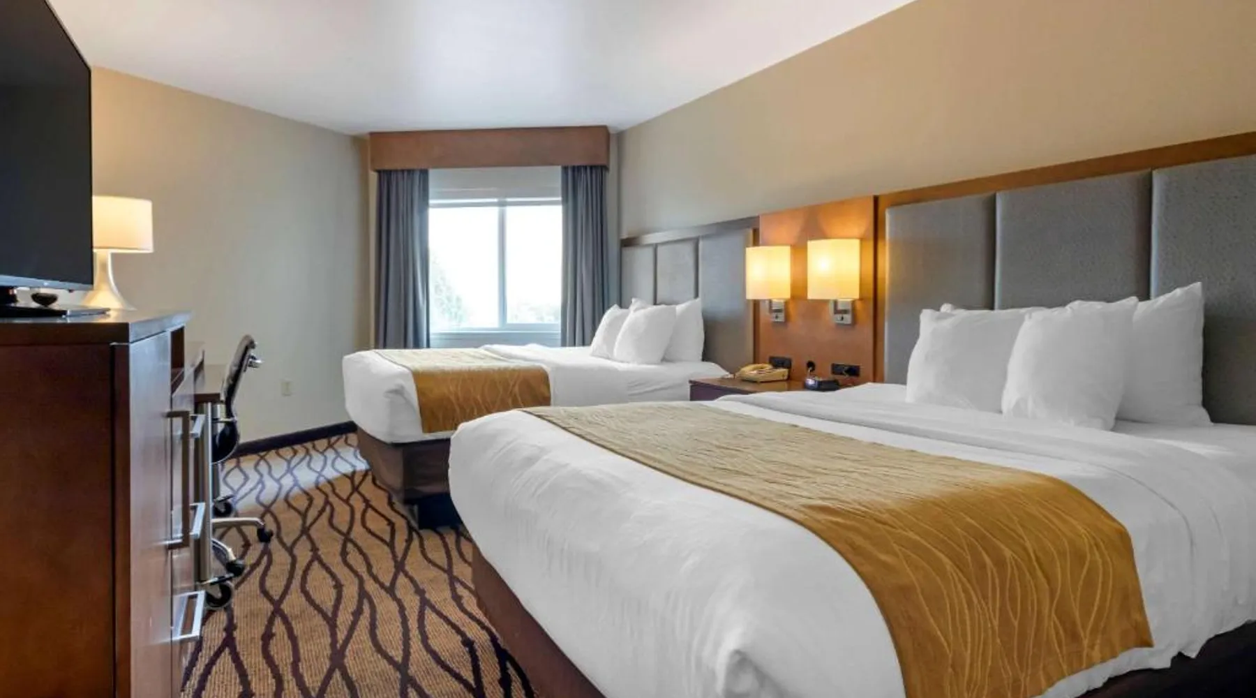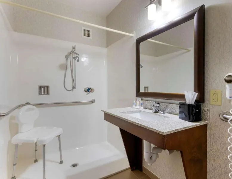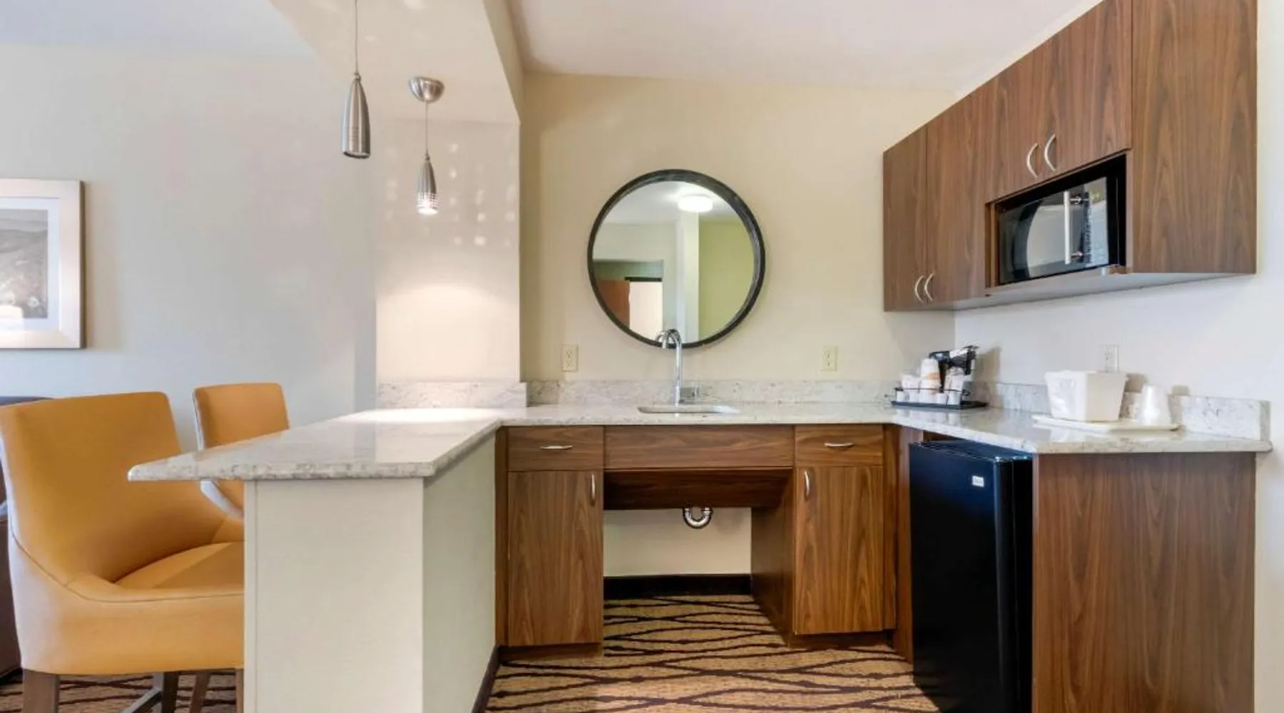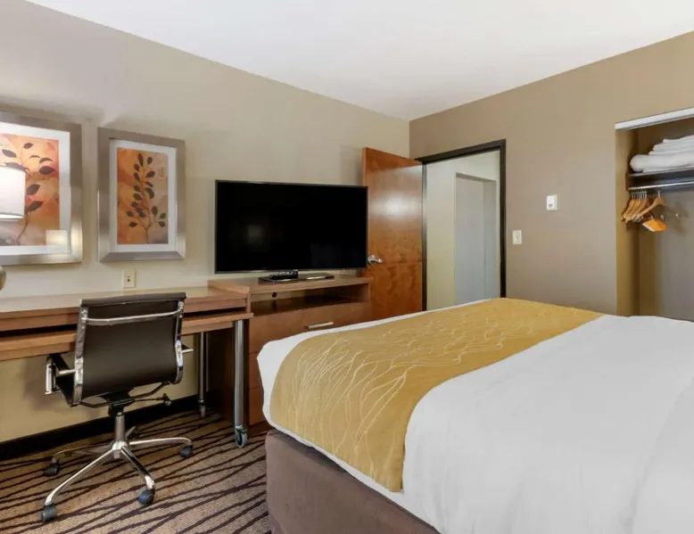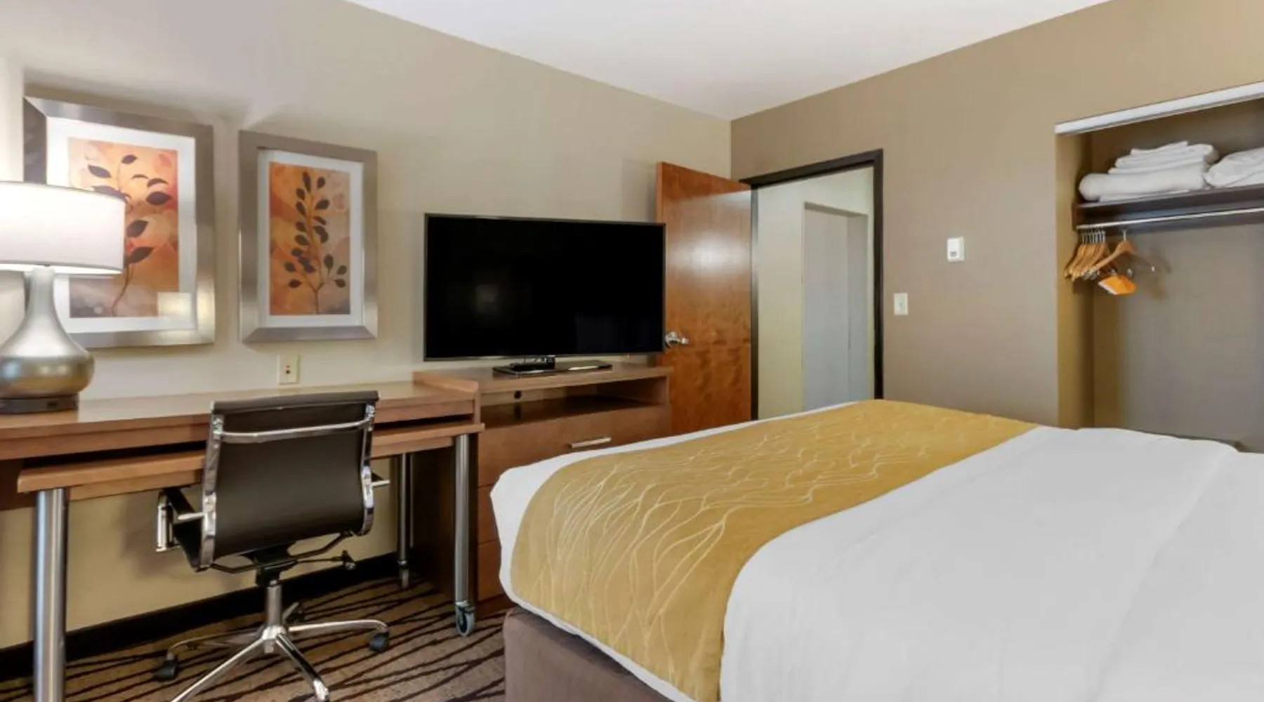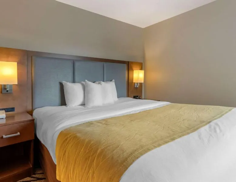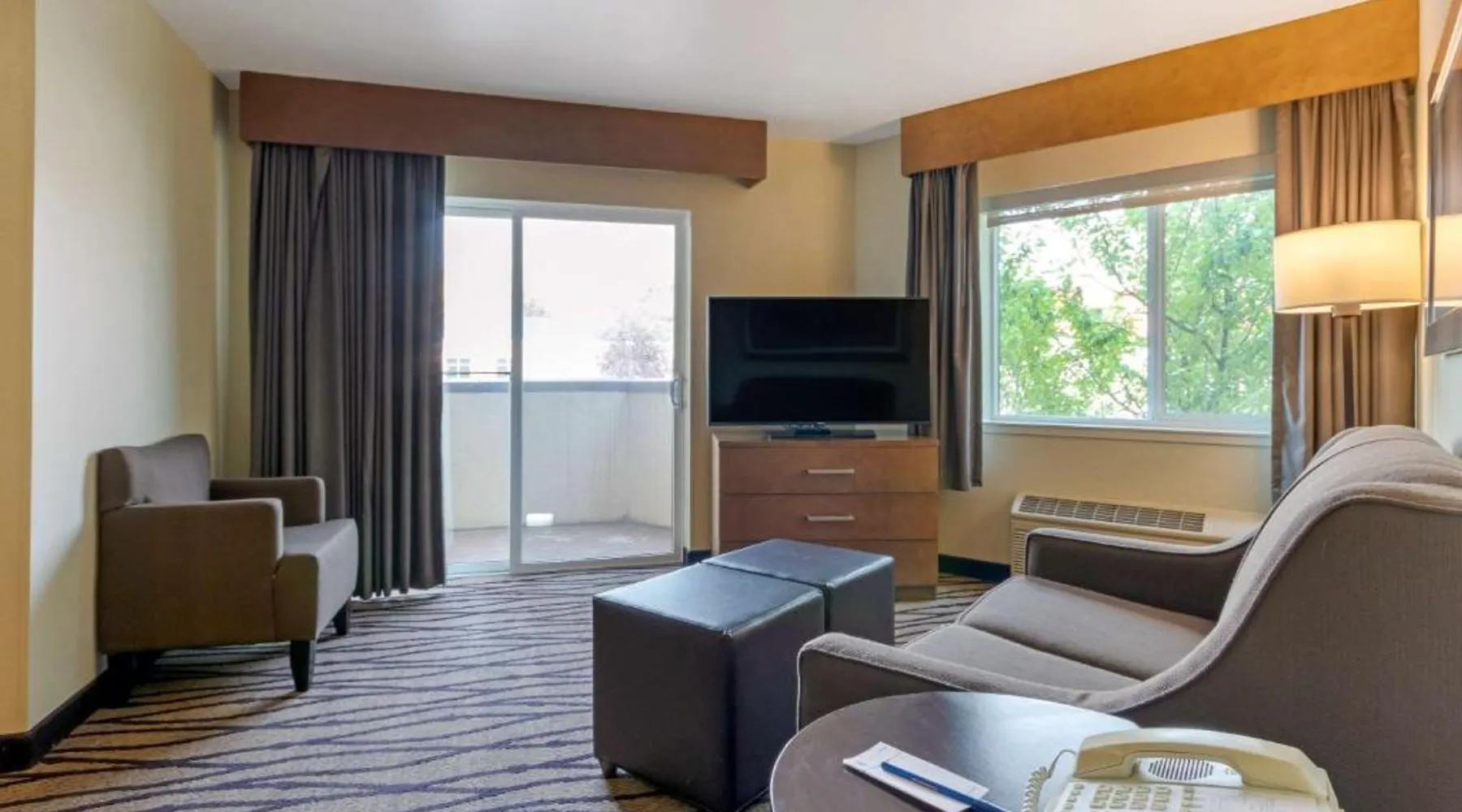 Comfortable Accommodations: Comfort Inn & Suites Market - Airport in Great Falls offers comfortable rooms with private bathrooms, air-conditioning, and free WiFi. Each room includes a TV, work desk, and free toiletries. Convenient Facilities: Guests enjoy free on-site private parking, a continental buffet breakfast, and a coffee machine. Additional amenities include a washing machine, hairdryer, refrigerator, microwave, and wardrobe. Prime Location: Located 3.7 mi from Great Falls International Airport, the hotel is praised for its room cleanliness, convenient location, and comfortable rooms. This suite features a private bathroom and a sofa. This suite offers a flat-screen TV.